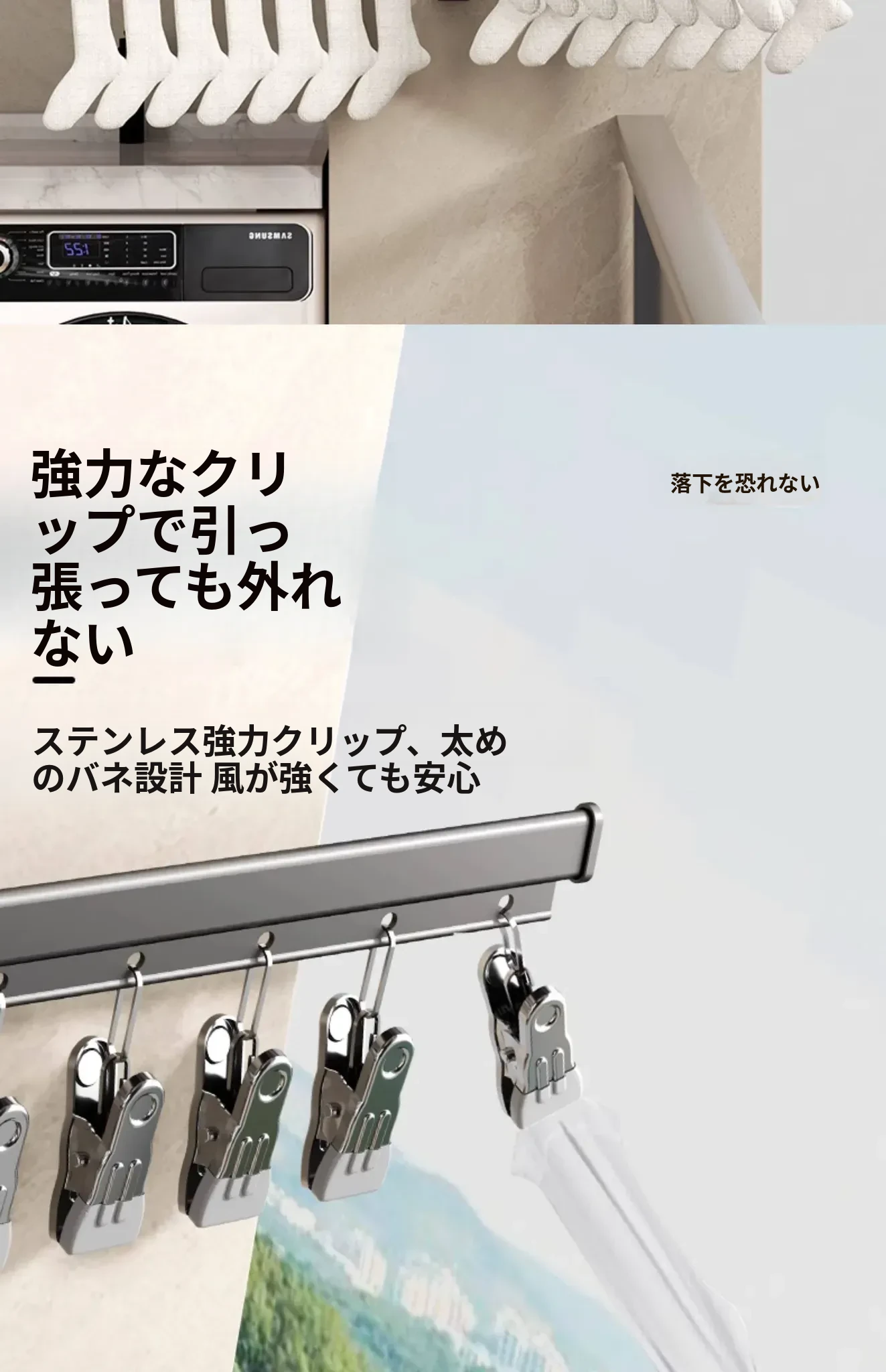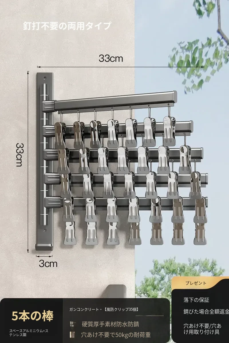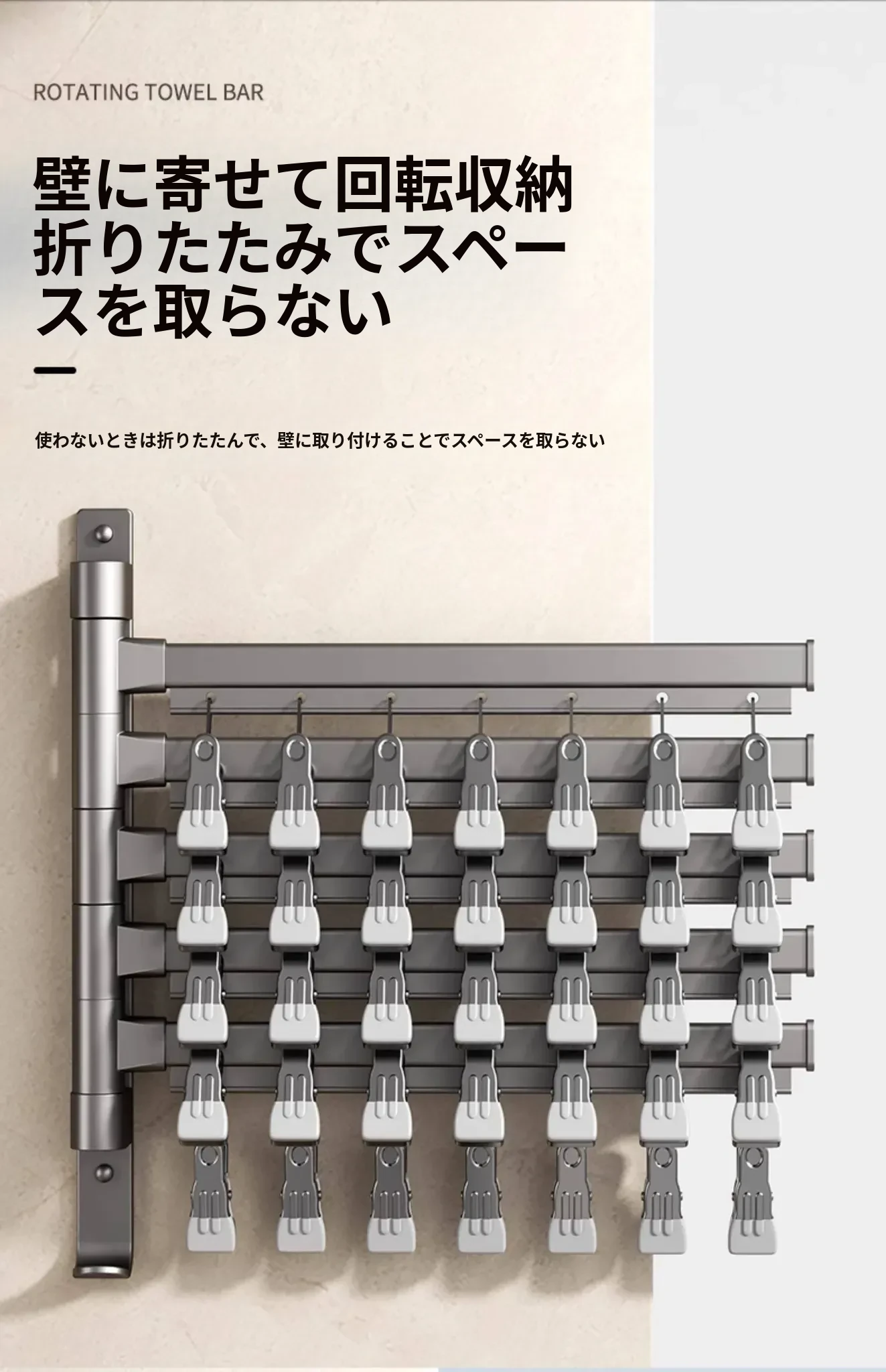 【グレー】ママ推薦❤5本35防風クリップ【180°左右回転】干し架