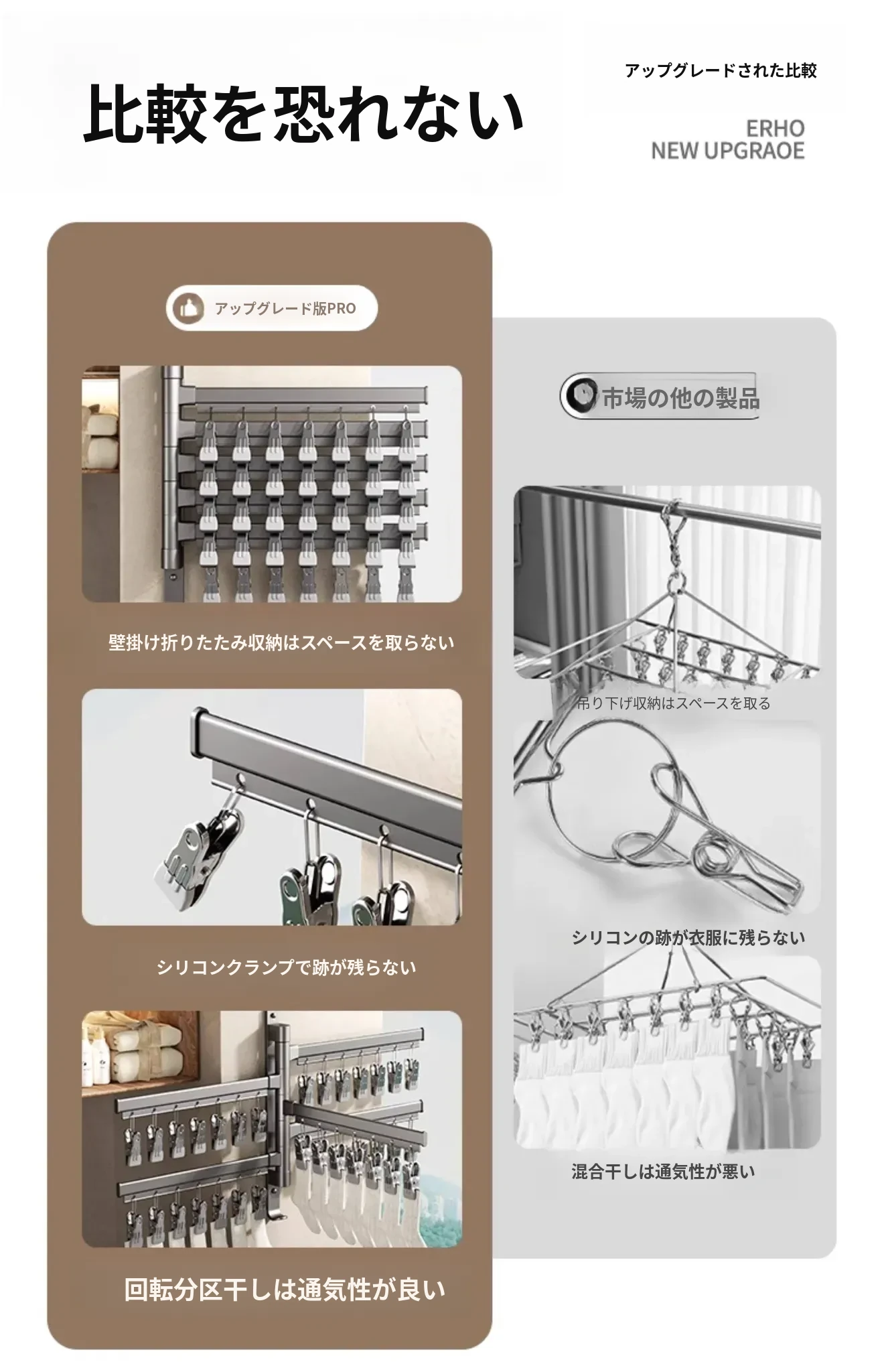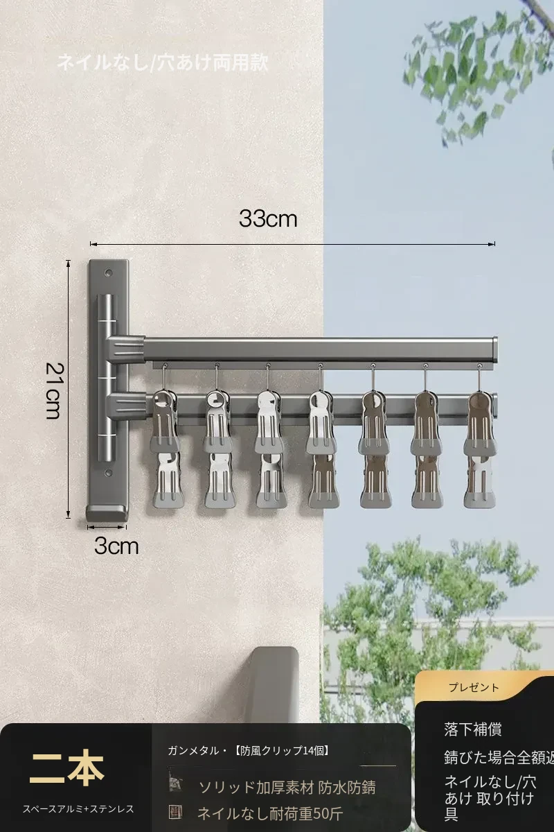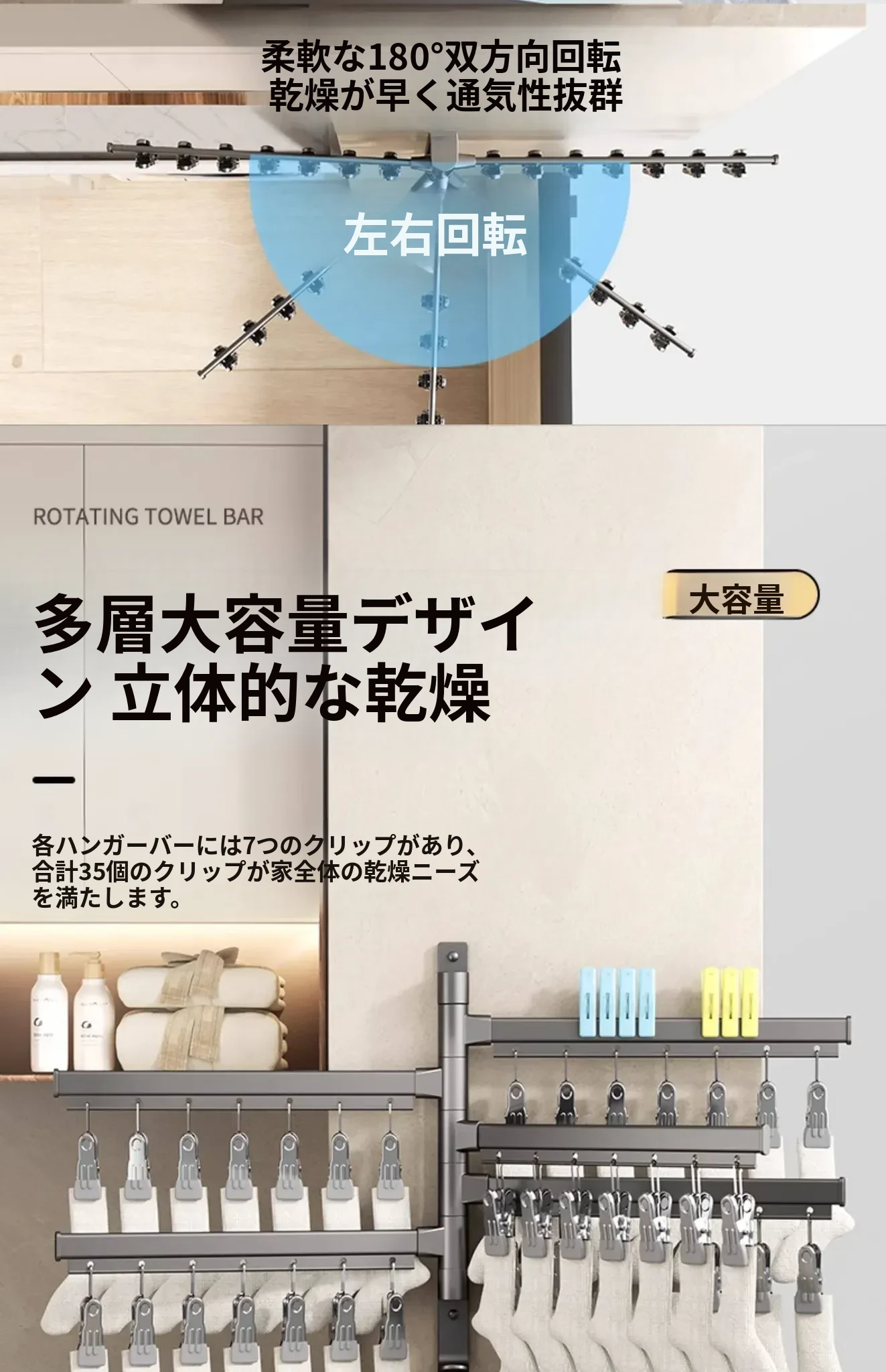 【グレー】ママ推薦❤5本35防風クリップ【180°左右回転】干し架
