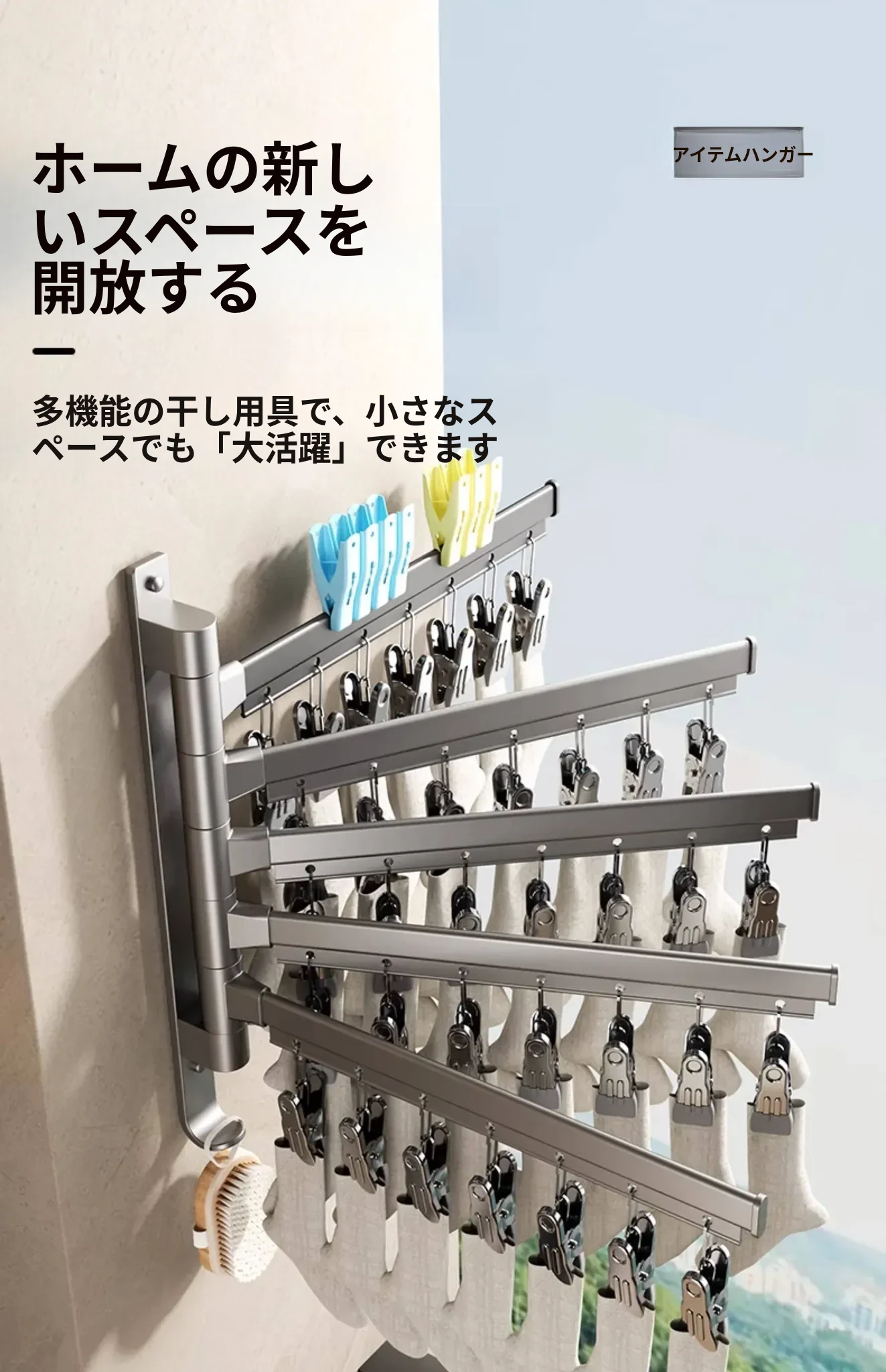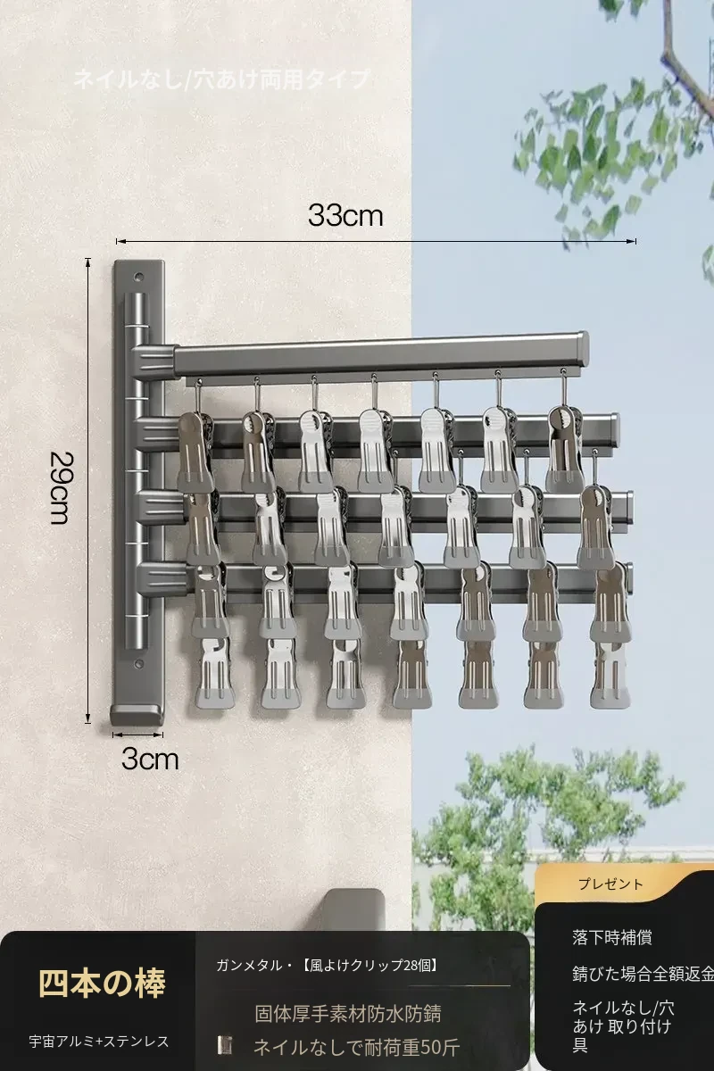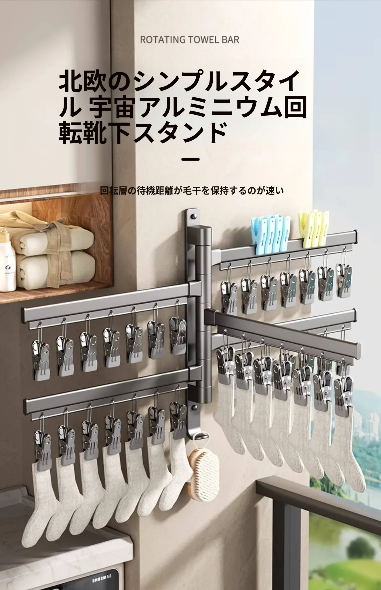 折りたたみ式洗濯ハンガー - 多機能クリップ付き、回転式で滑り止め設計!バルコニーで靴下や下着、シーツを簡単に干せる便利なアイテム。コストパフォーマンス抜群で、家庭にぴったりの必需品!