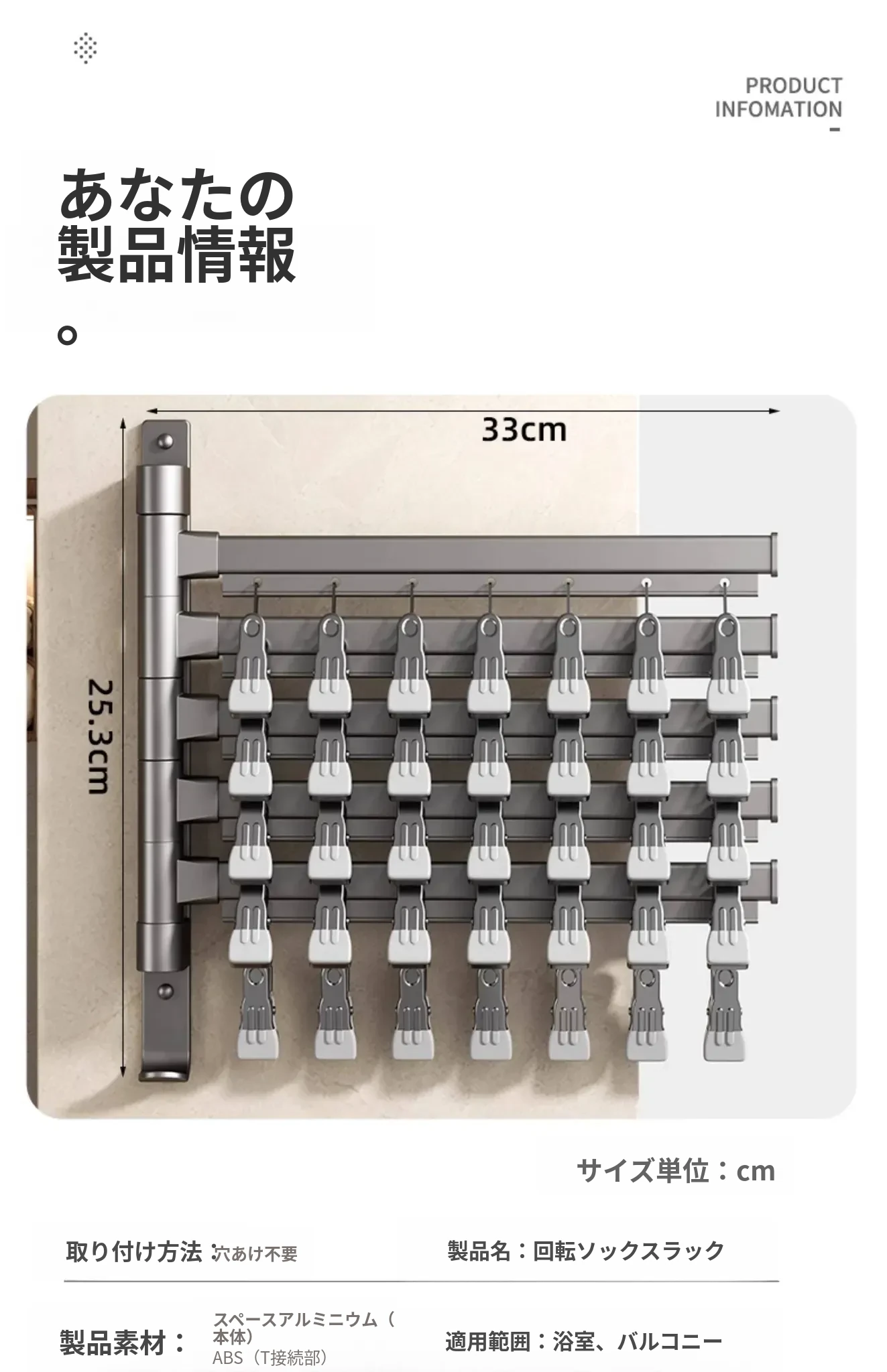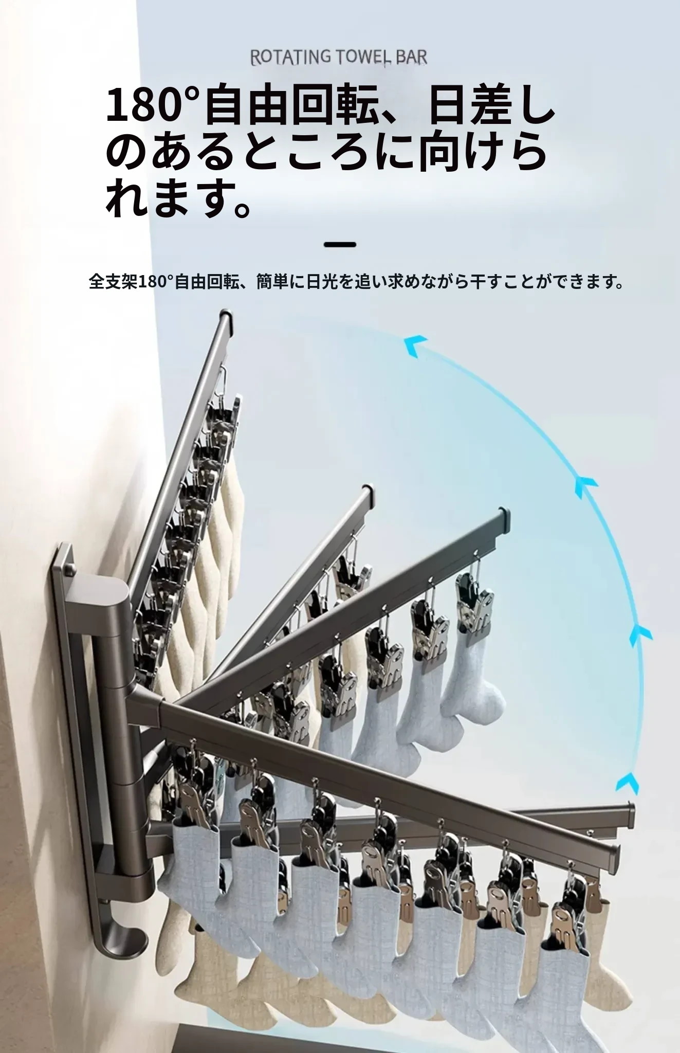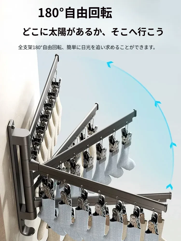 折りたたみ式洗濯ハンガー - 多機能クリップ付き、回転式で滑り止め設計!バルコニーで靴下や下着、シーツを簡単に干せる便利なアイテム。コストパフォーマンス抜群で、家庭にぴったりの必需品!
