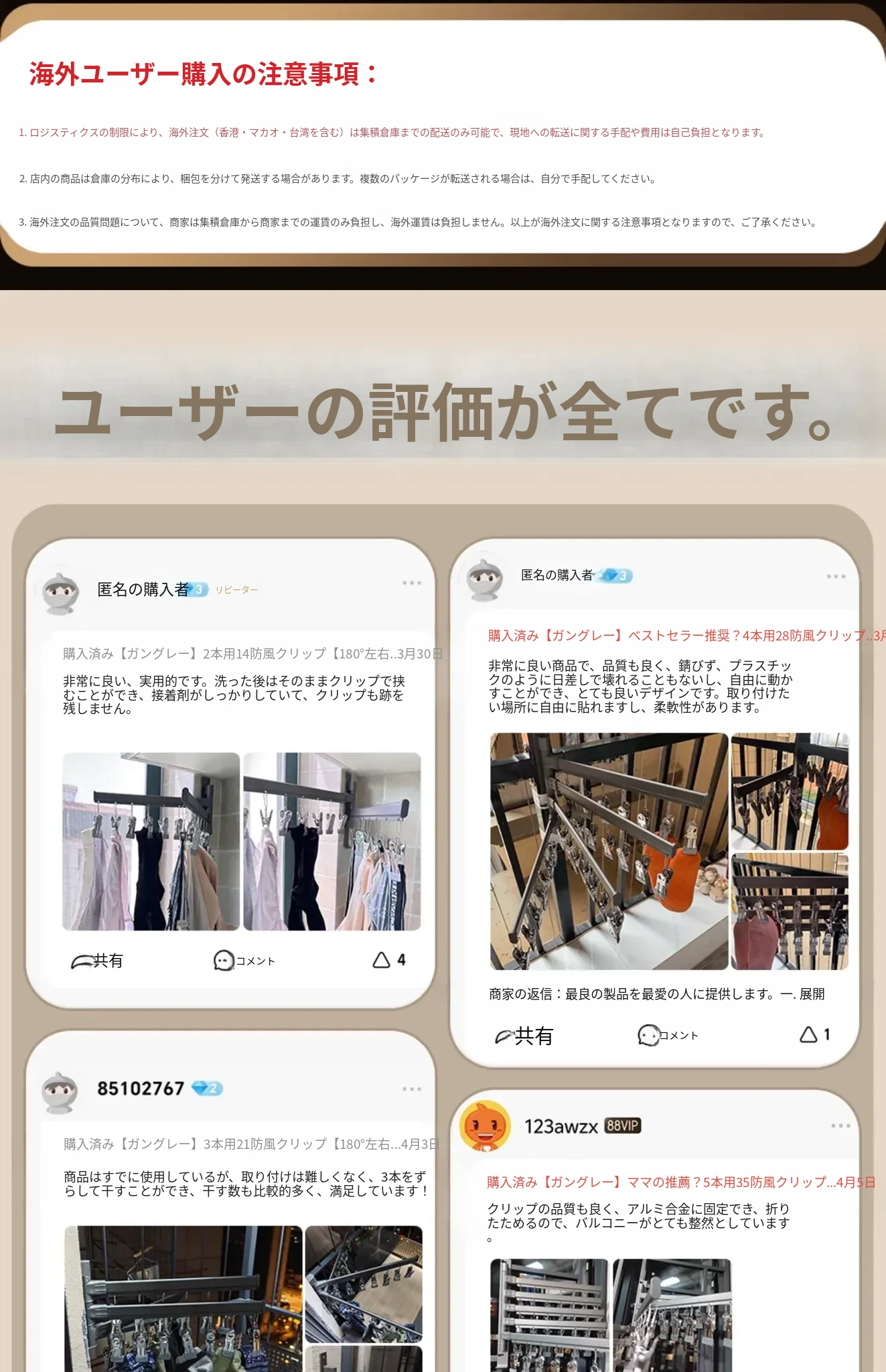 【グレー】人気商品❤4本28防風クリップ【180°左右回転】干し架