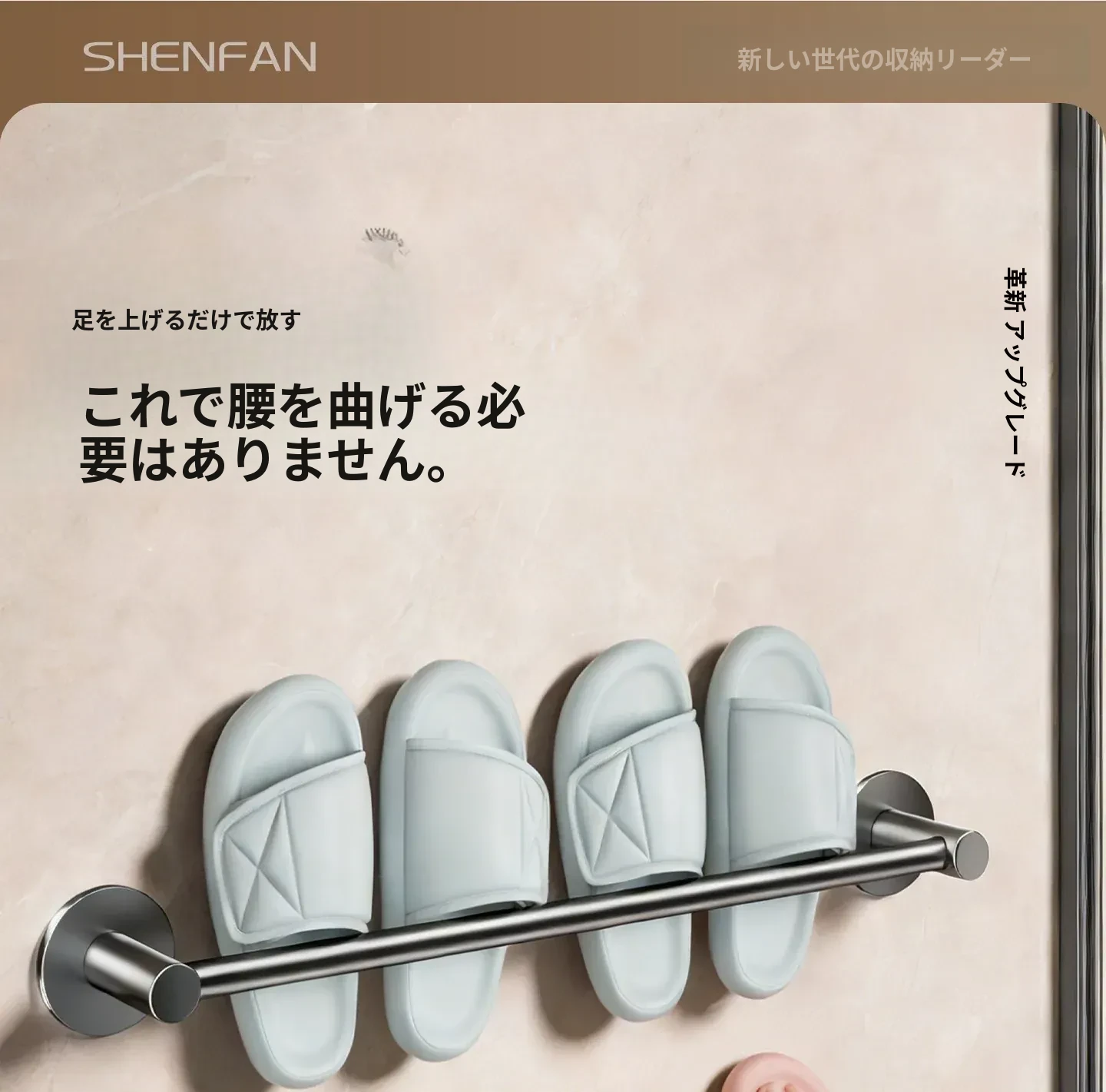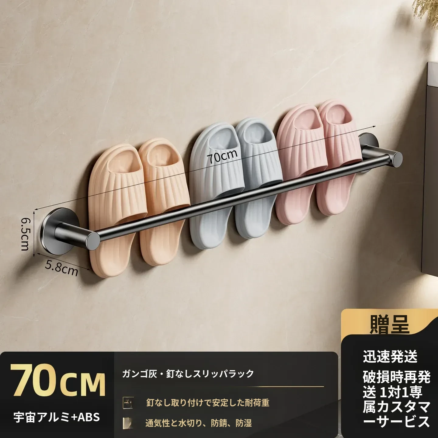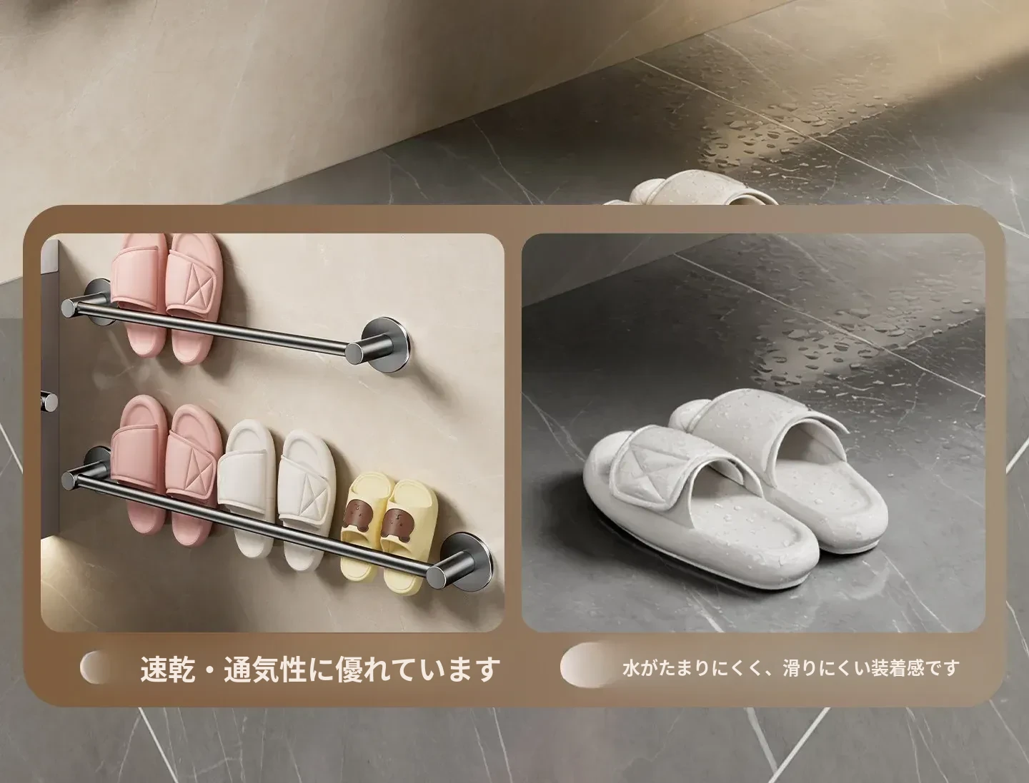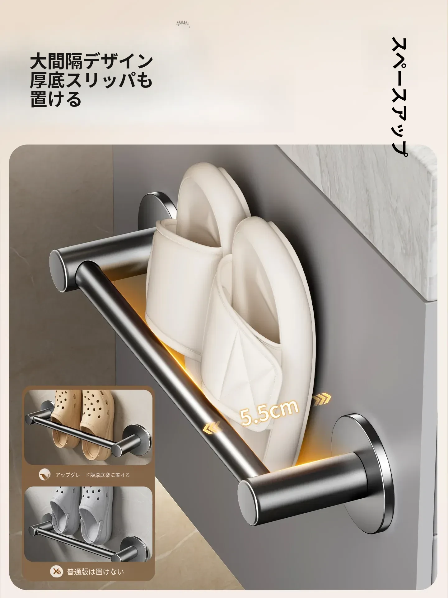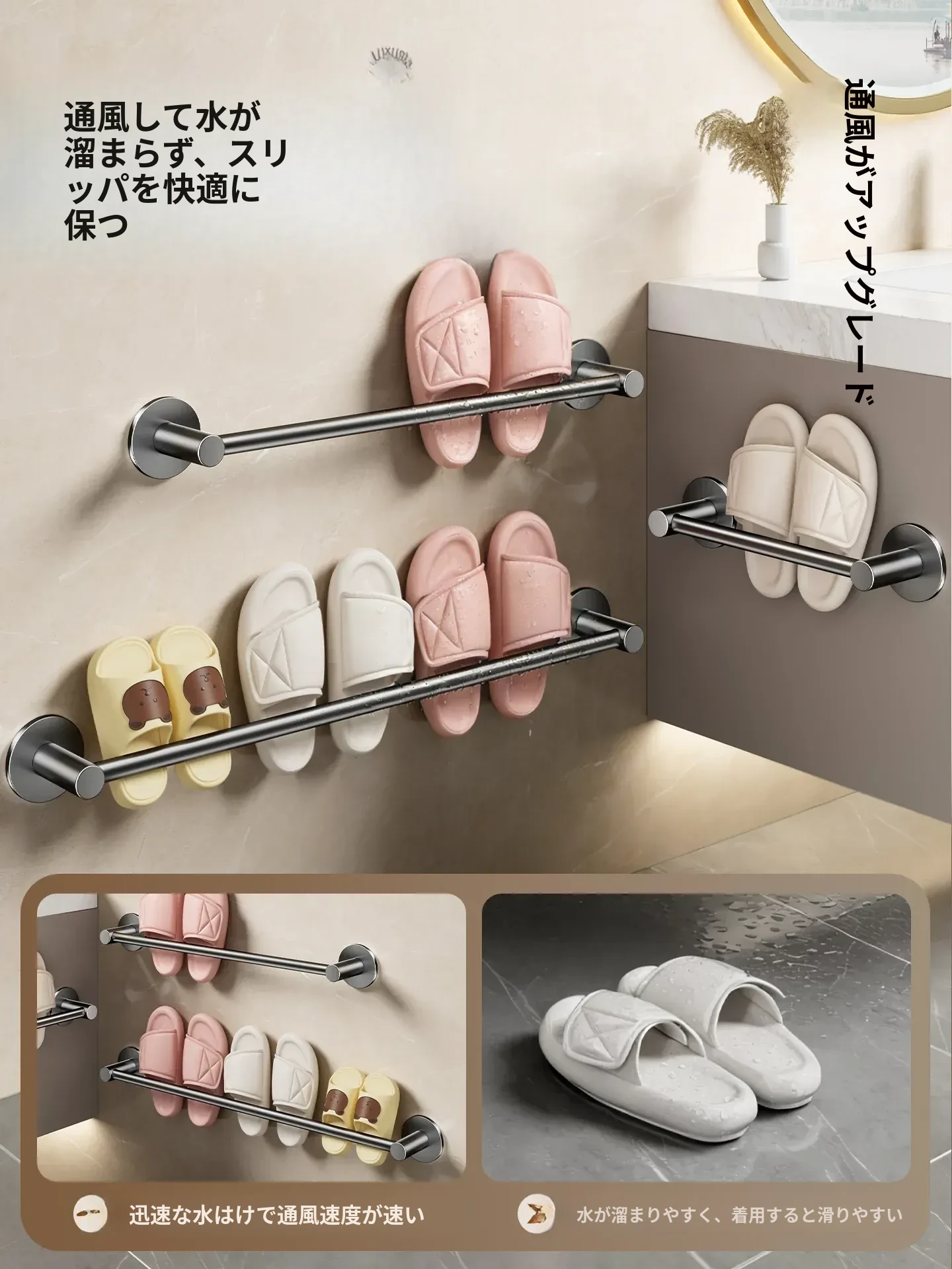 バスルーム用スリッパラック - 簡単取り付け、穴あけ不要!トイレでの靴収納に最適な壁掛け式オーガナイザー。水切り機能付きで清潔を保つ、ドアの裏にぴったりフィット!