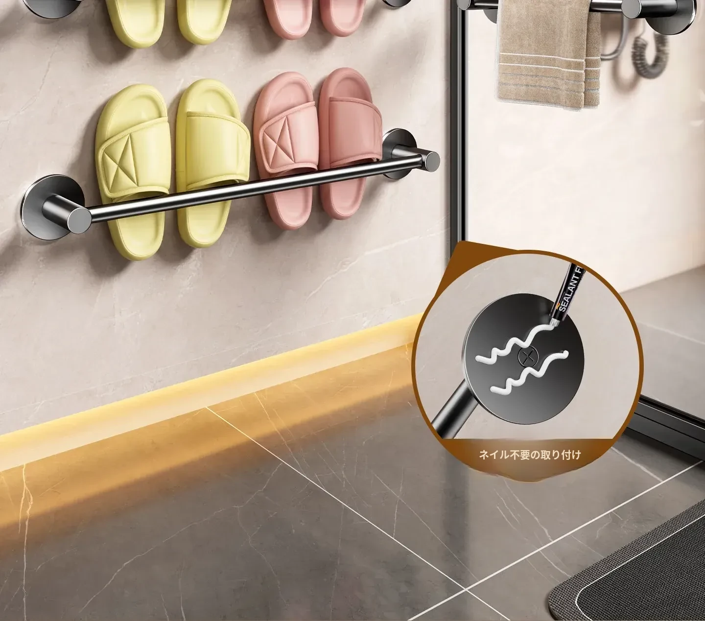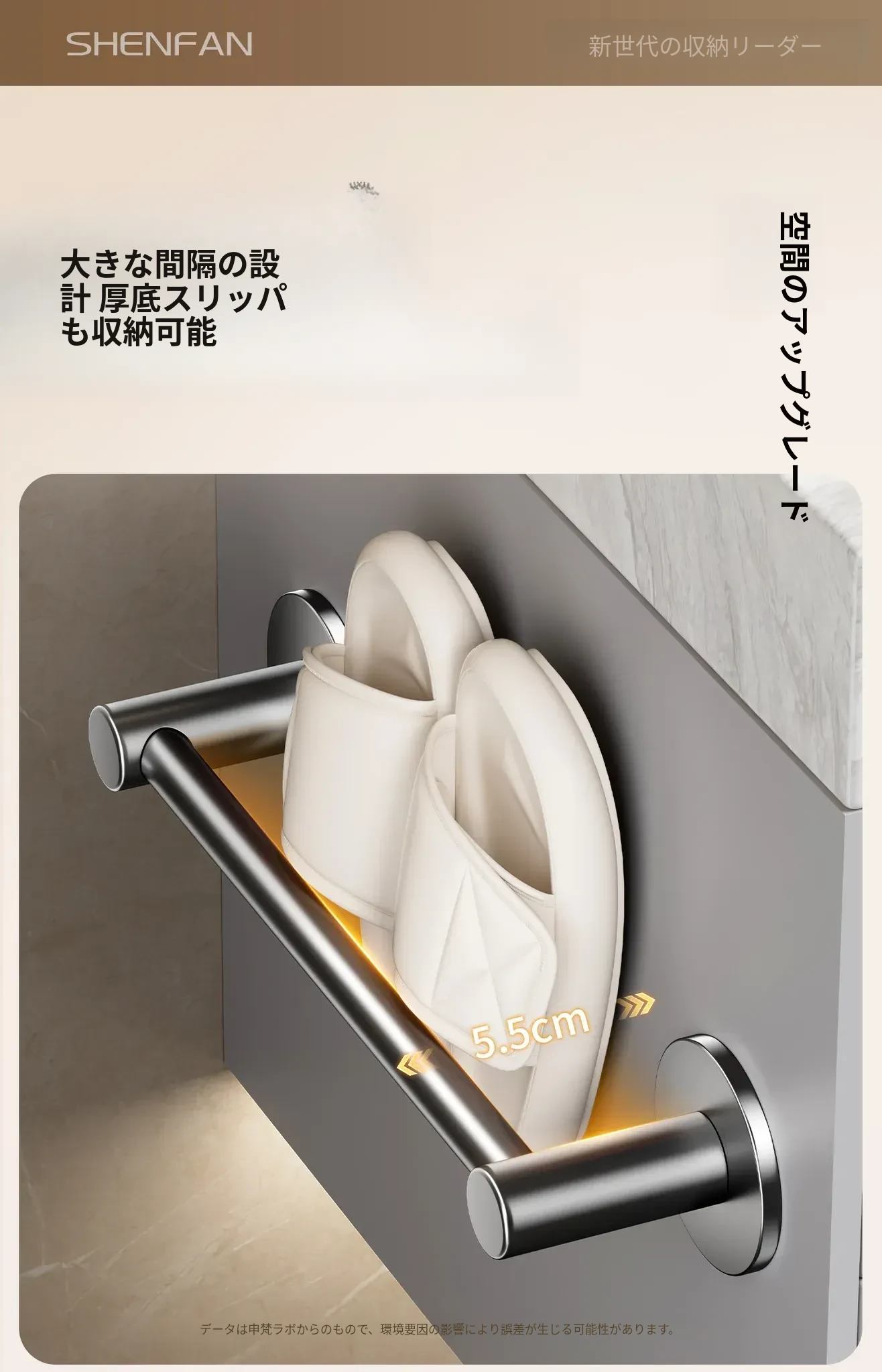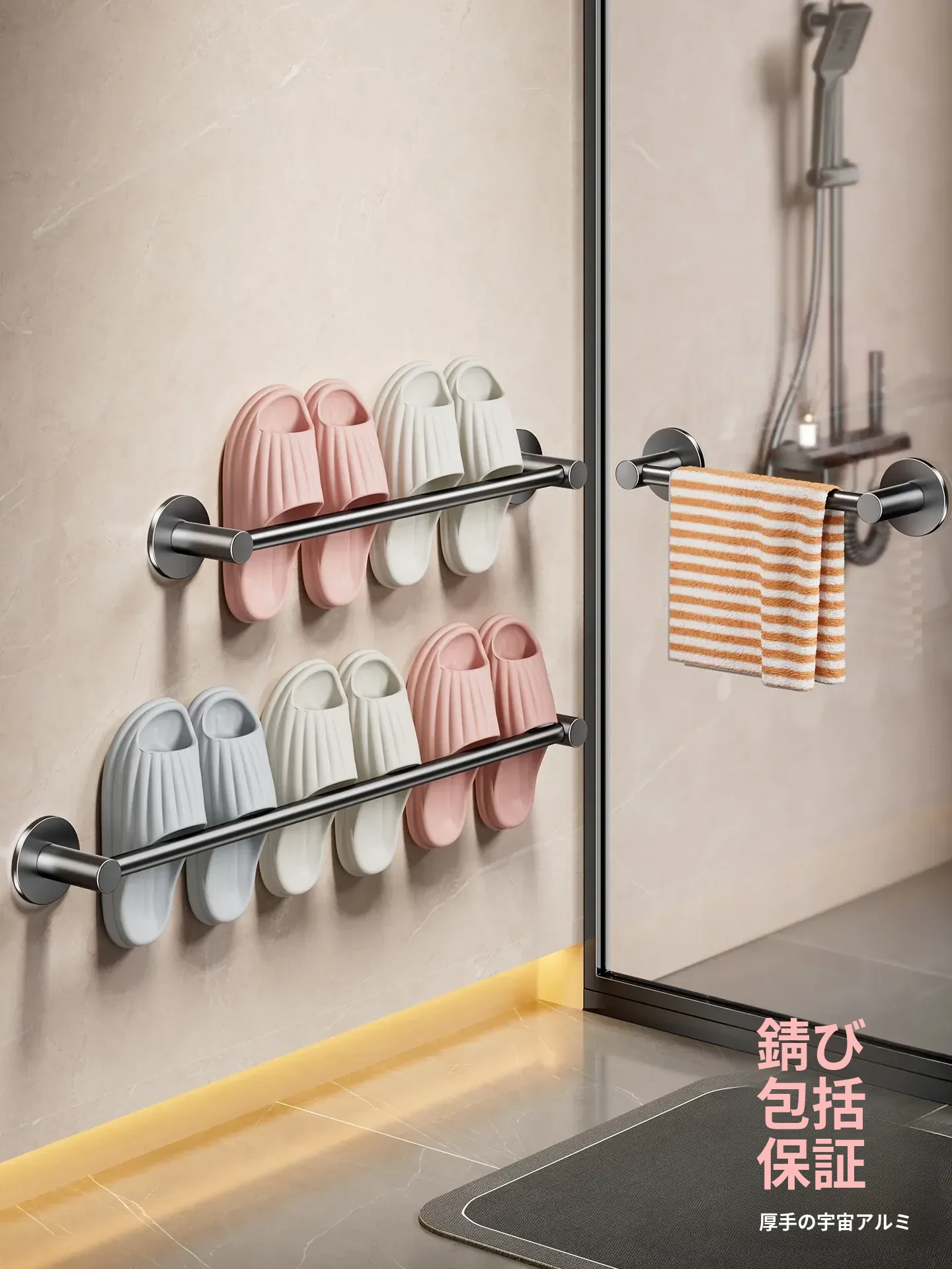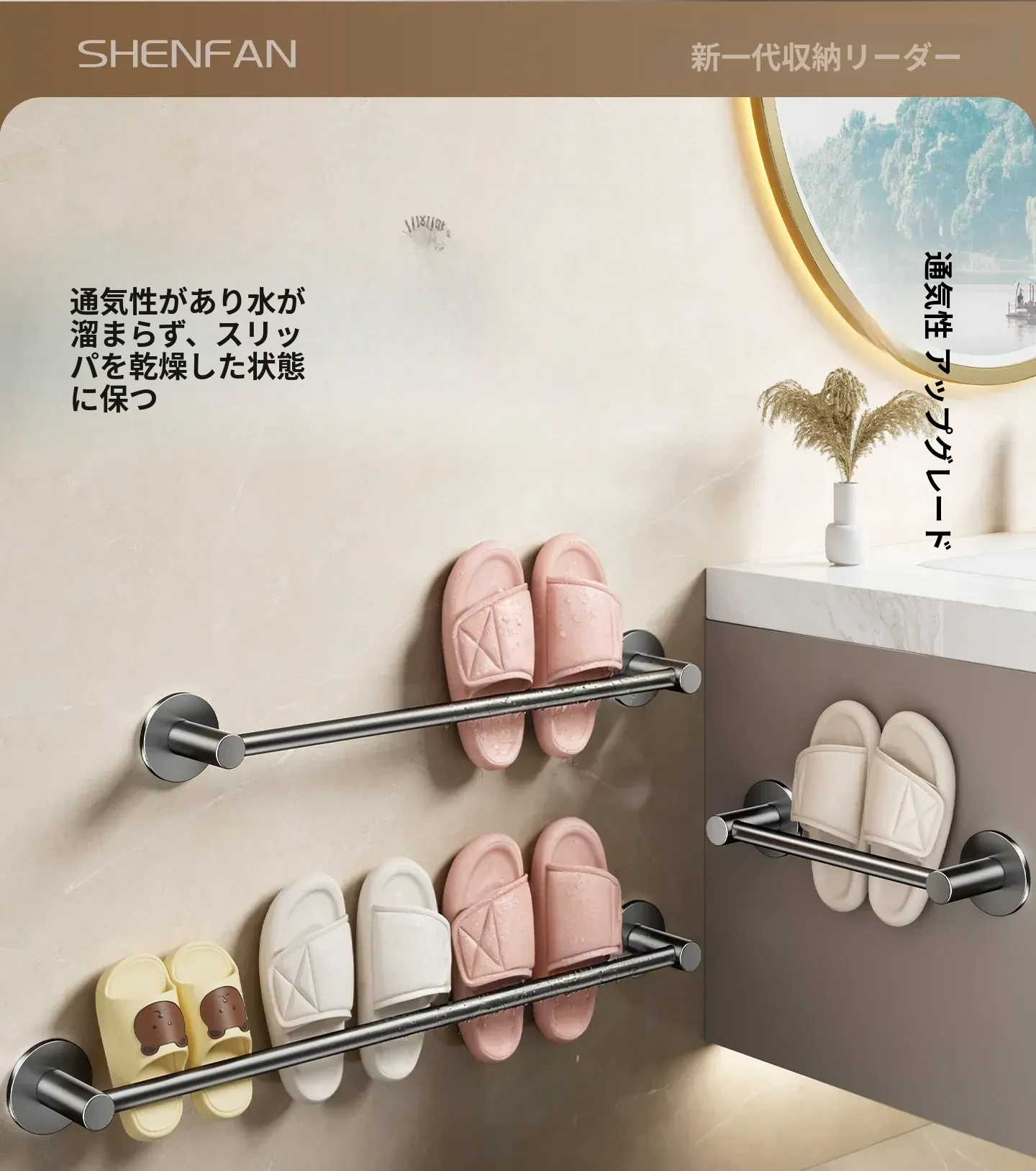 バスルーム用スリッパラック - 簡単取り付け、穴あけ不要!トイレでの靴収納に最適な壁掛け式オーガナイザー。水切り機能付きで清潔を保つ、ドアの裏にぴったりフィット!