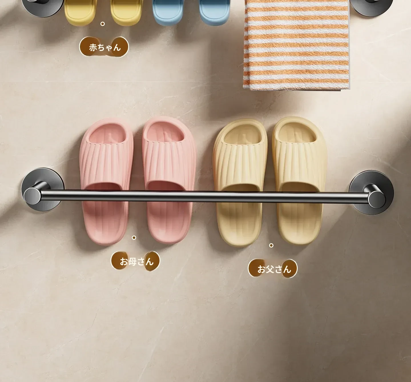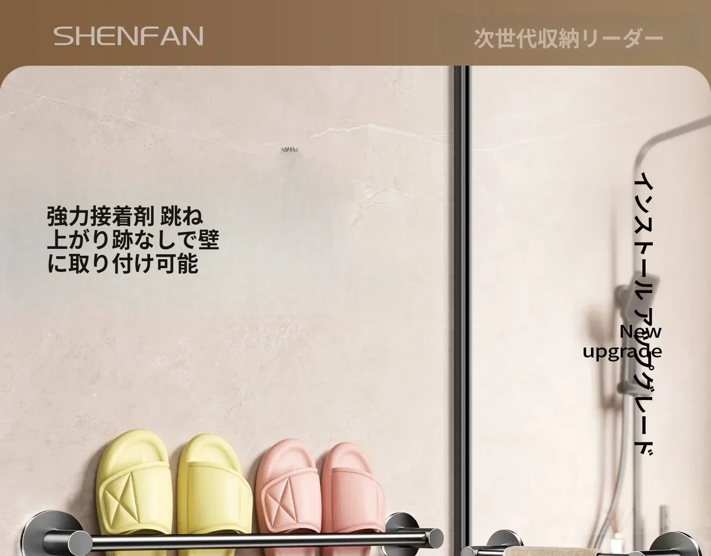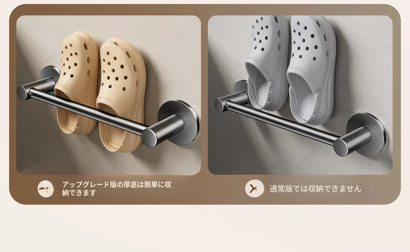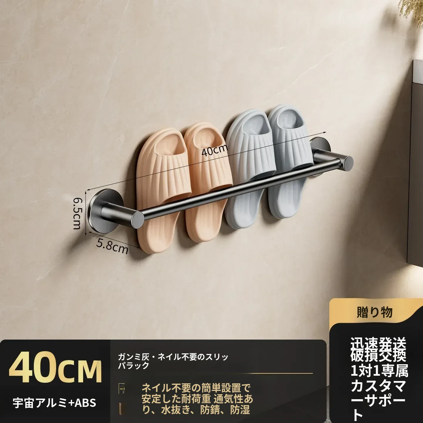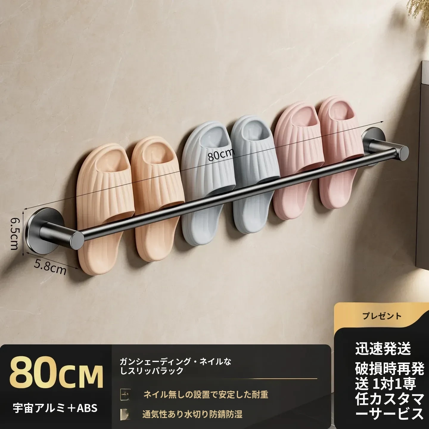 バスルーム用スリッパラック - 簡単取り付け、穴あけ不要!トイレでの靴収納に最適な壁掛け式オーガナイザー。水切り機能付きで清潔を保つ、ドアの裏にぴったりフィット!