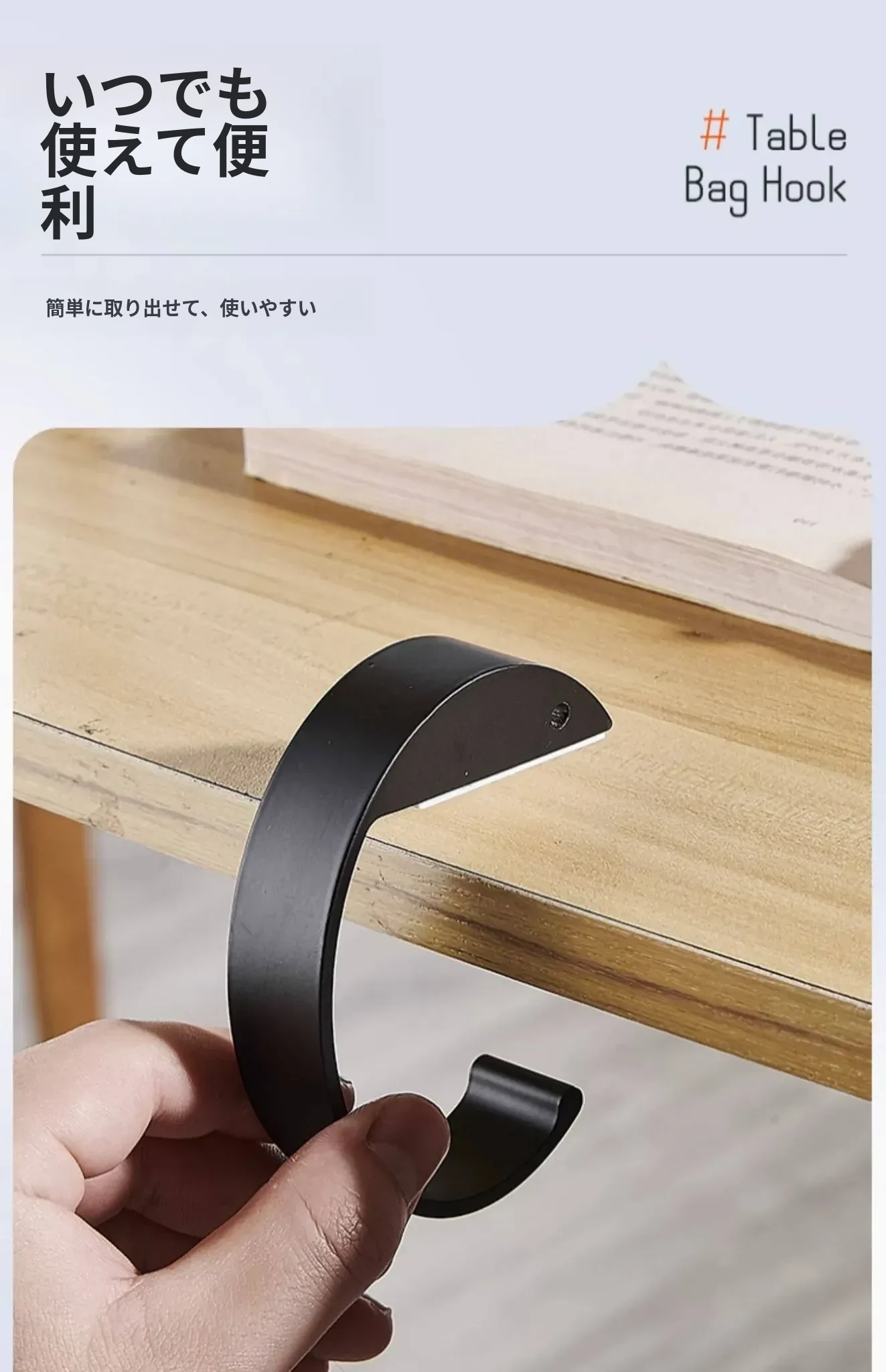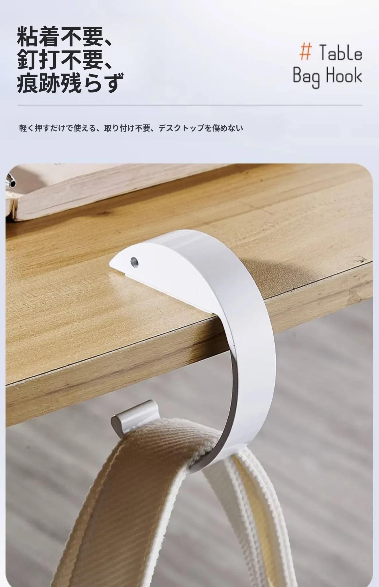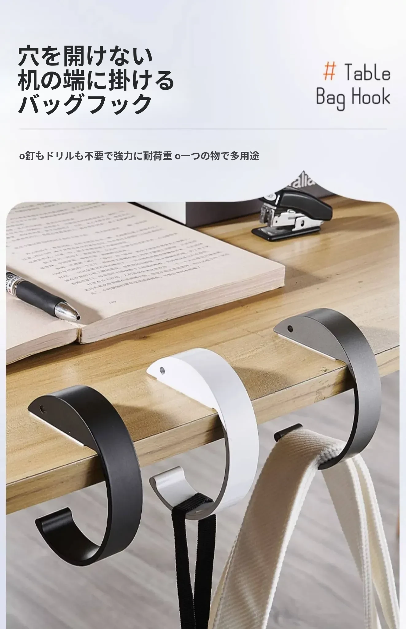 教室専用!穴を開けずに簡単取り付け、デスクサイドに最適な学生用バックフック。便利なバッグホルダーで、すっきり整理整頓!収納力抜群の新しい必需品!