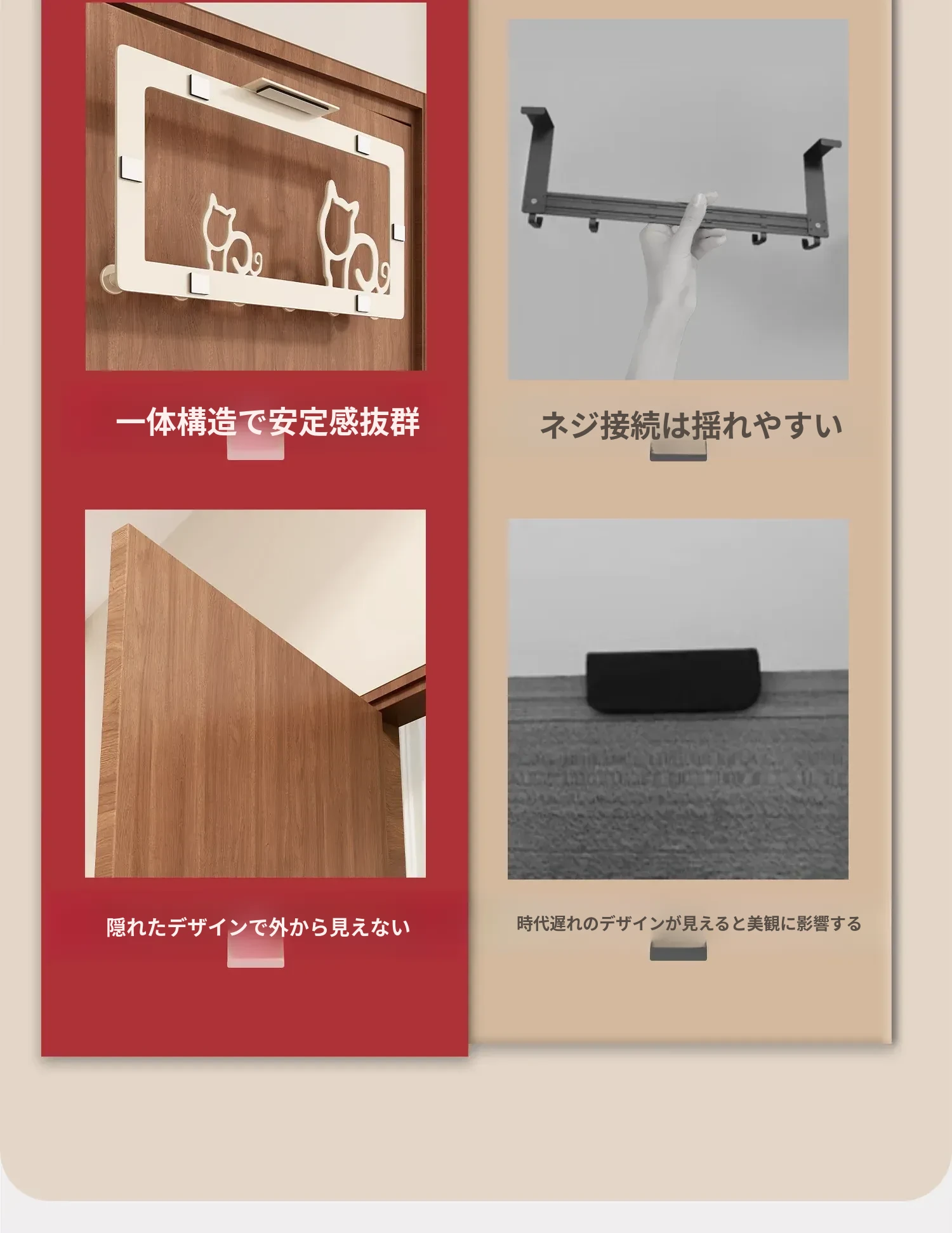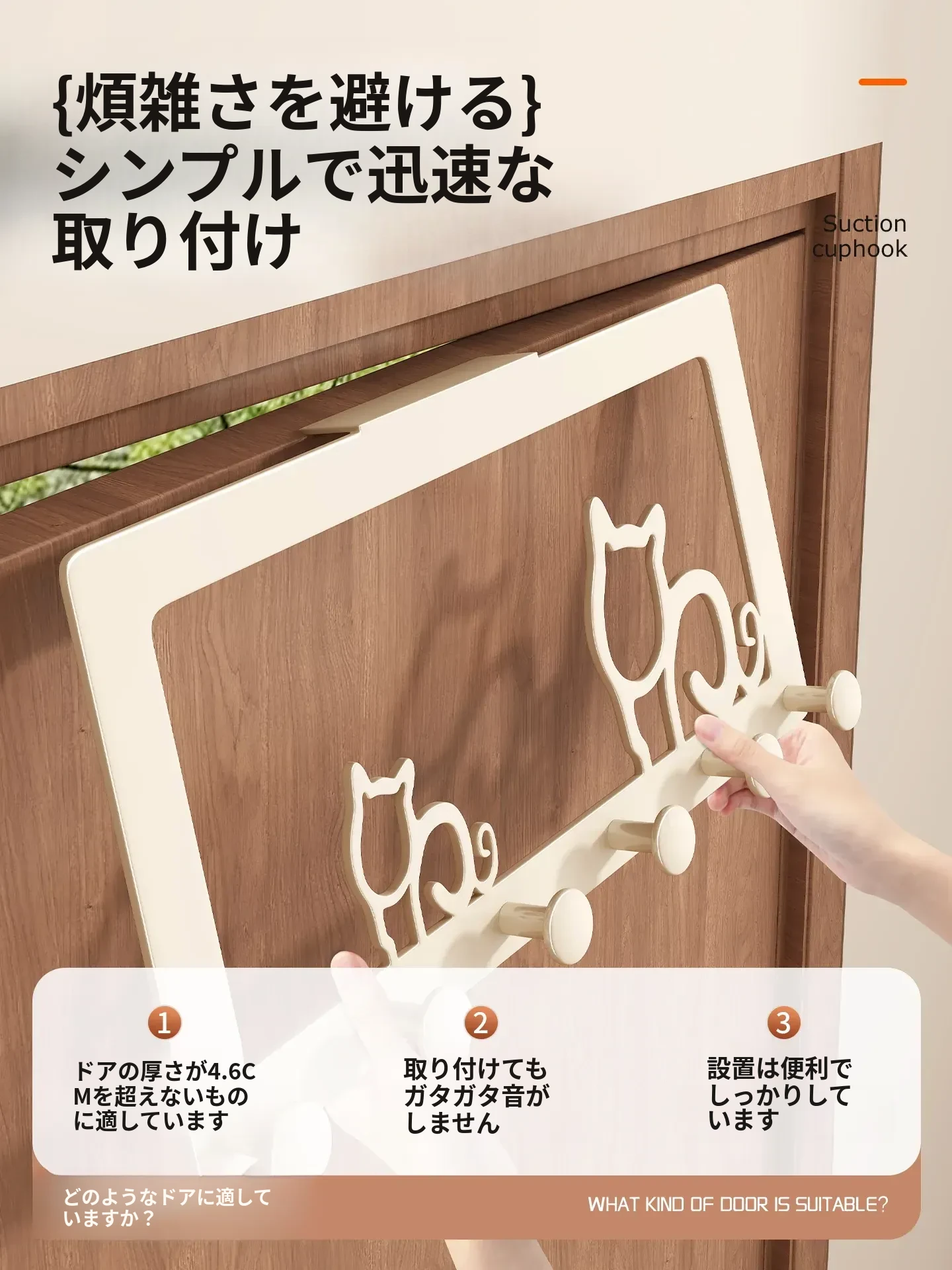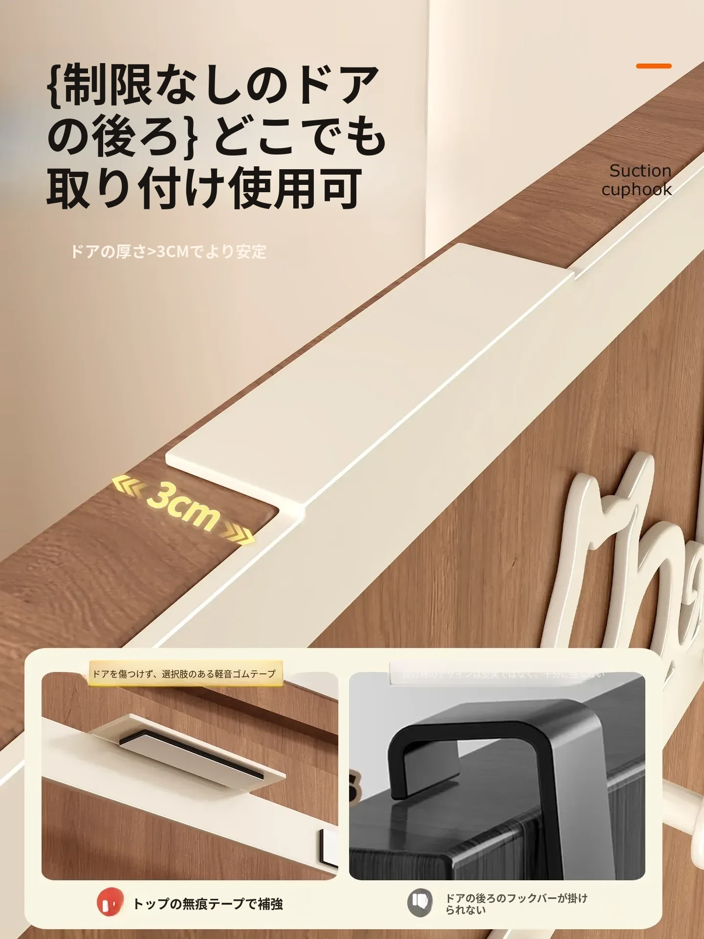 ドアフック新登場!穴を開けずに簡単取り付け、ドアに掛けるだけで衣類整理がスムーズに!寝室やリビングの収納に最適な便利グッズ、スペースを有効活用してお部屋をスッキリ!