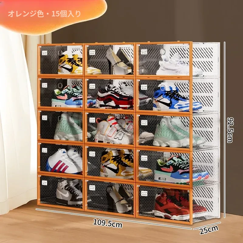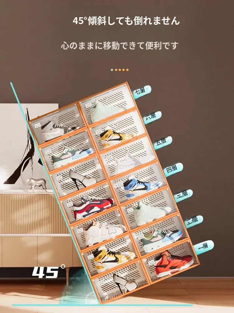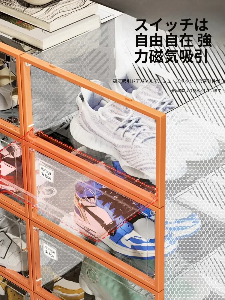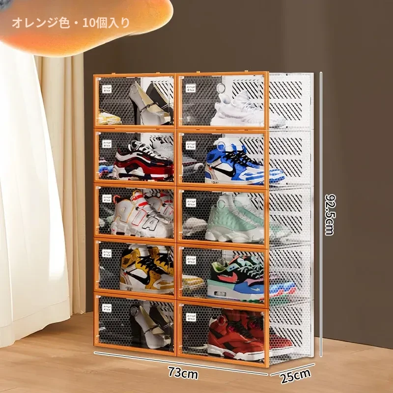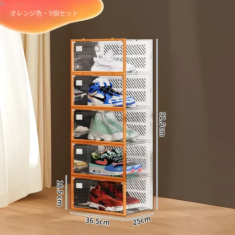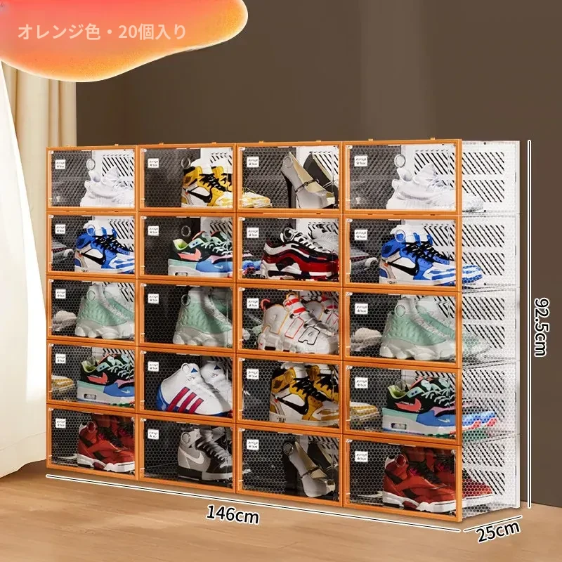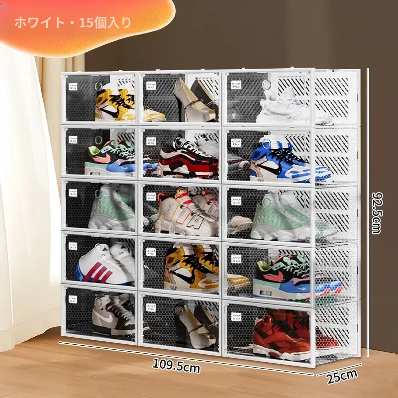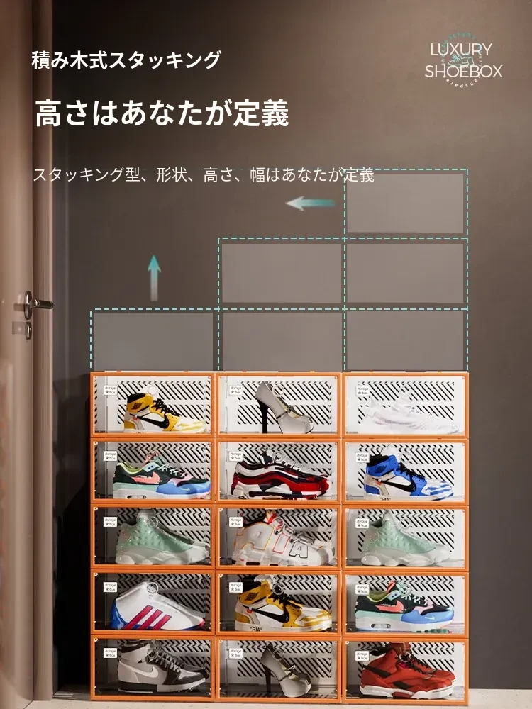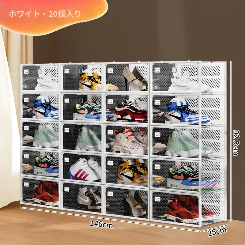 朋菲の透明ハードプラスチックシューズボックス - スペースを有効活用する靴収納の必需品!サイドオープンで取り出しやすく、ほこりから守る多層式デザイン。家庭での靴整理に最適です!