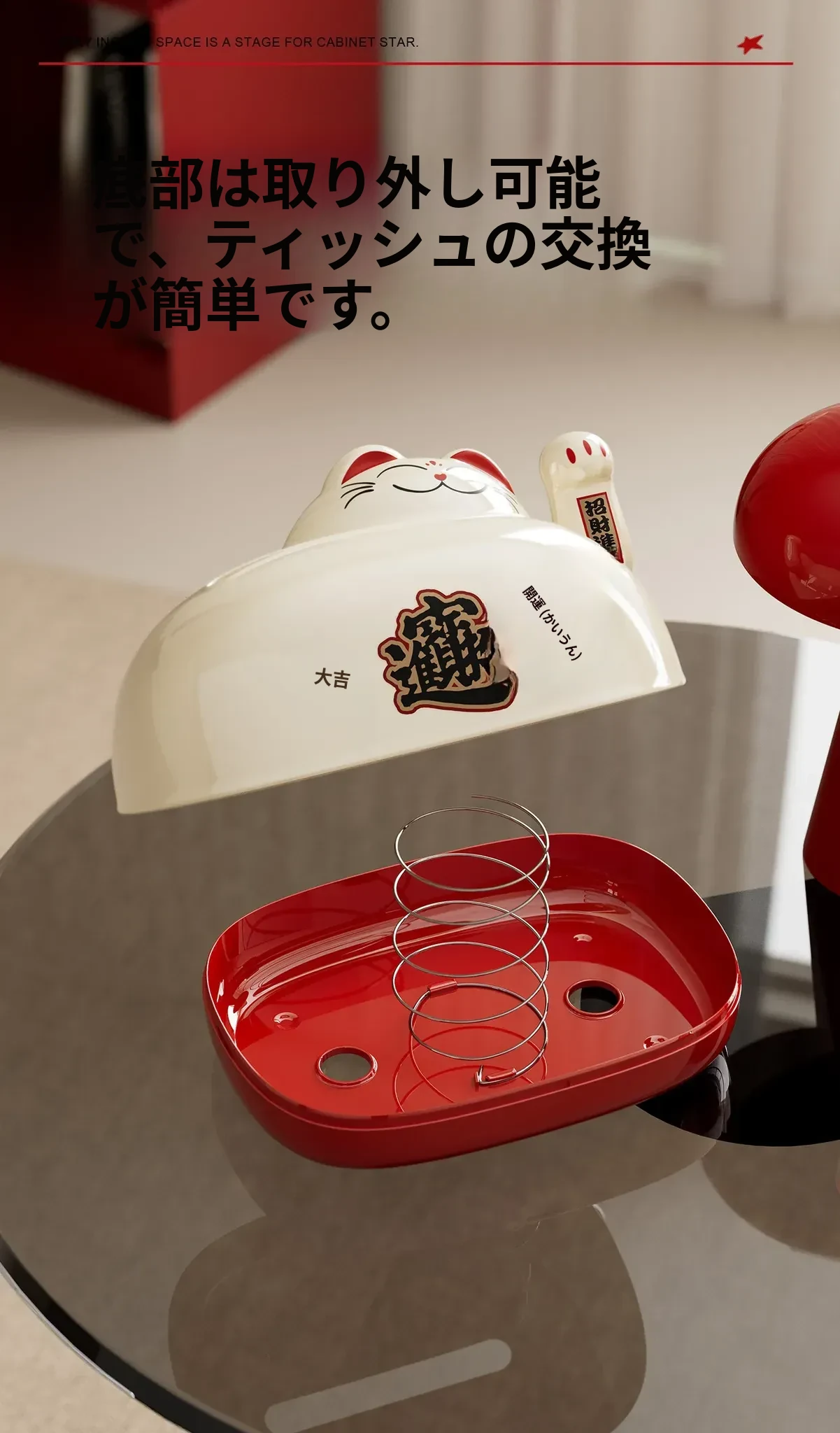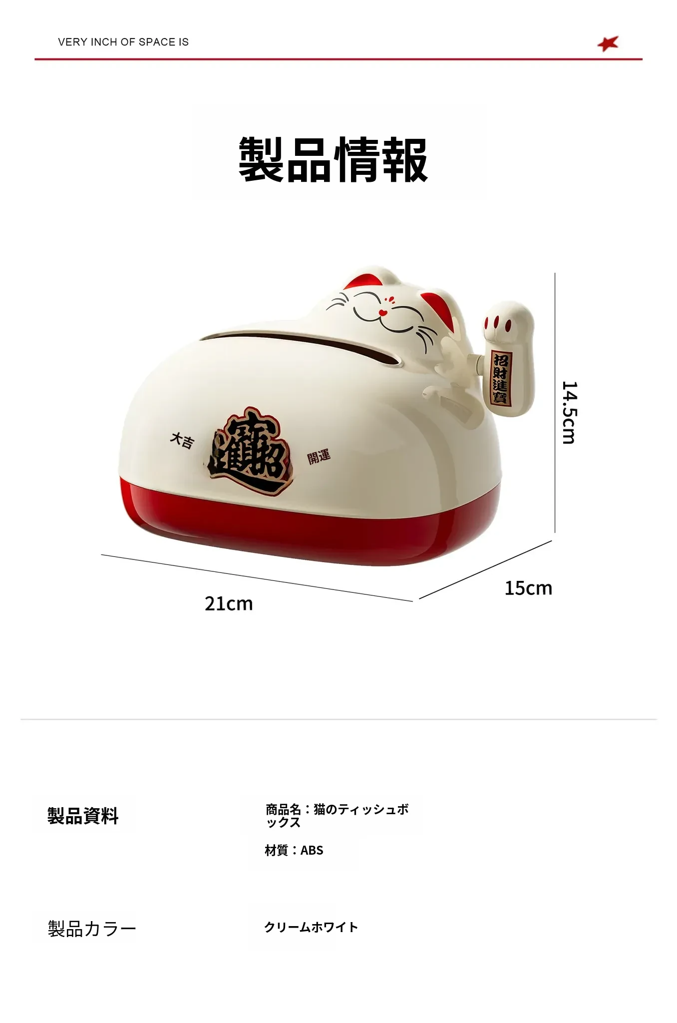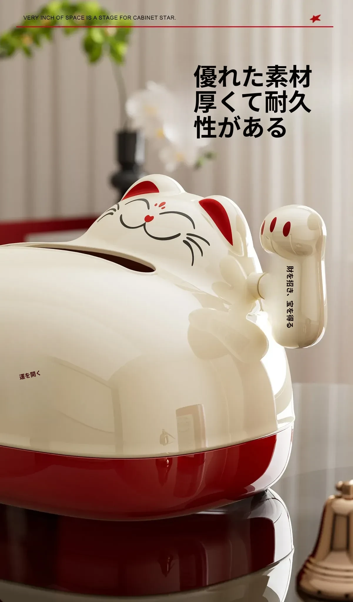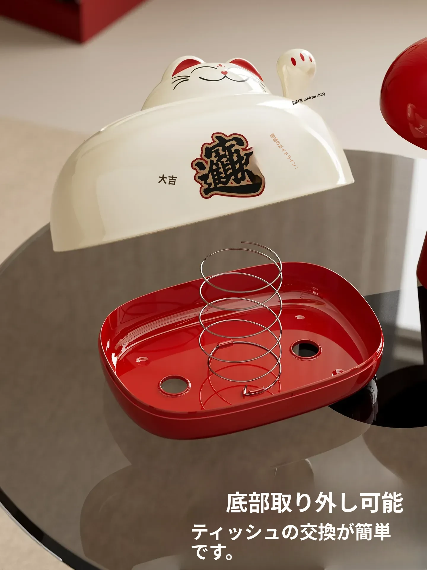 朋菲の招き猫ティッシュボックス - 大容量でおしゃれなデザイン、リビングやダイニングにぴったりのスプリング式収納ボックス!あなたの空間を楽しく彩ります。