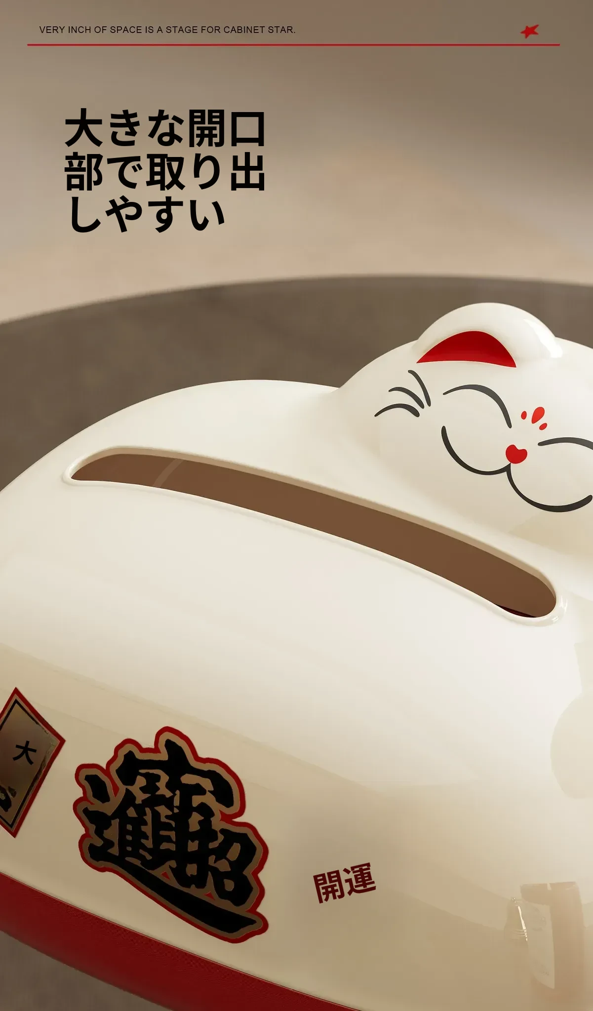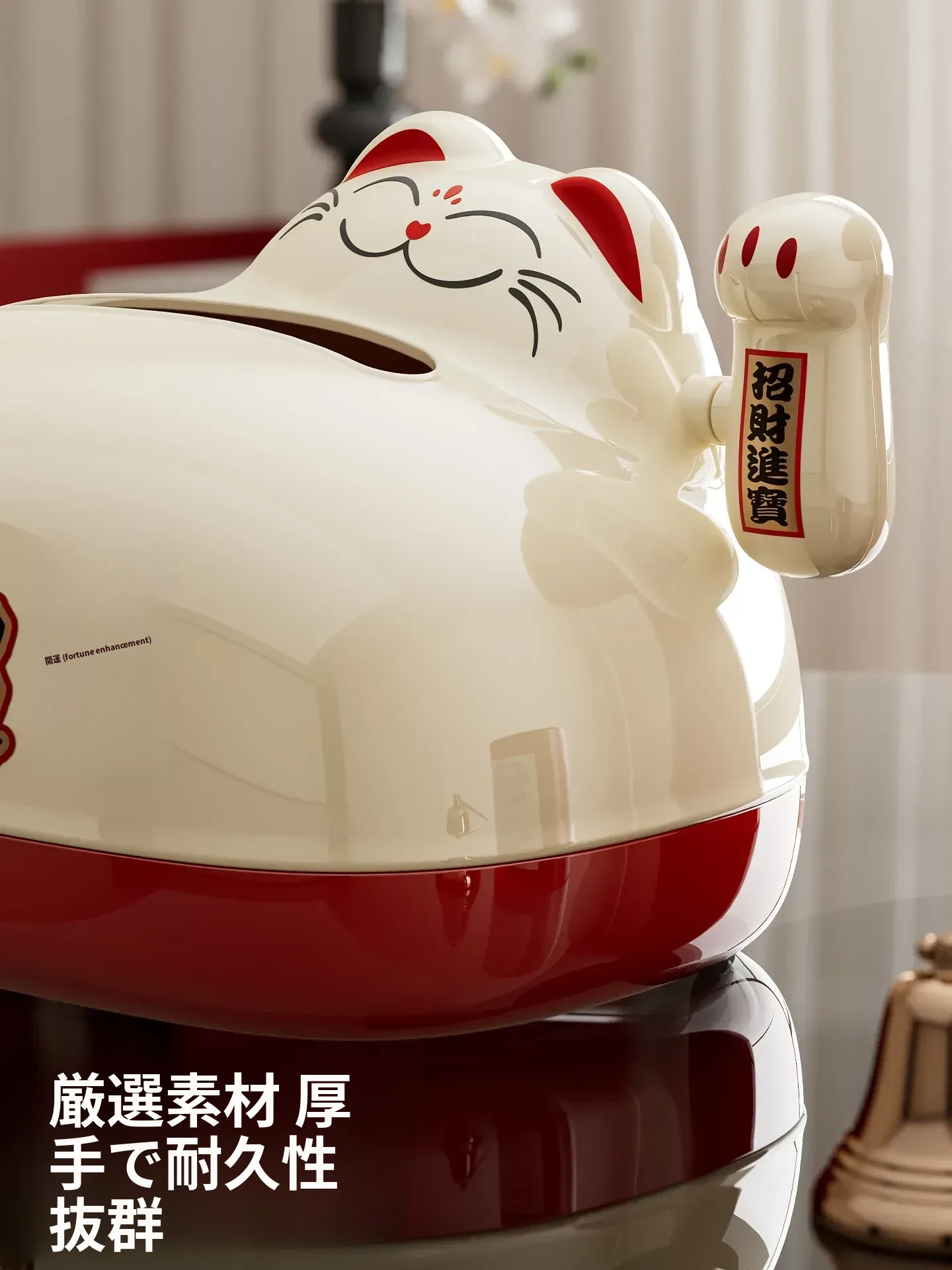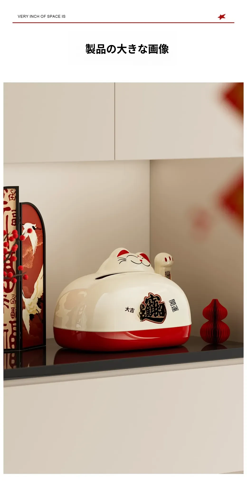 朋菲の招き猫ティッシュボックス - 大容量でおしゃれなデザイン、リビングやダイニングにぴったりのスプリング式収納ボックス!あなたの空間を楽しく彩ります。