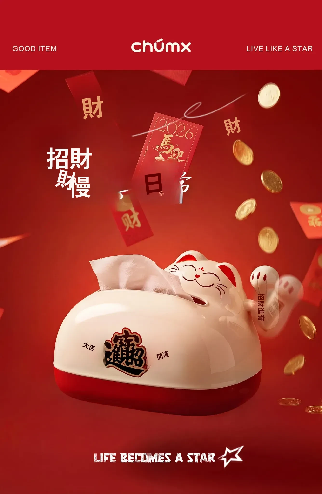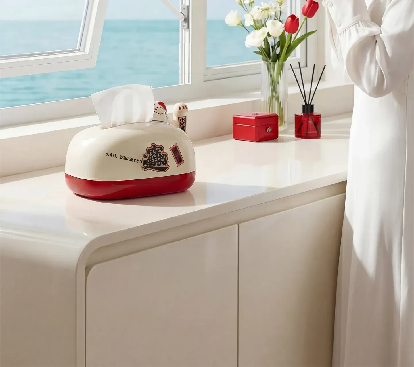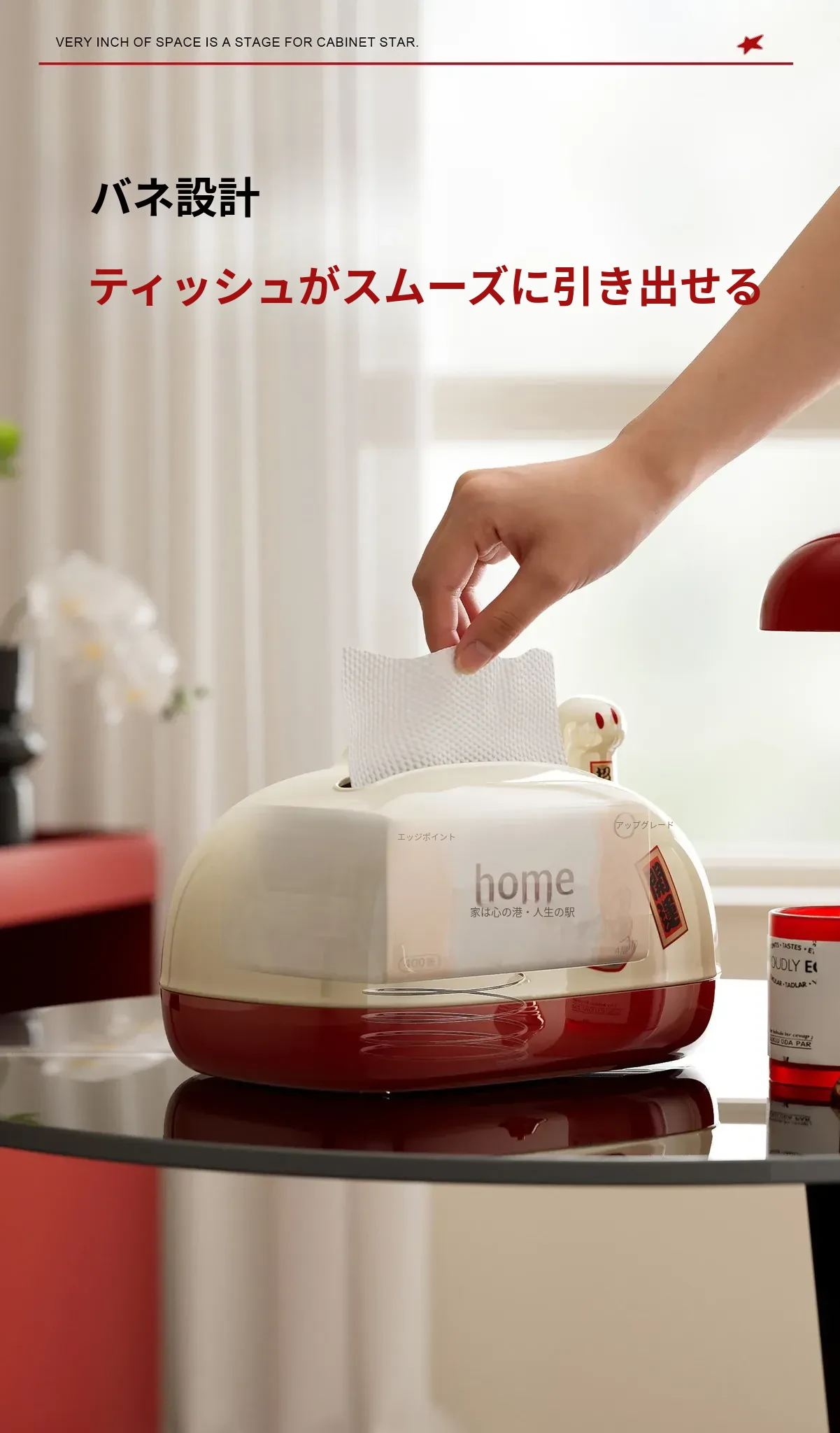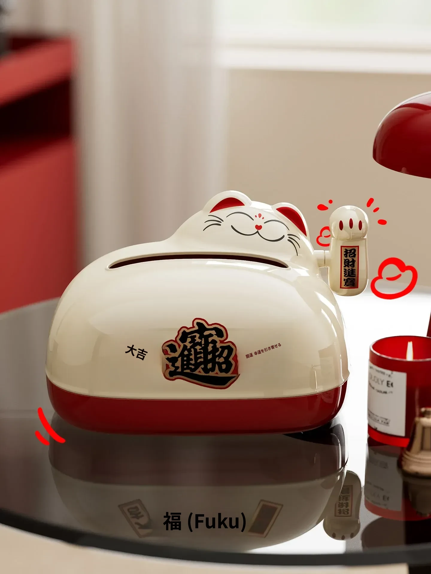 朋菲の招き猫ティッシュボックス - 大容量でおしゃれなデザイン、リビングやダイニングにぴったりのスプリング式収納ボックス!あなたの空間を楽しく彩ります。