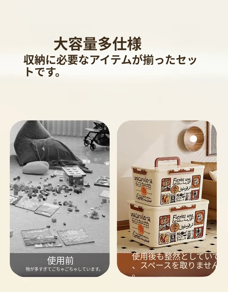 朋菲大容量手提収納ボックス|おもちゃ・お菓子・本の整理に最適!プラスチック製の便利なストレージバスケットで、家中をスッキリ片付けましょう!