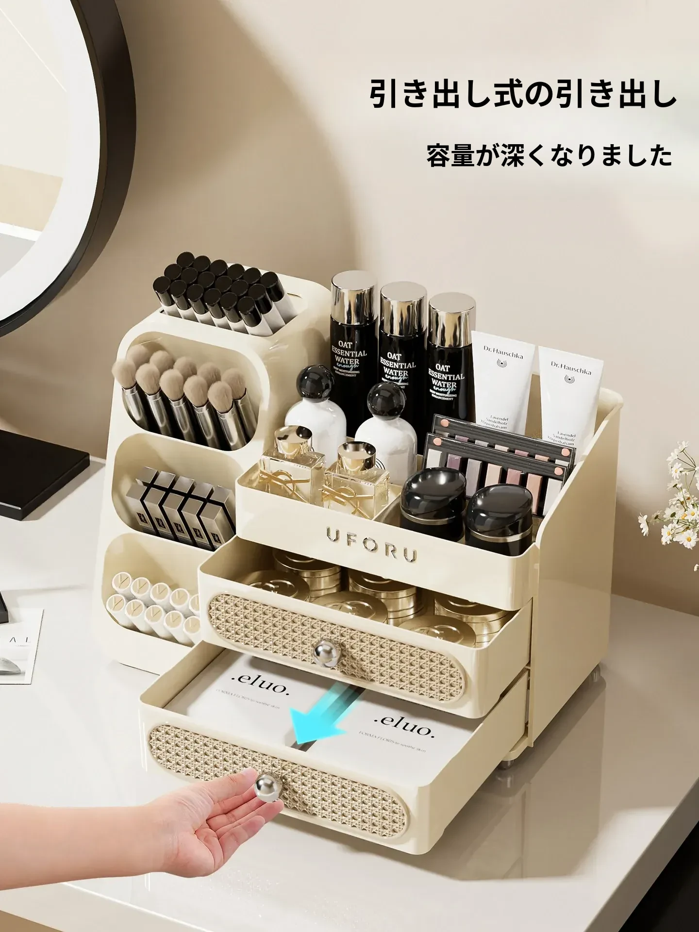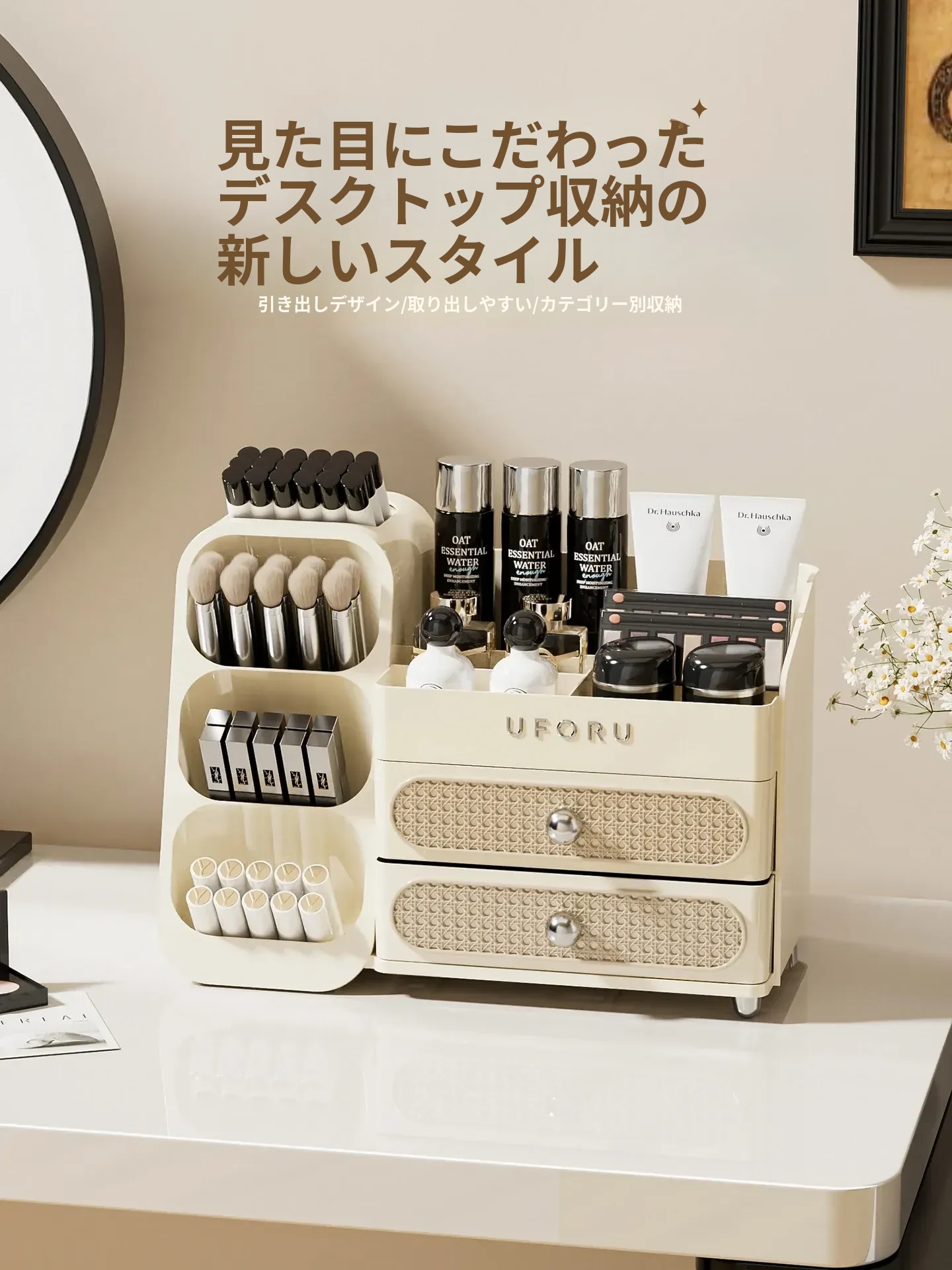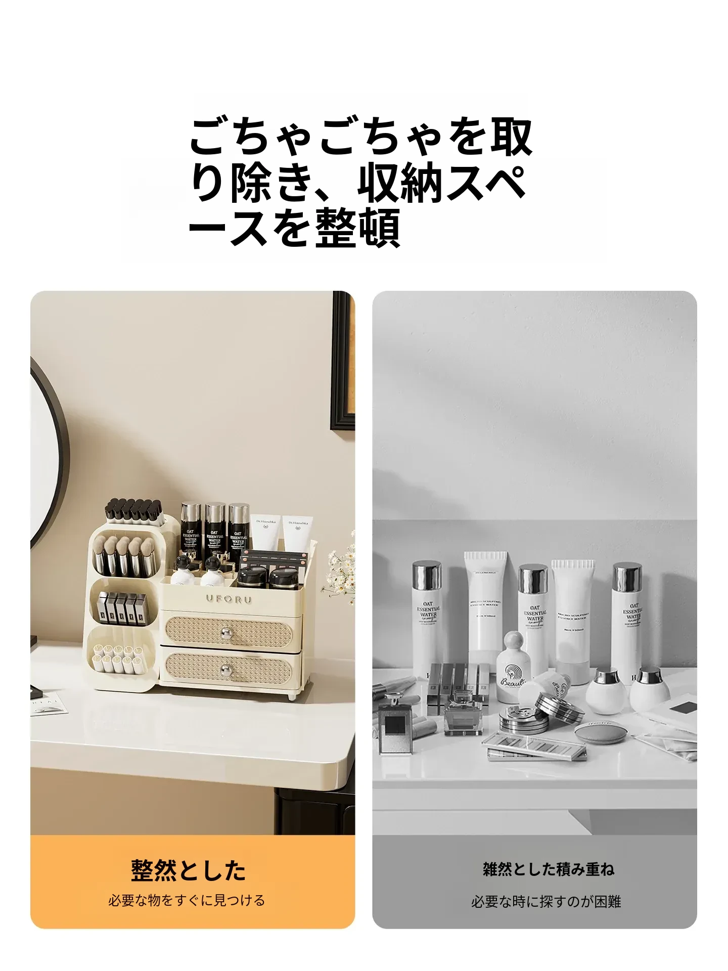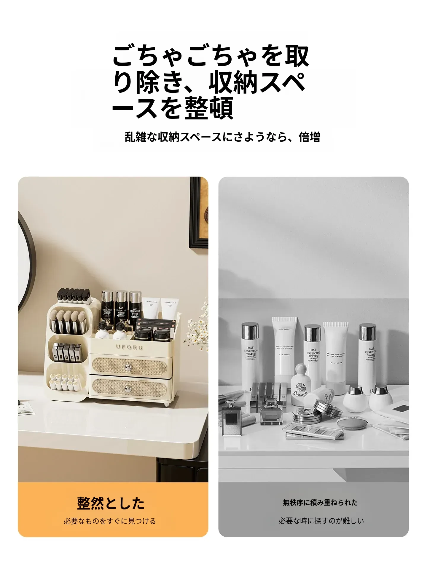 朋菲コスメ収納ボックス - デスクトップメイク台用、口紅・アイブロウペン・スキンケア製品をスッキリ整理!防塵設計で、おしゃれな空間を演出します。