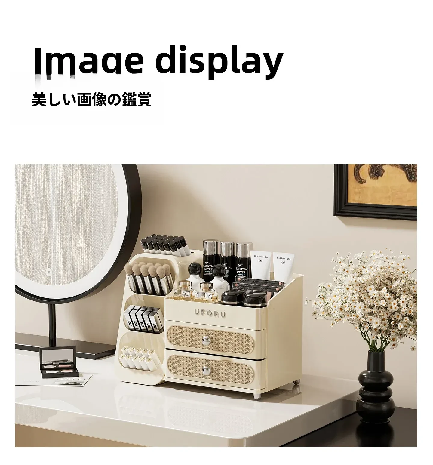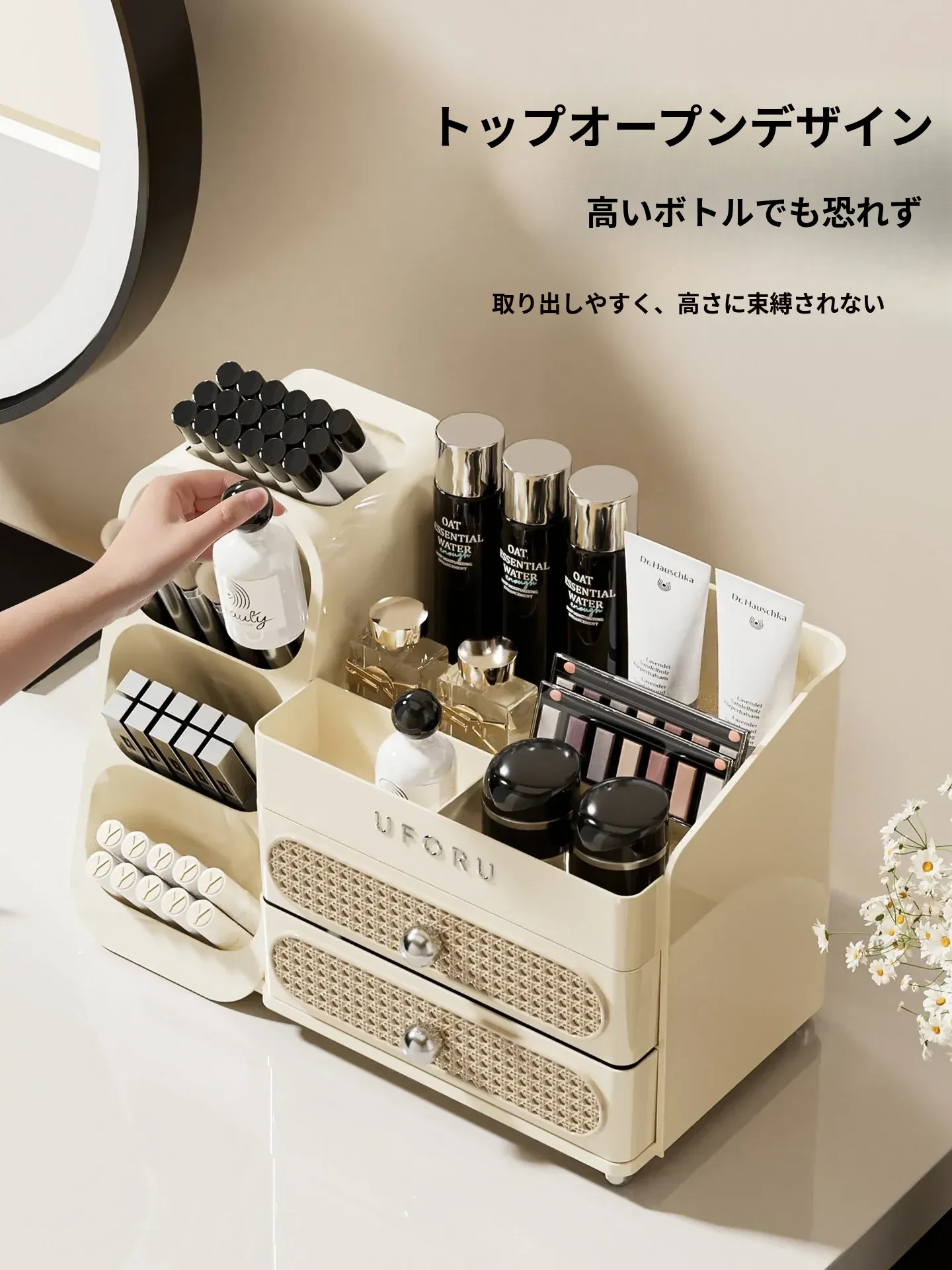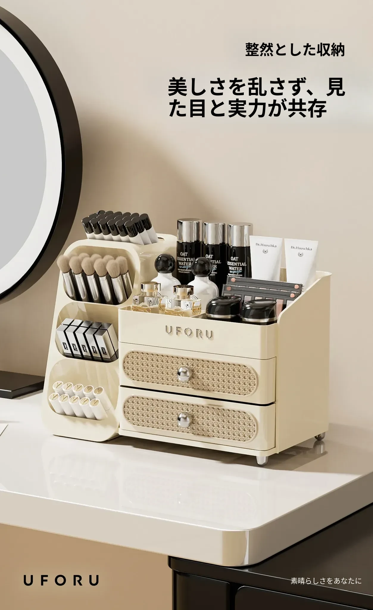 朋菲コスメ収納ボックス - デスクトップメイク台用、口紅・アイブロウペン・スキンケア製品をスッキリ整理!防塵設計で、おしゃれな空間を演出します。