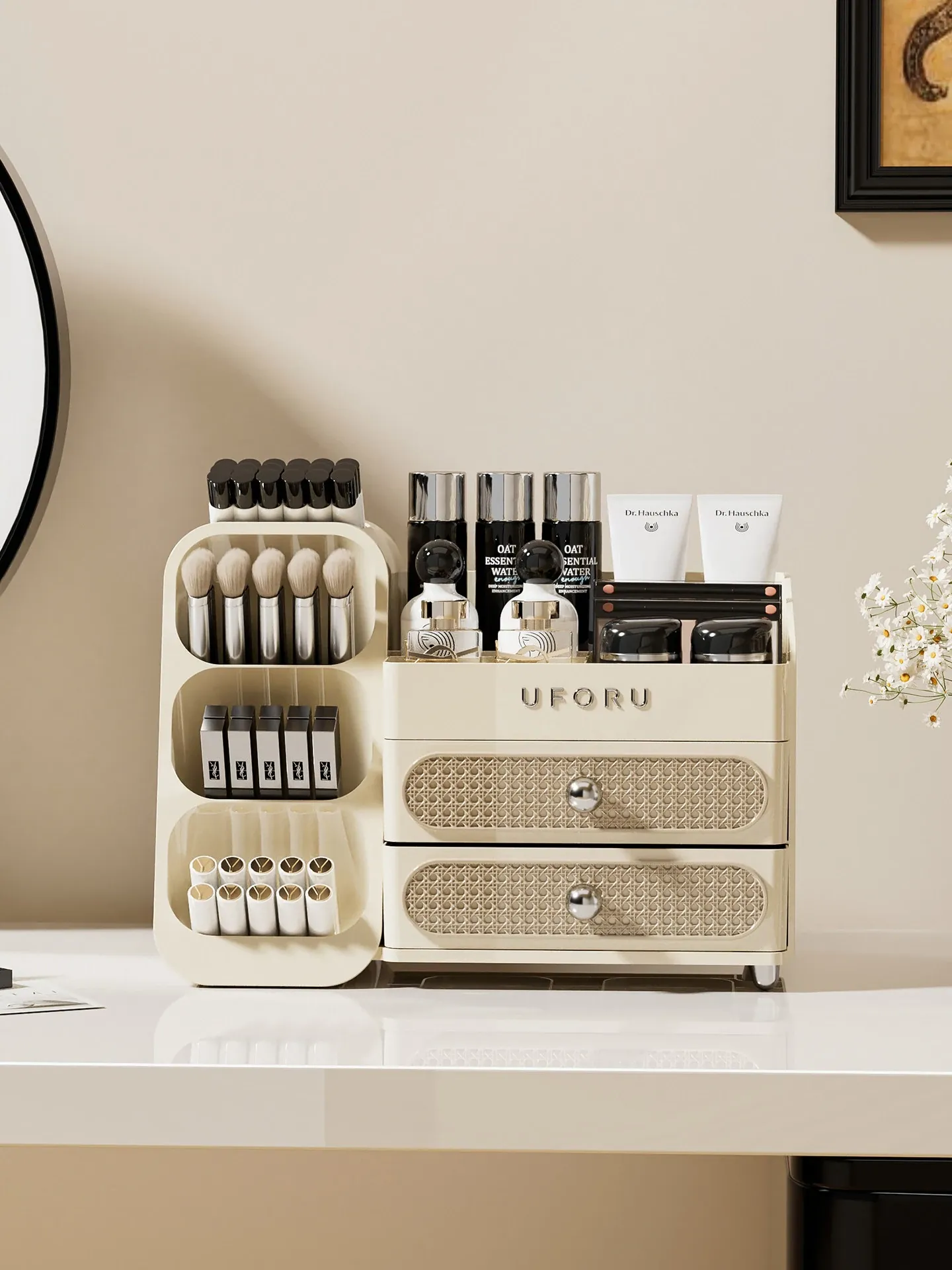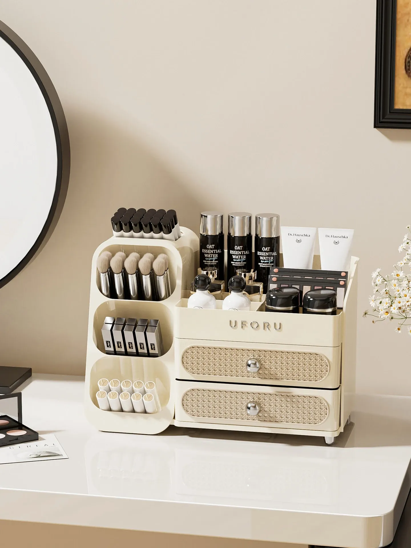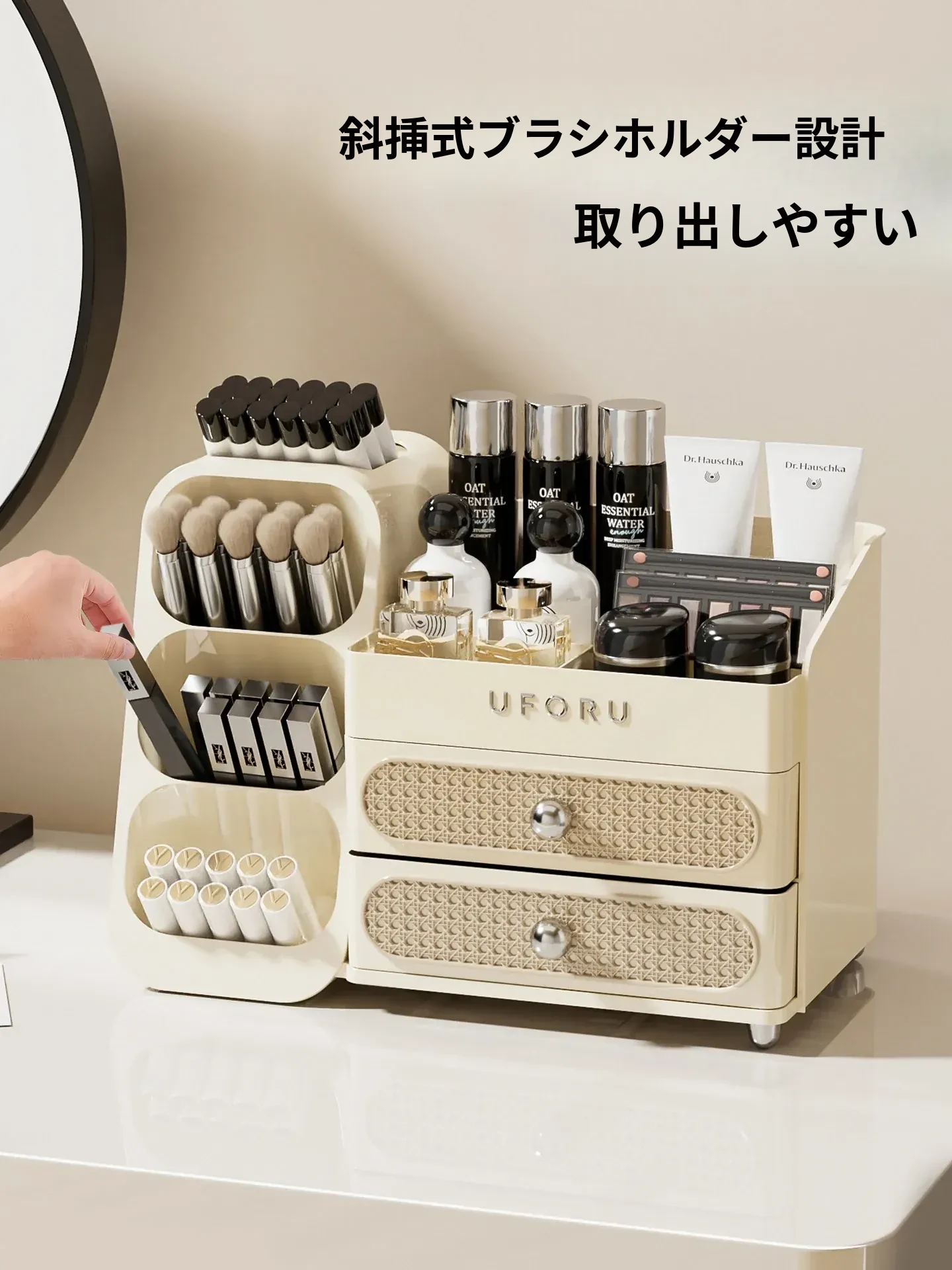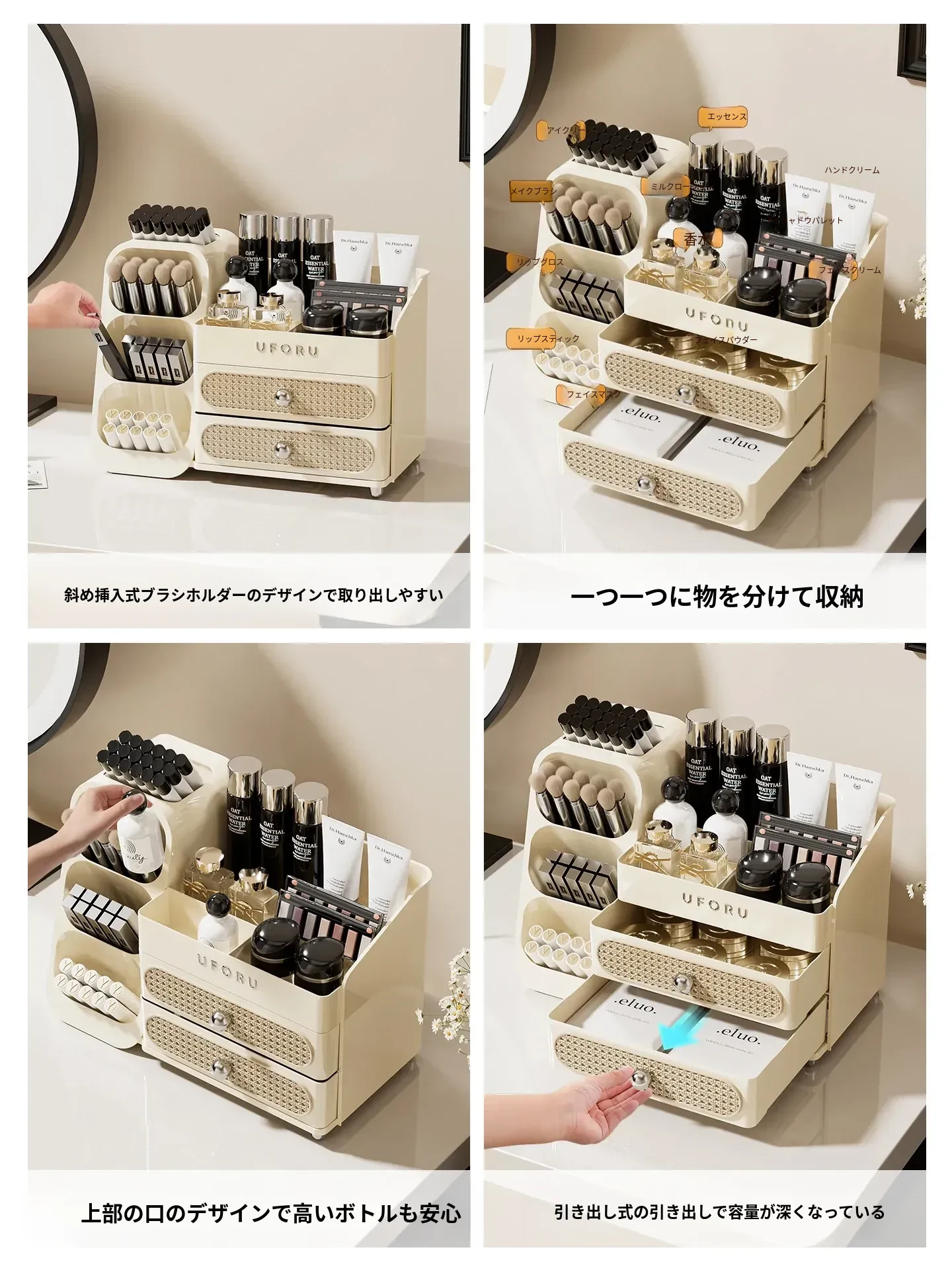 朋菲コスメ収納ボックス - デスクトップメイク台用、口紅・アイブロウペン・スキンケア製品をスッキリ整理!防塵設計で、おしゃれな空間を演出します。