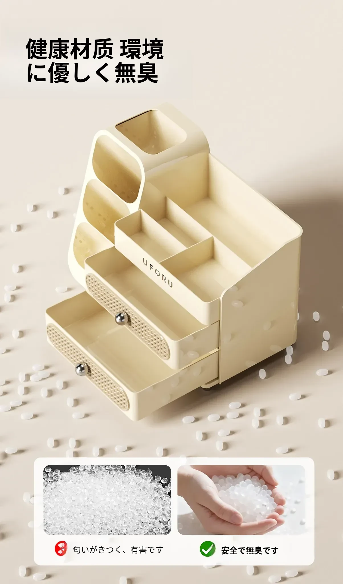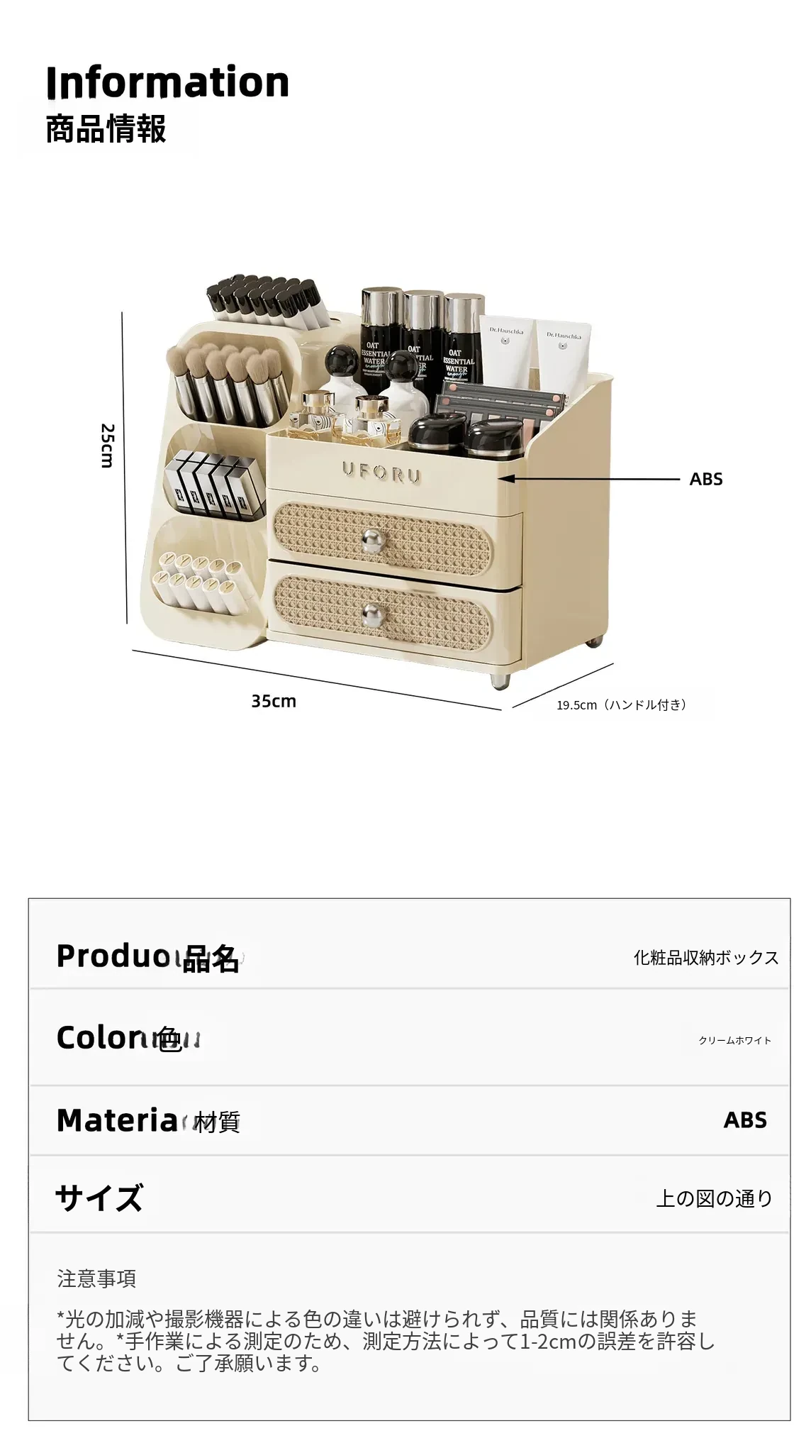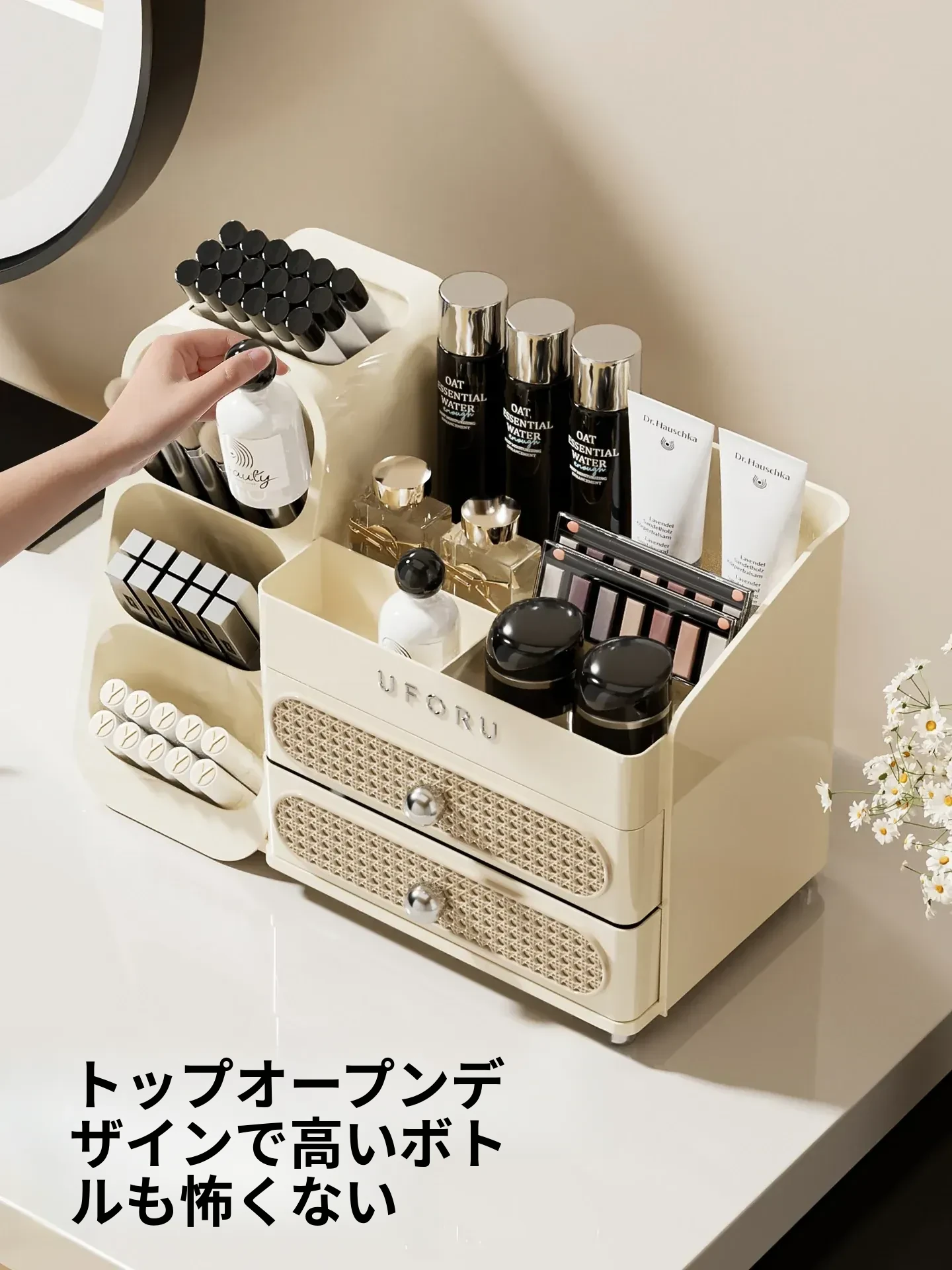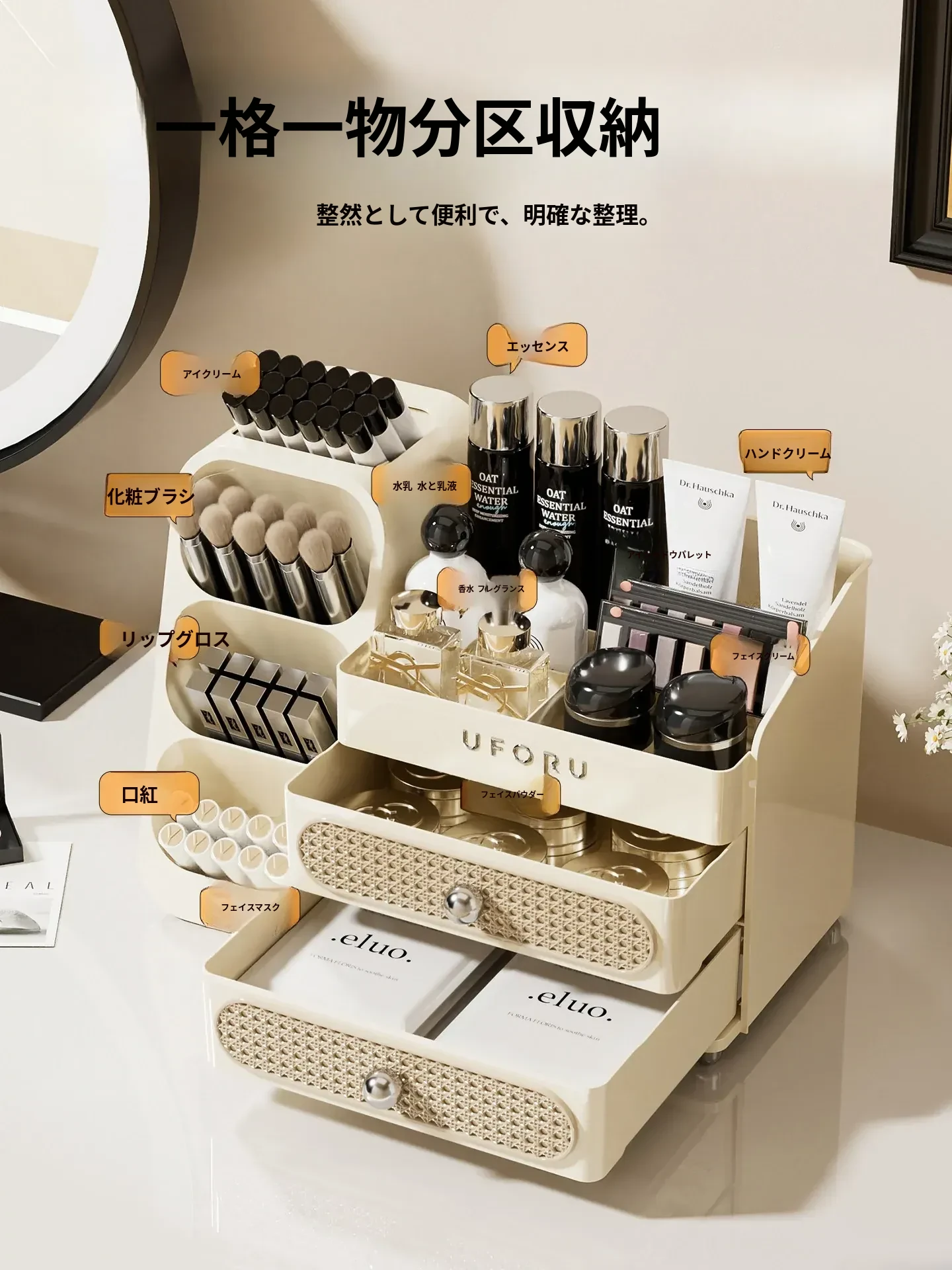 クリームホワイト⭐大容量仕切り付き引き出し式