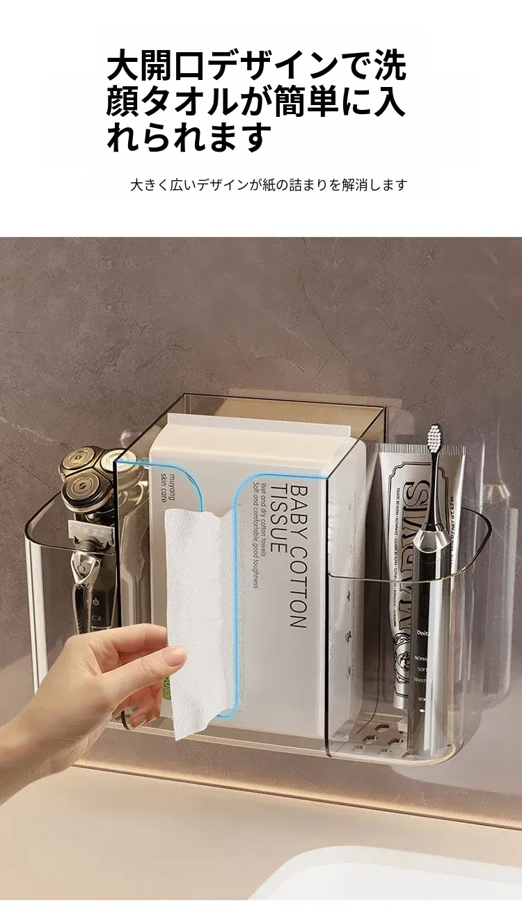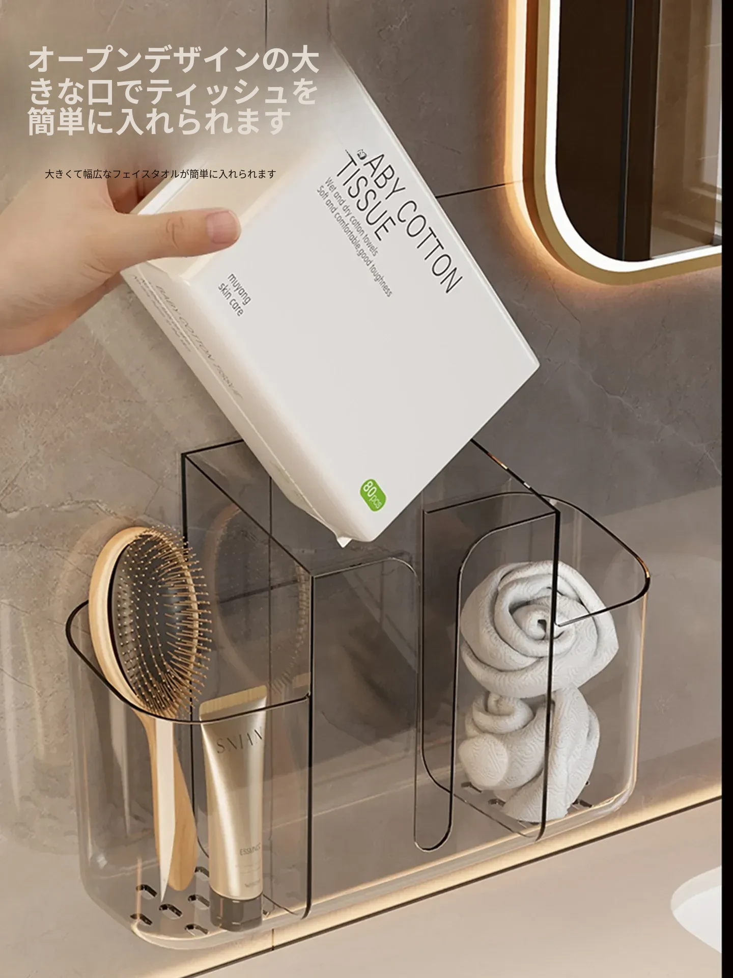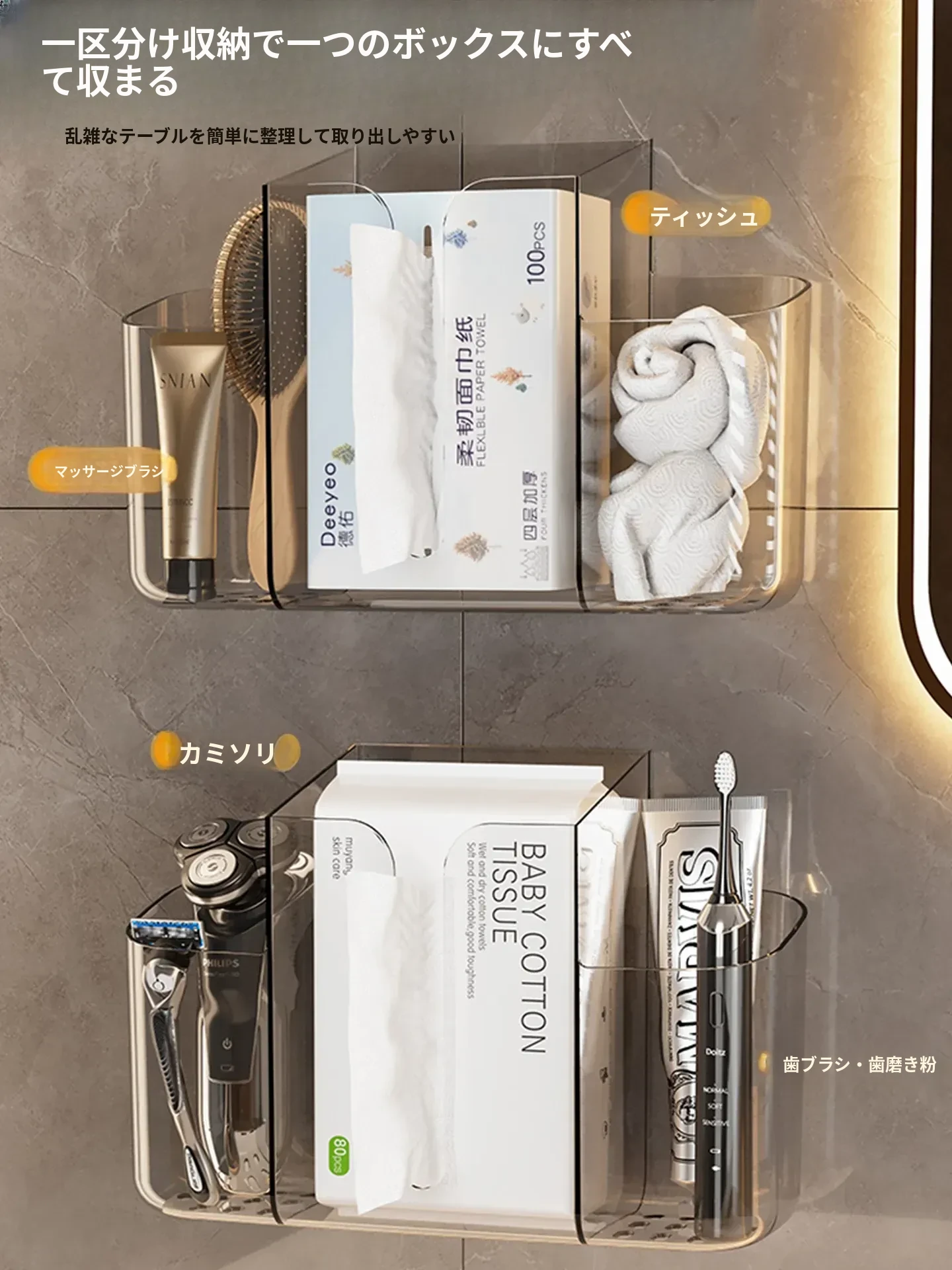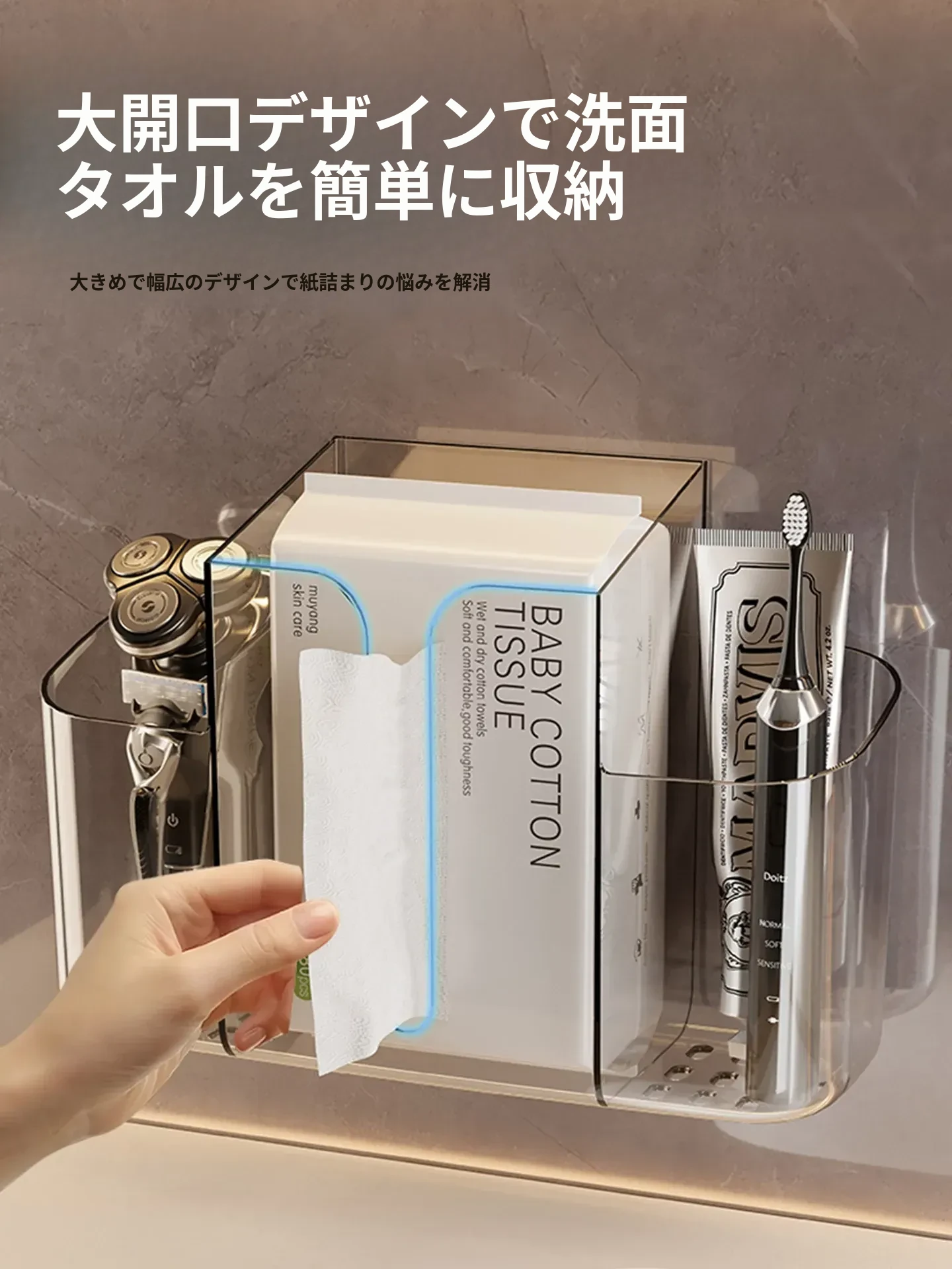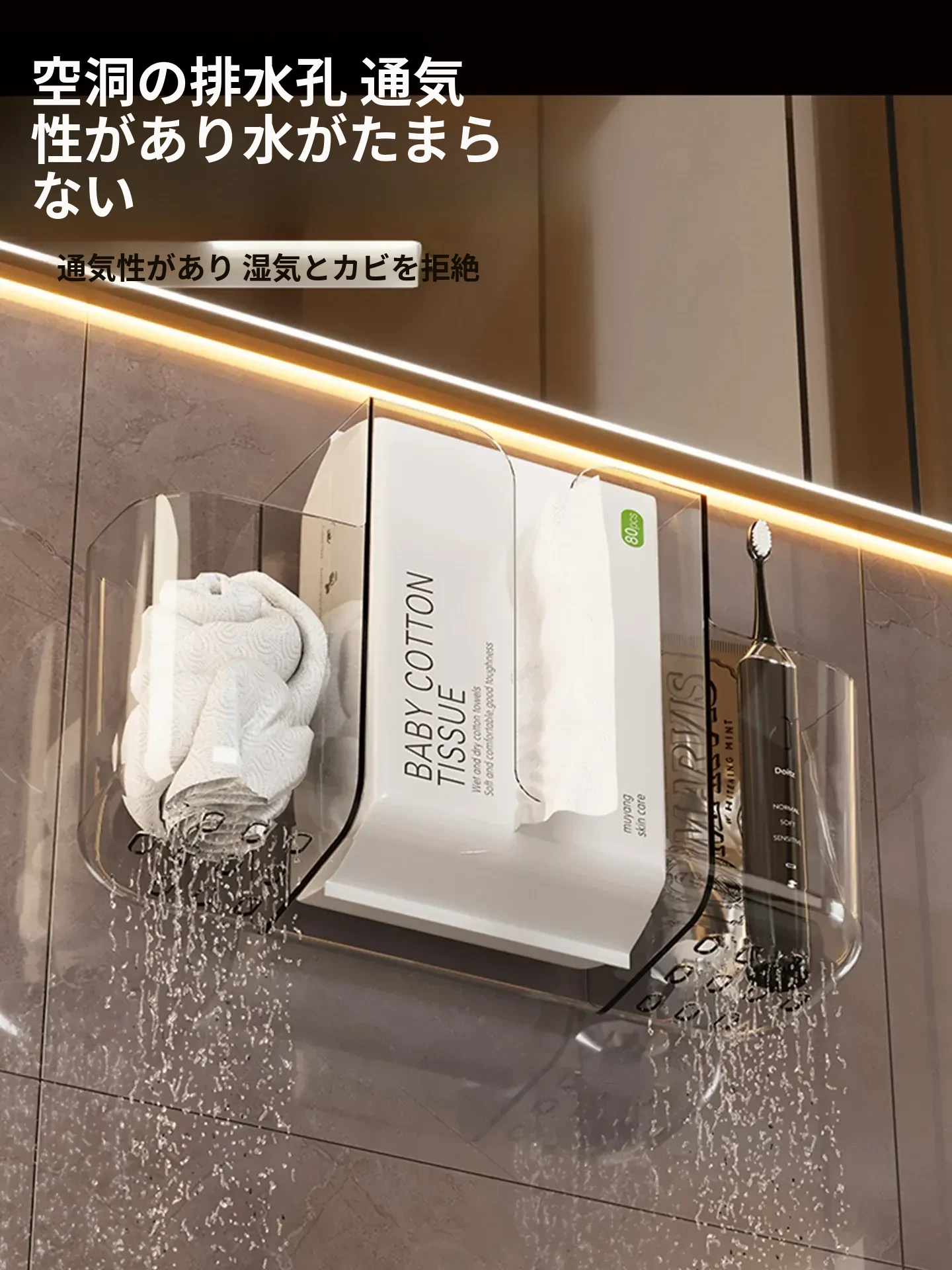 朋菲壁掛け収納ボックス - おしゃれなトイレットペーパーケース、歯ブラシホルダー付き!水切り機能で清潔なバスルーム収納を実現。整理整頓が簡単に!