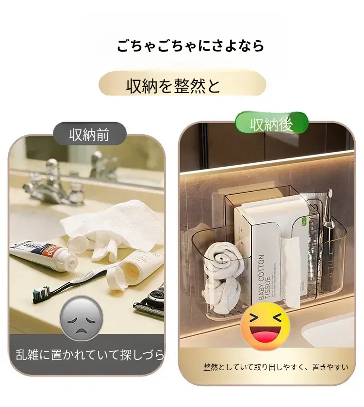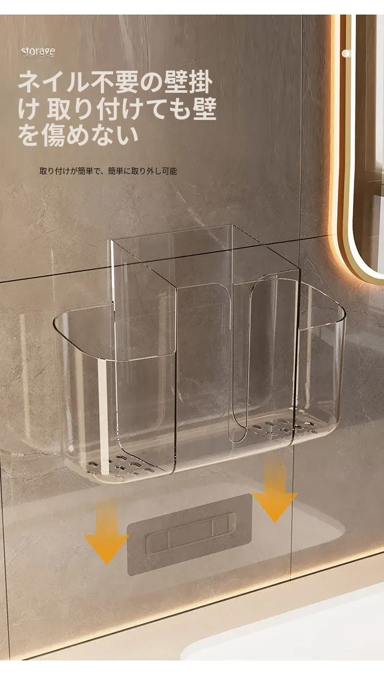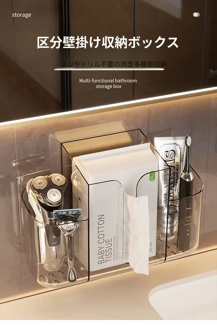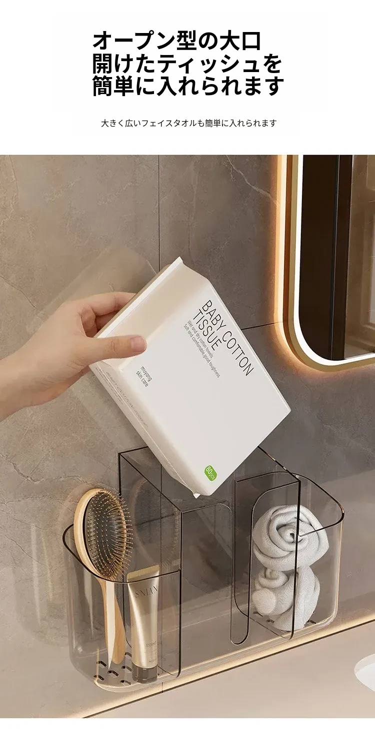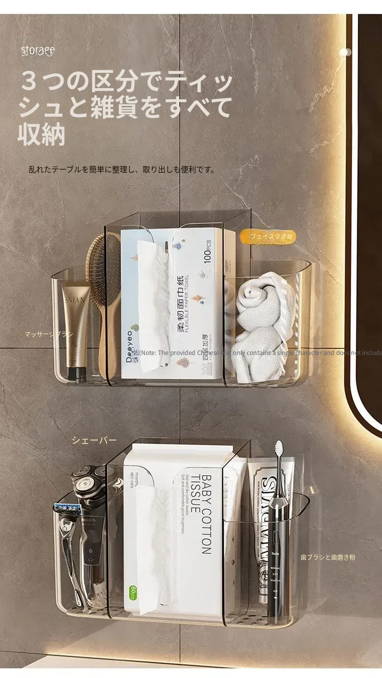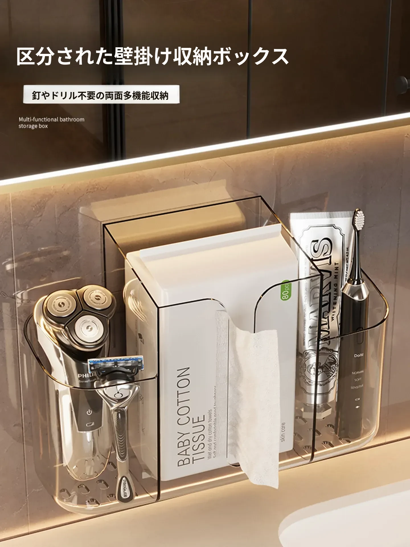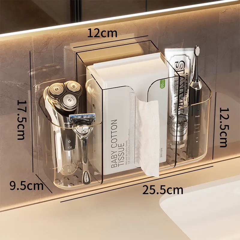 朋菲壁掛け収納ボックス - おしゃれなトイレットペーパーケース、歯ブラシホルダー付き!水切り機能で清潔なバスルーム収納を実現。整理整頓が簡単に!