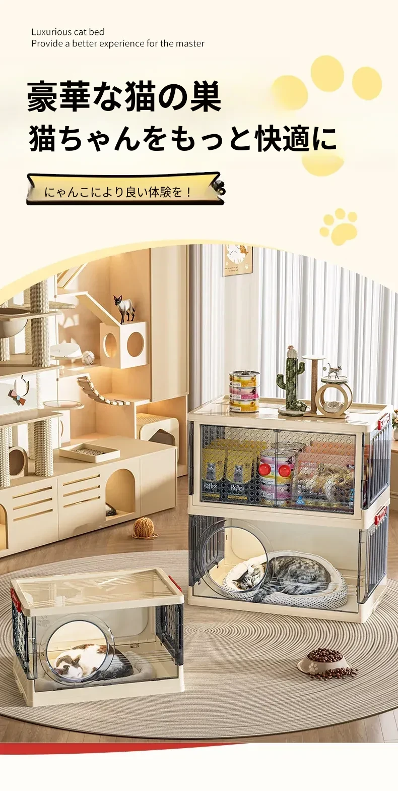 朋菲ペットキャットハウス 四季対応!創造的な一体型デザインでおもちゃやおやつをたっぷり収納!折りたたみ可能で省スペース!快適なおうちで愛猫を大満足させるアイテム!