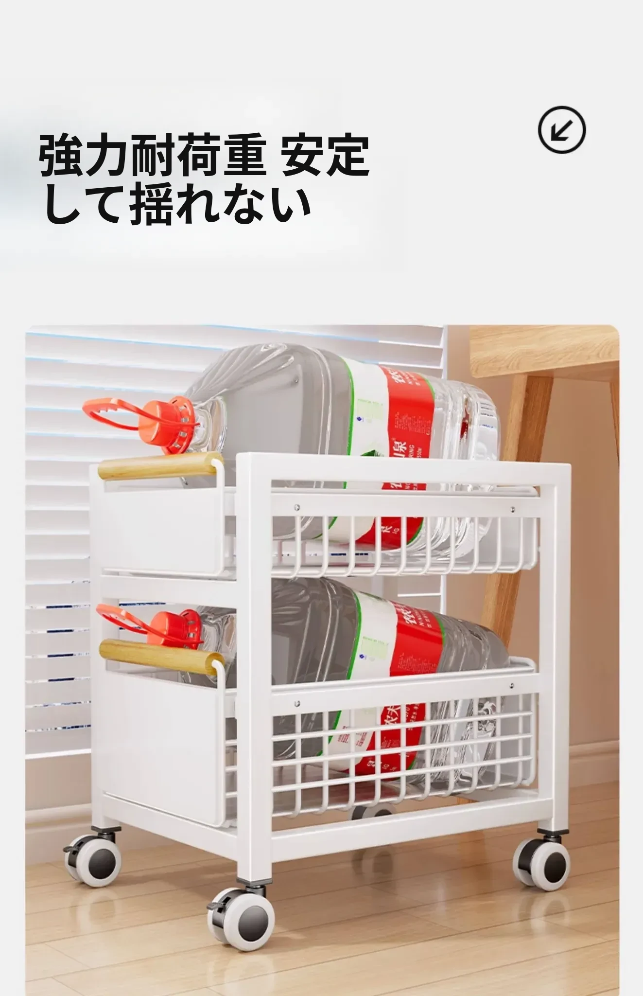 【特大型非設置】クリームホワイト二重⭐太めで揺れない-キャスター付き