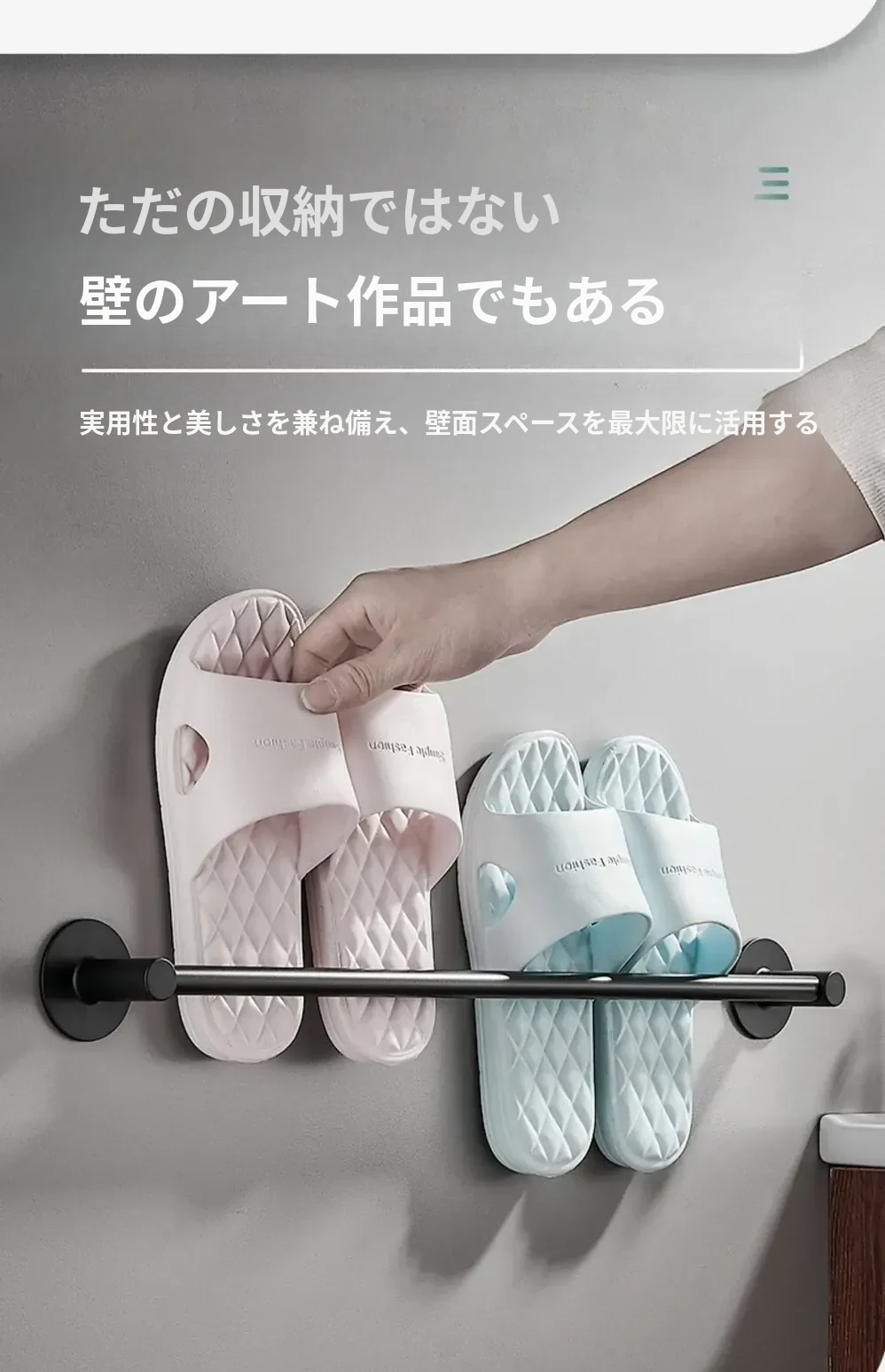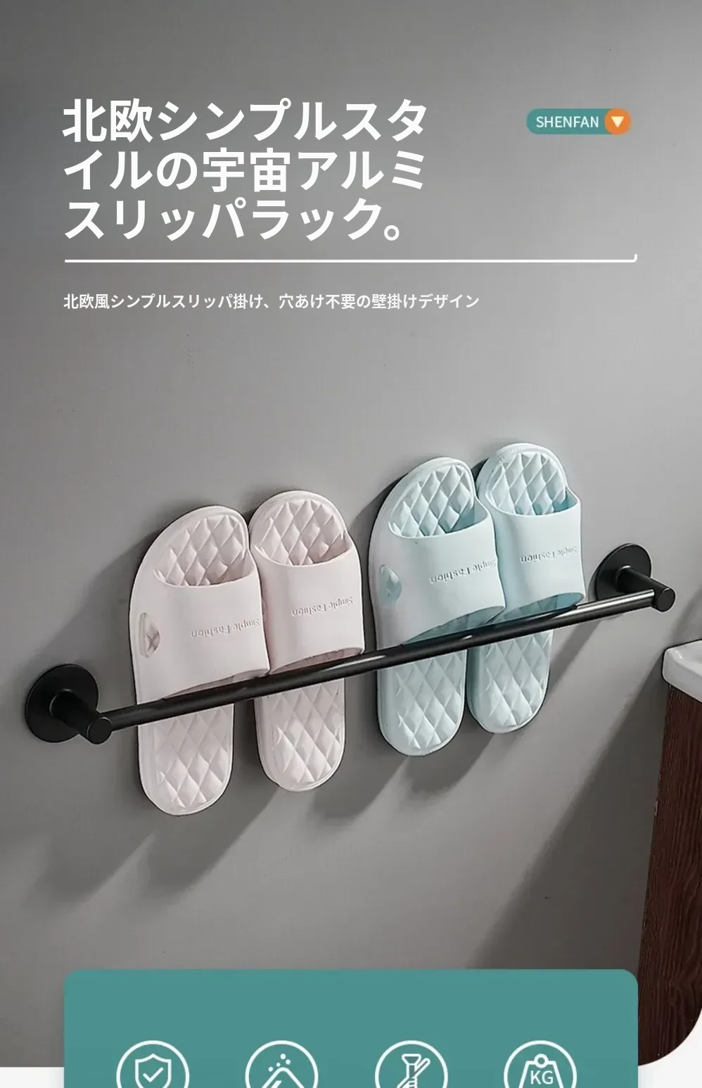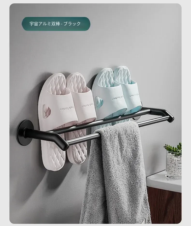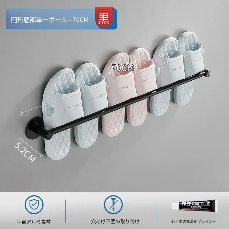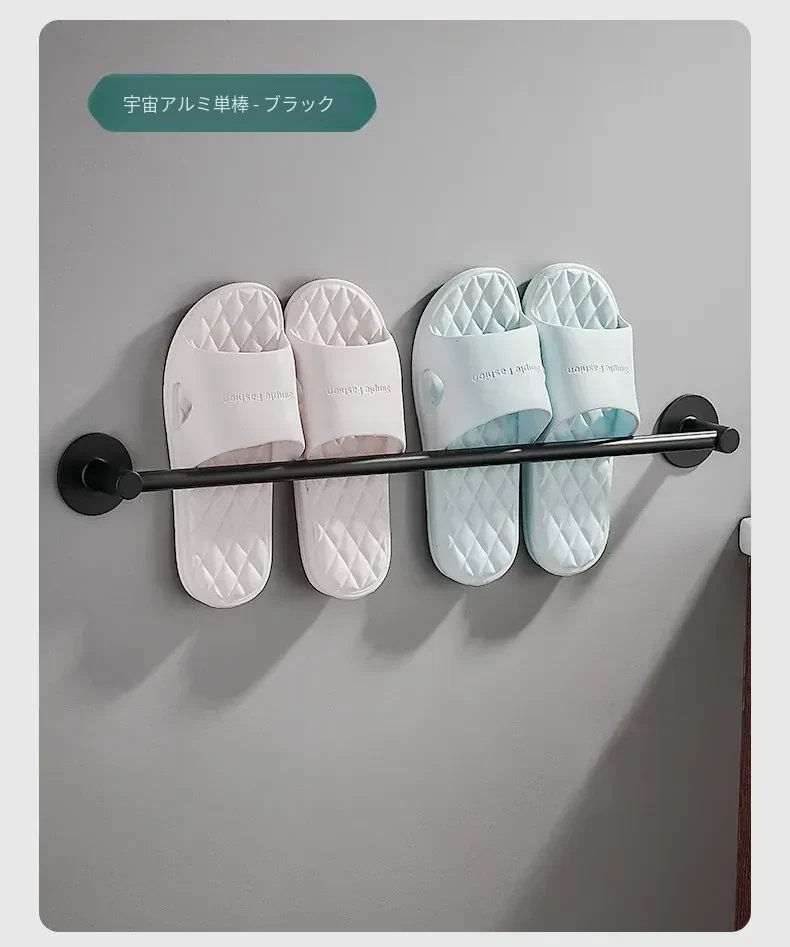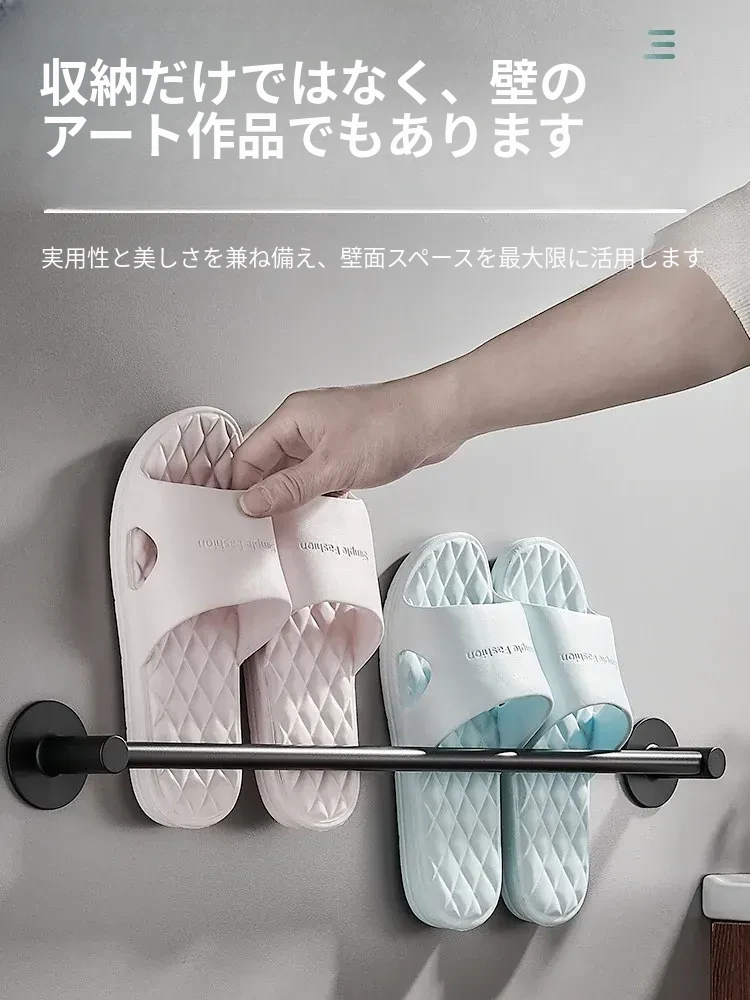 バスルームスリッパ水切りラック - 穴あけ不要のスリッパホルダー!スペースアルミ製で、トイレやバスルームのドアの後ろにぴったりフィット。スリッパの収納が簡単にできる便利なアイテムです!