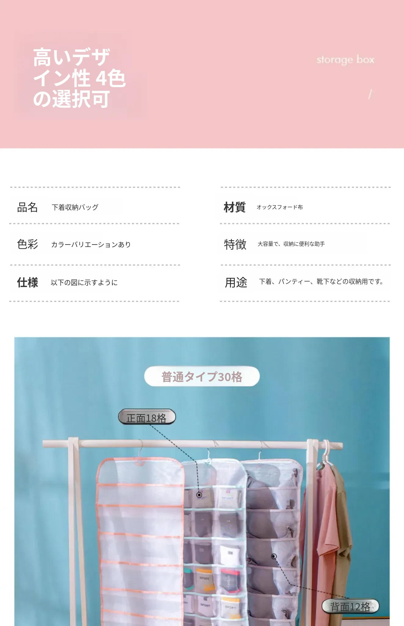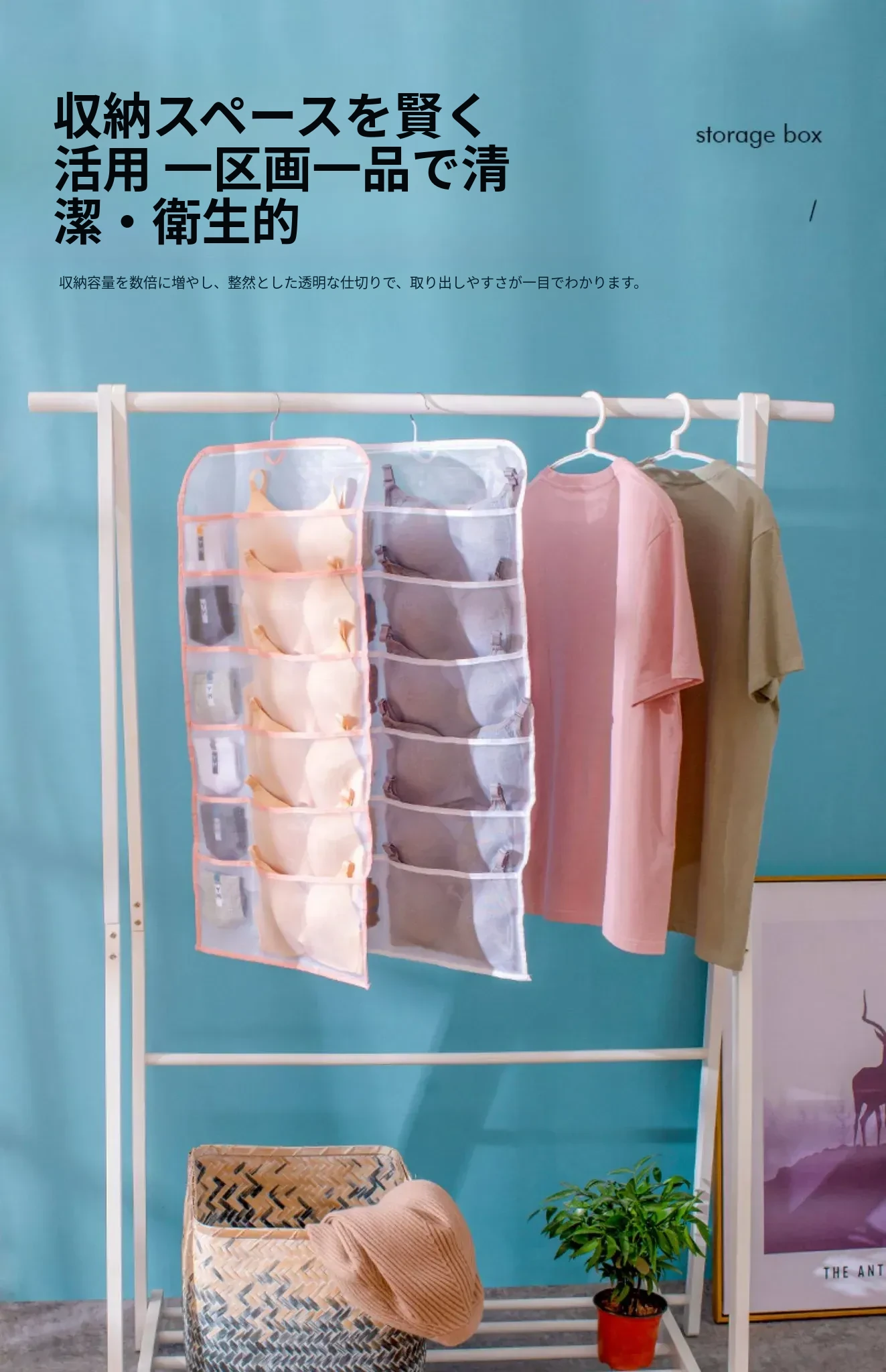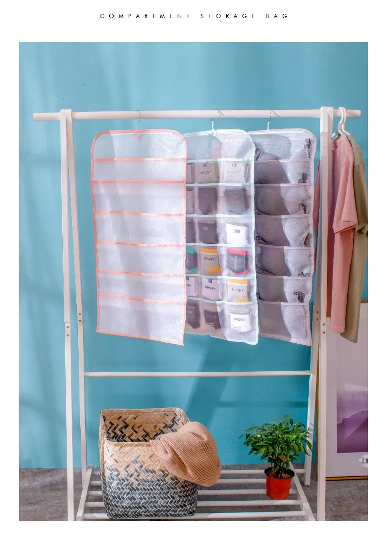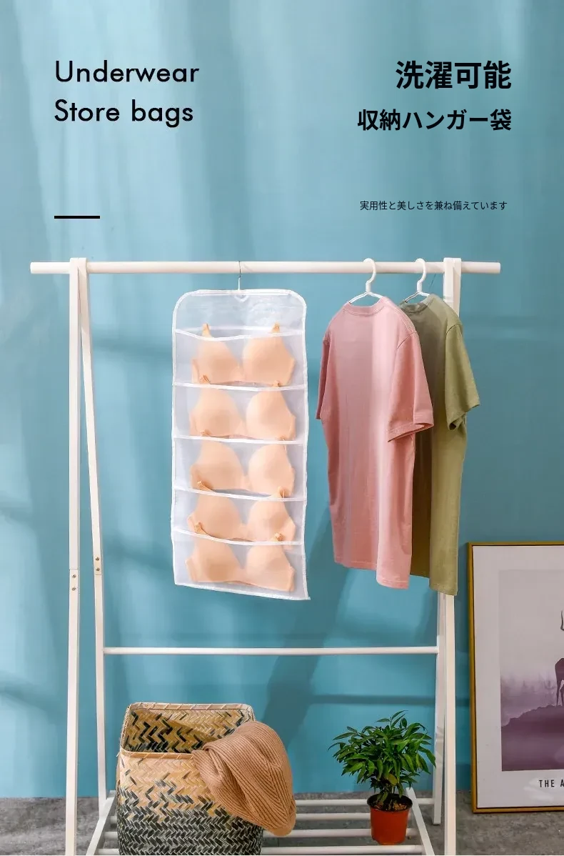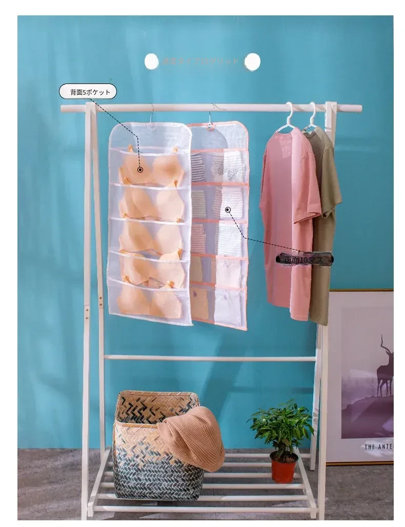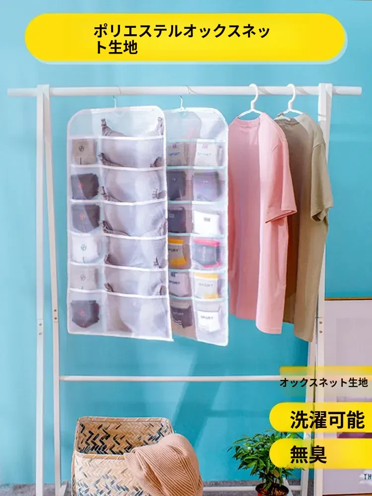 壁掛け収納バッグ!内衣・靴下・パンツをスッキリ整理!おしゃれな布製で、ドアの裏やベッドサイドにぴったり!寮やクローゼットに最適な便利グッズ!