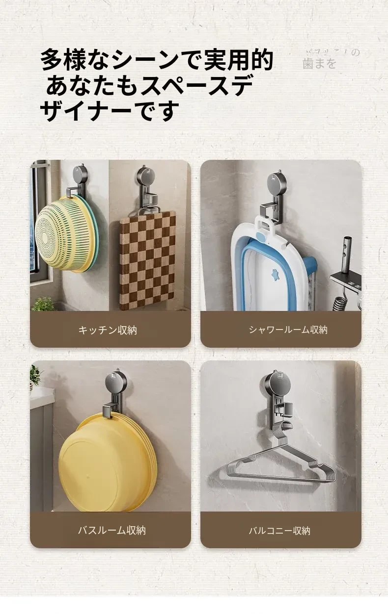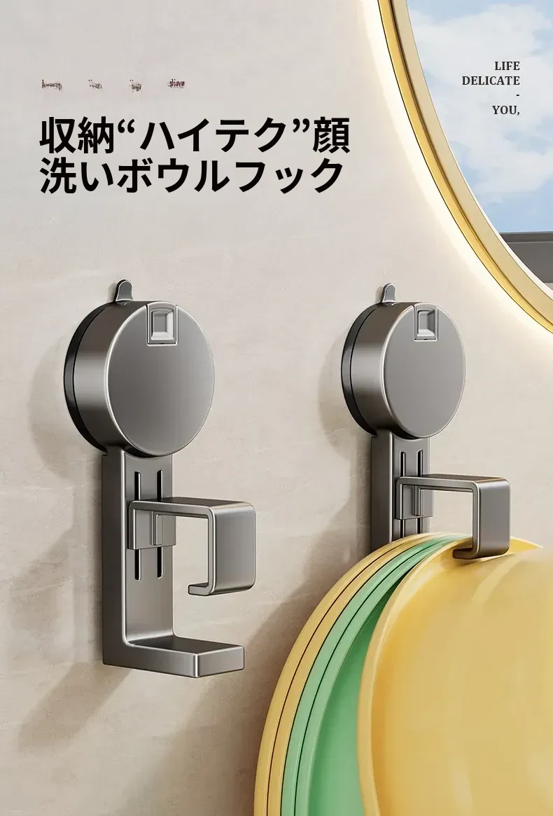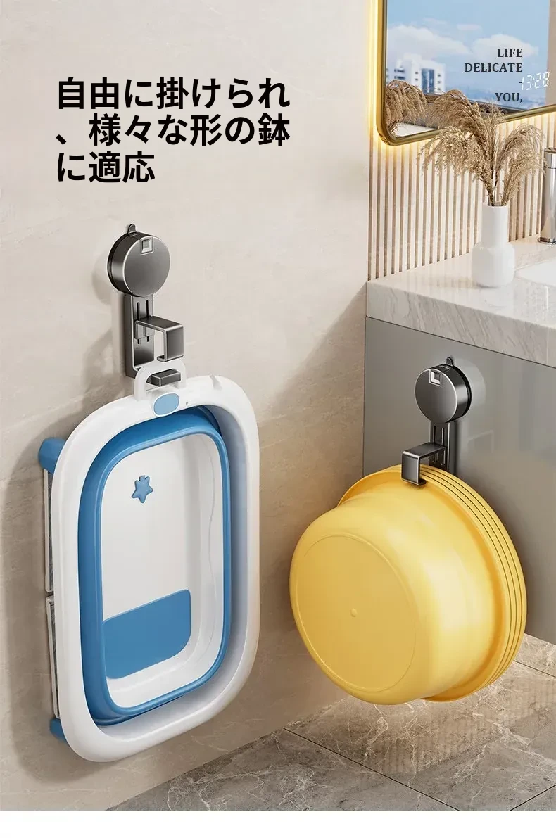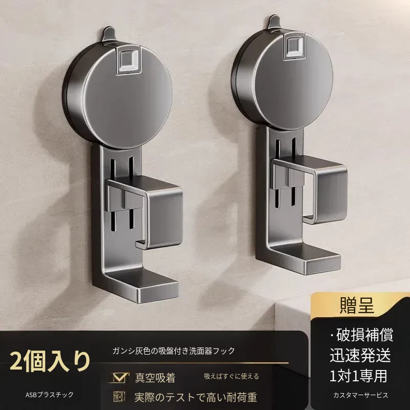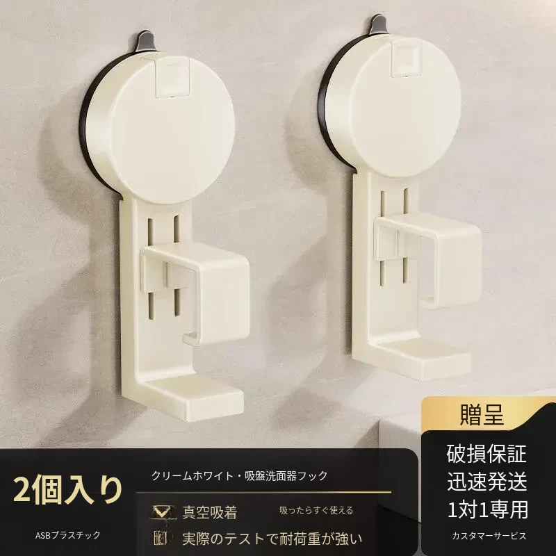吸盤式洗面器収納ラック - 穴なし壁掛けで簡単取り付け!赤ちゃんのお風呂や洗面用品をスッキリ整理。バスルームに最適な便利なフック付きで、清潔感あふれる空間を実現します。