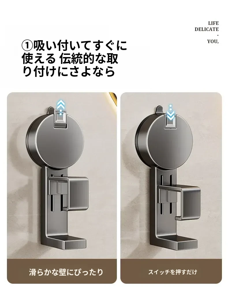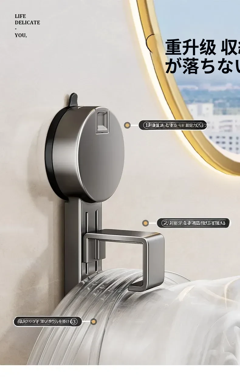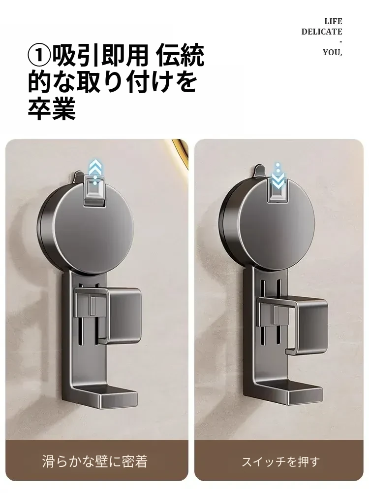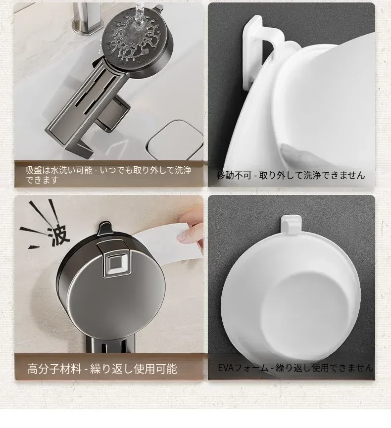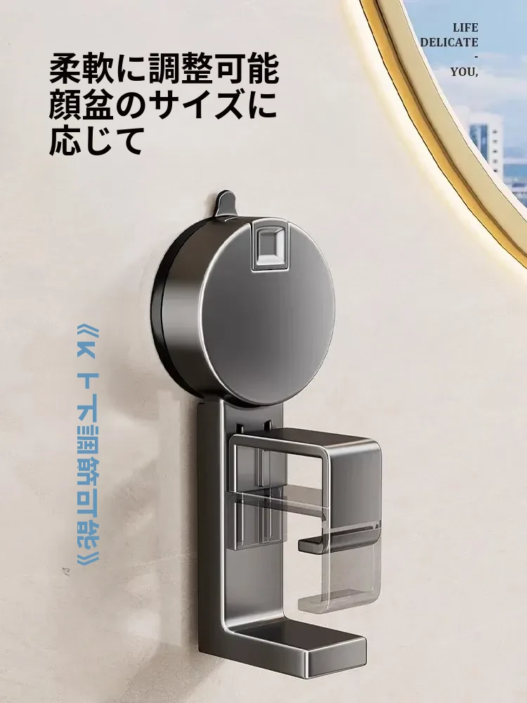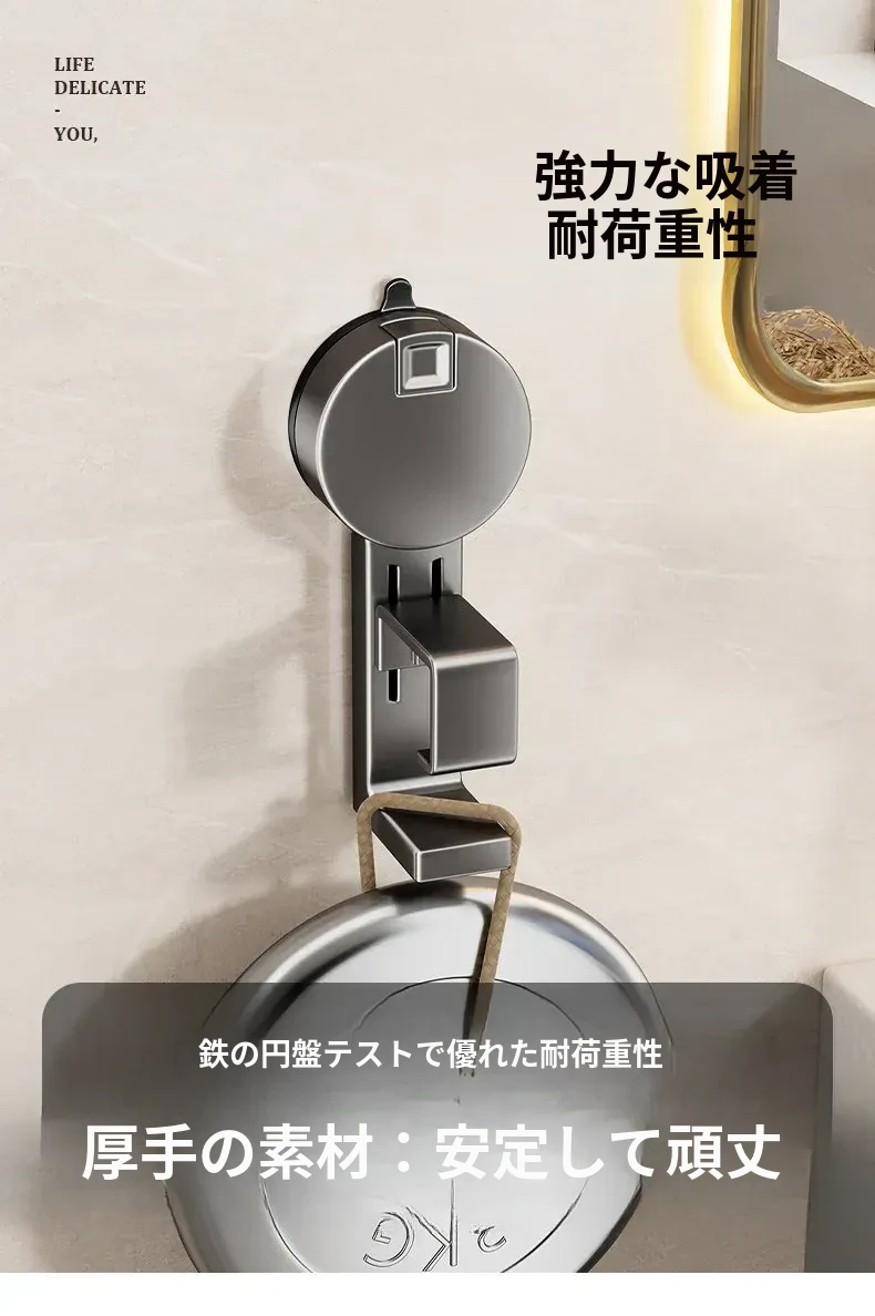 吸盤式洗面器収納ラック - 穴なし壁掛けで簡単取り付け!赤ちゃんのお風呂や洗面用品をスッキリ整理。バスルームに最適な便利なフック付きで、清潔感あふれる空間を実現します。