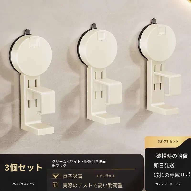 ⭐サクションカップ⭐洗面器スタンド3個セット-【クリームホワイト】