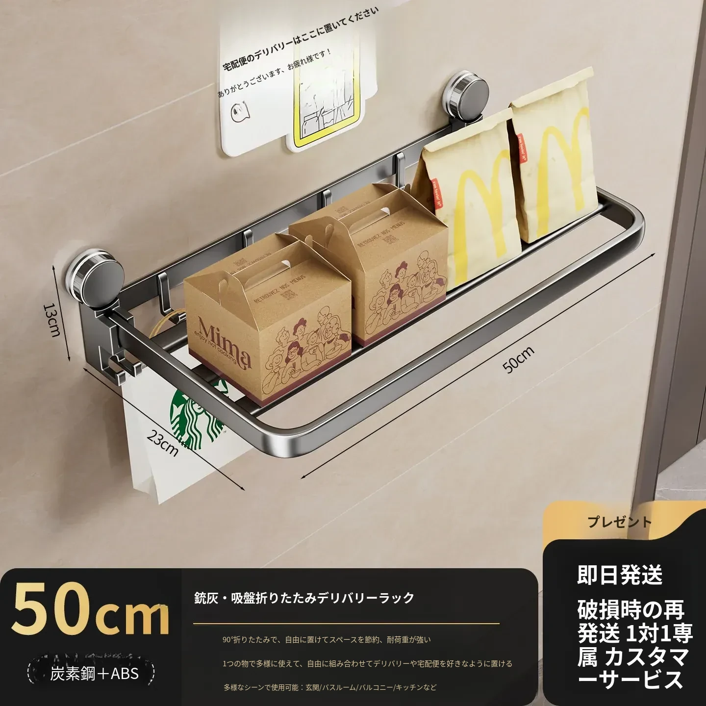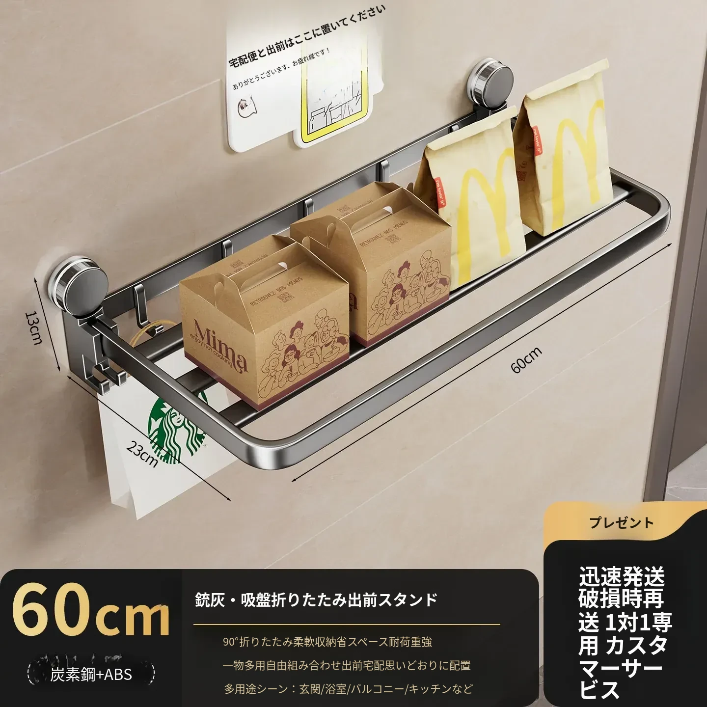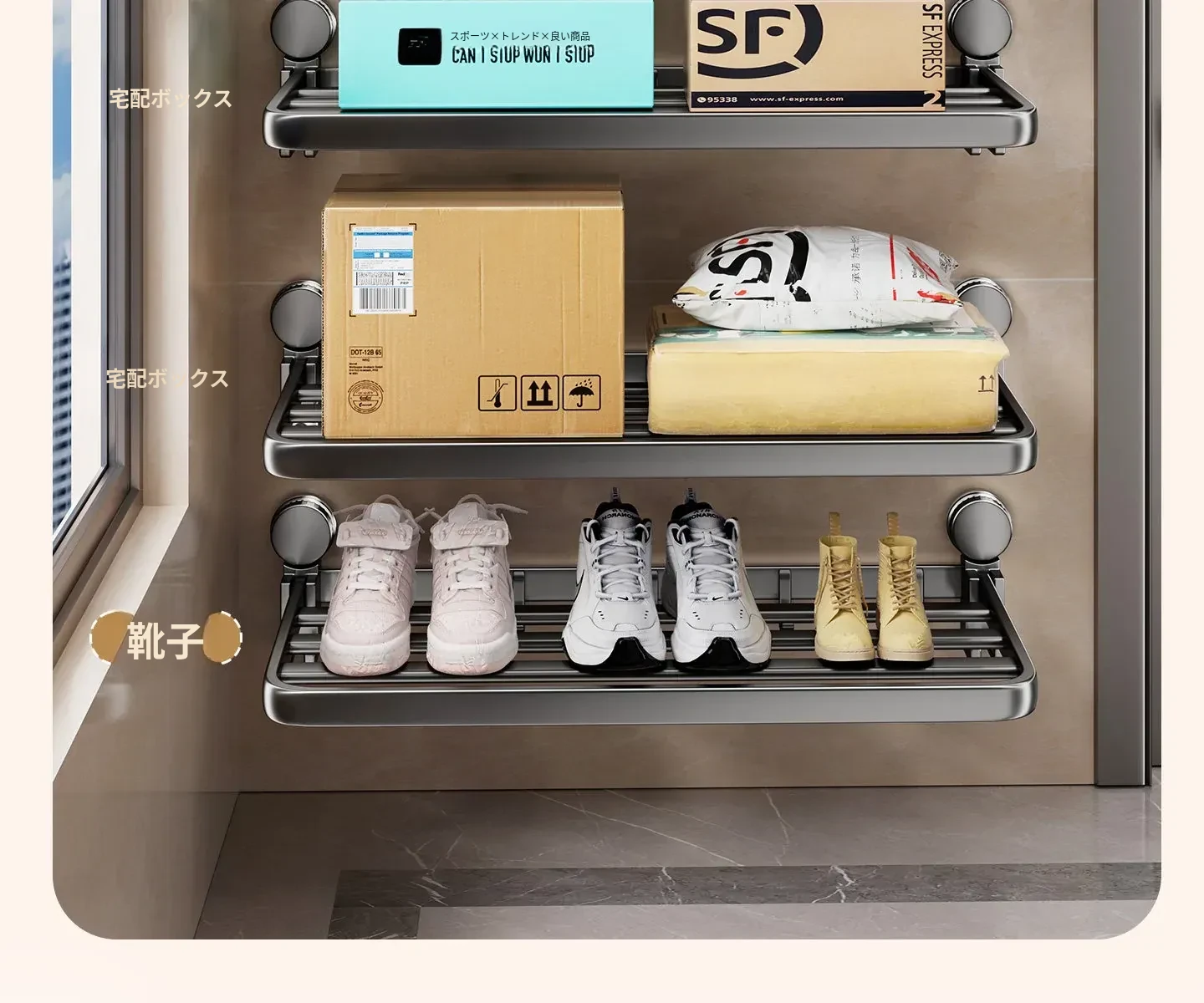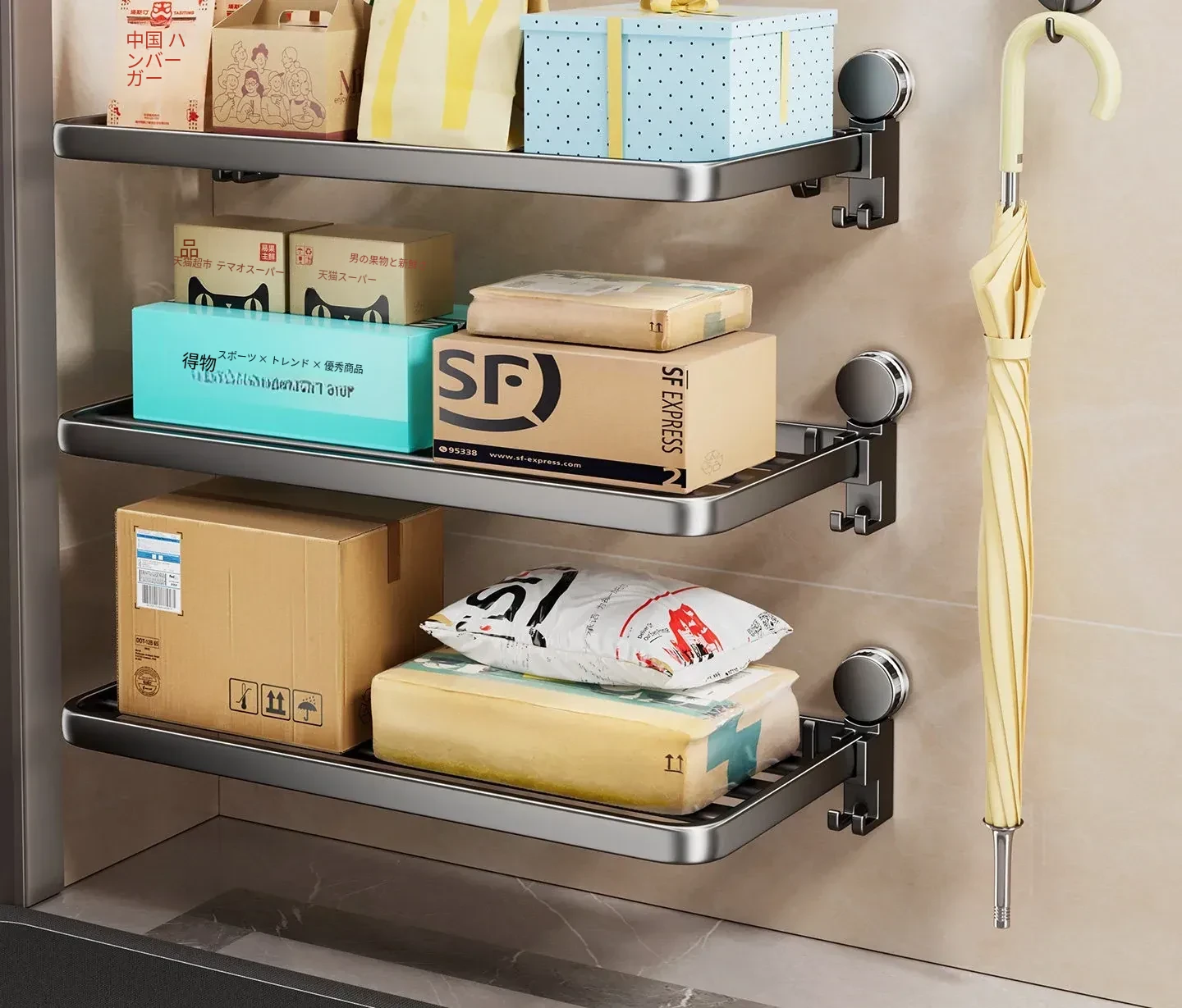 吸盤付きの宅配便置きラック|折りたたみ式で省スペース|玄関や壁に最適な多層収納棚|整理整頓で快適な暮らしを実現!
