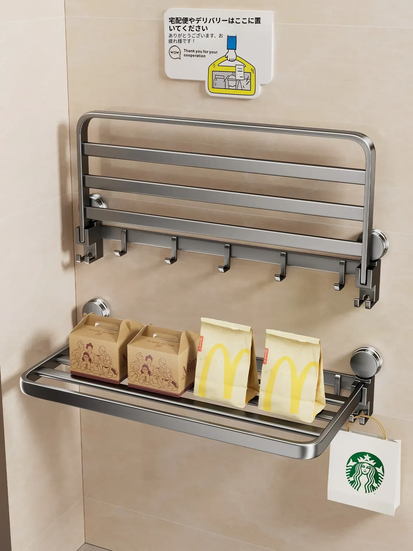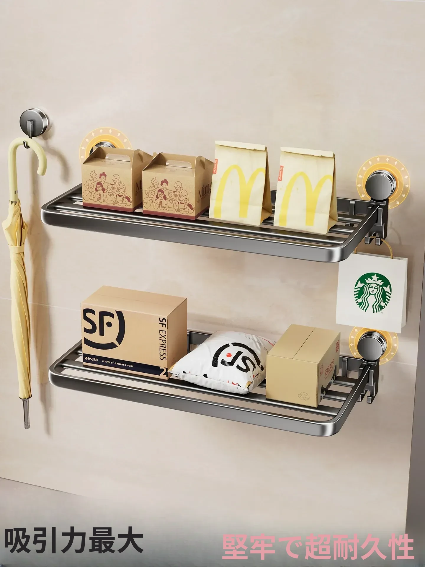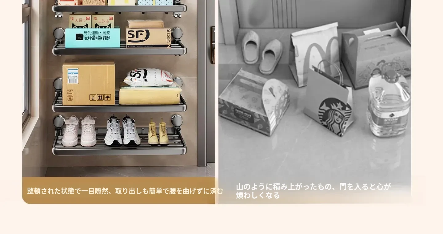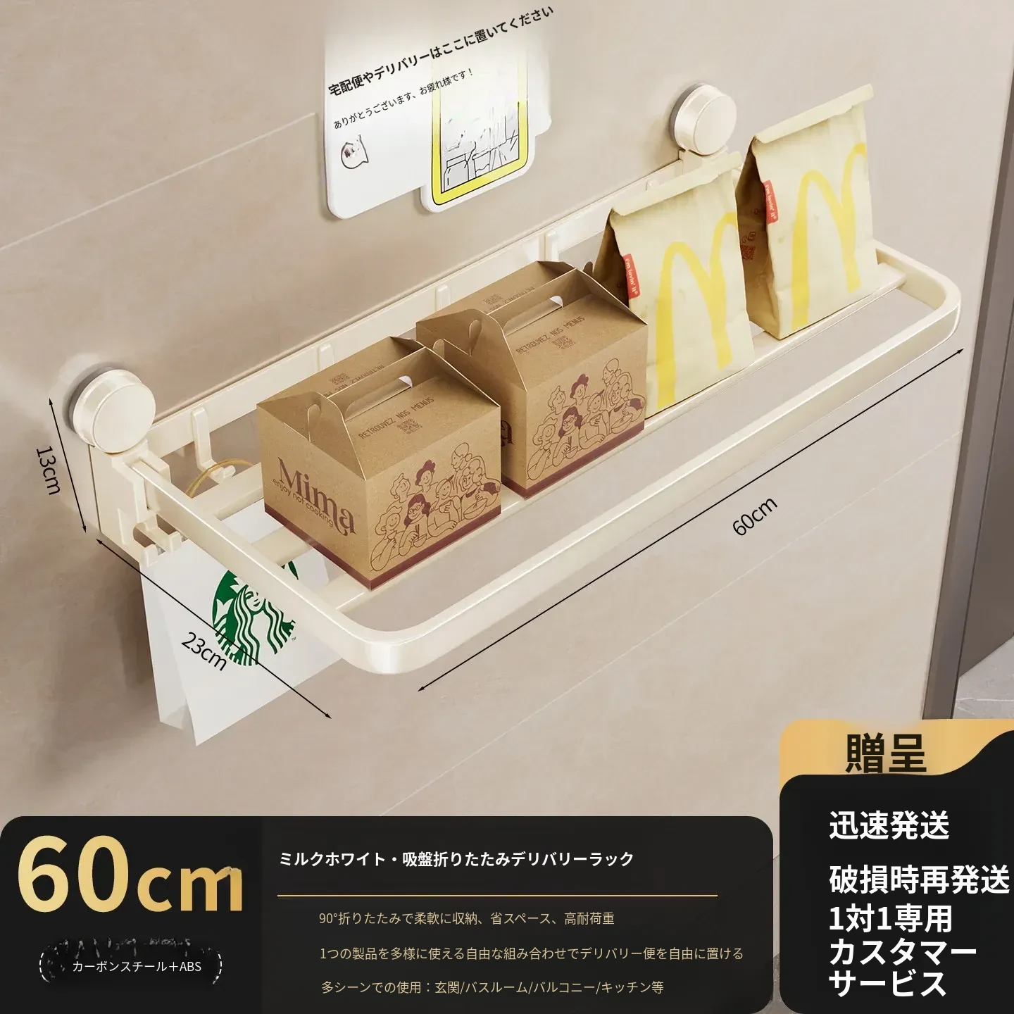 吸盤付きの宅配便置きラック|折りたたみ式で省スペース|玄関や壁に最適な多層収納棚|整理整頓で快適な暮らしを実現!