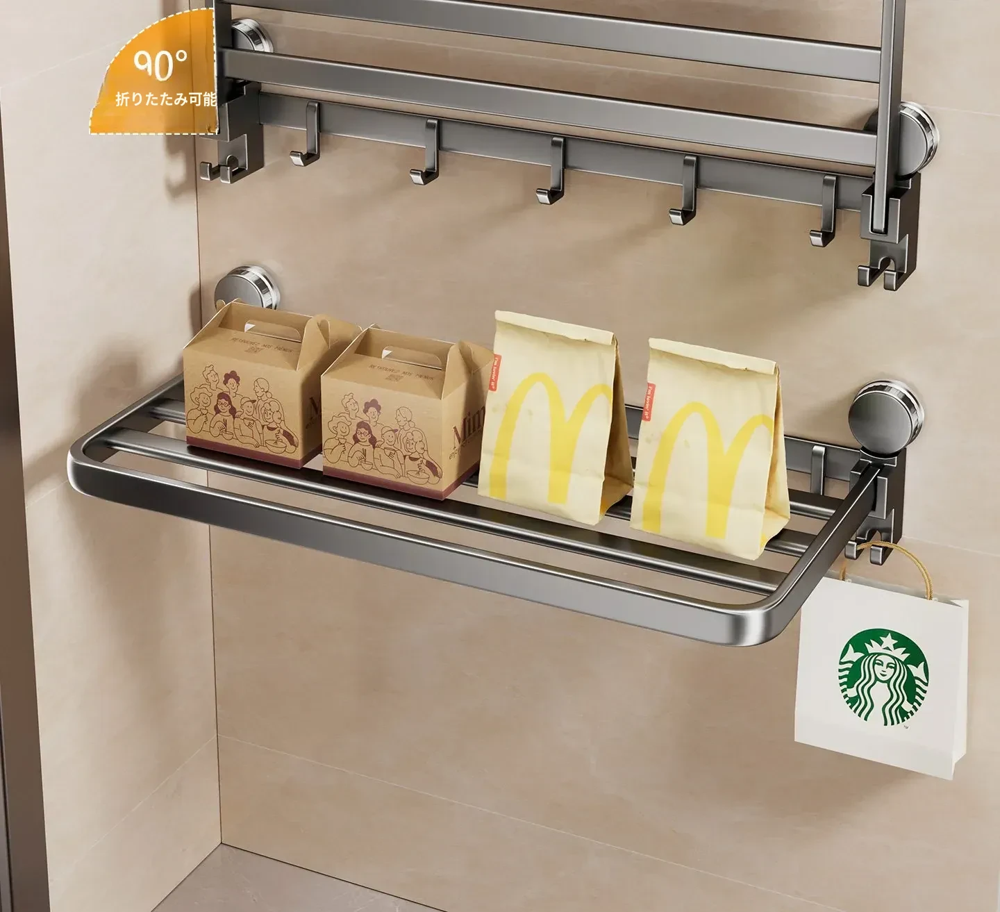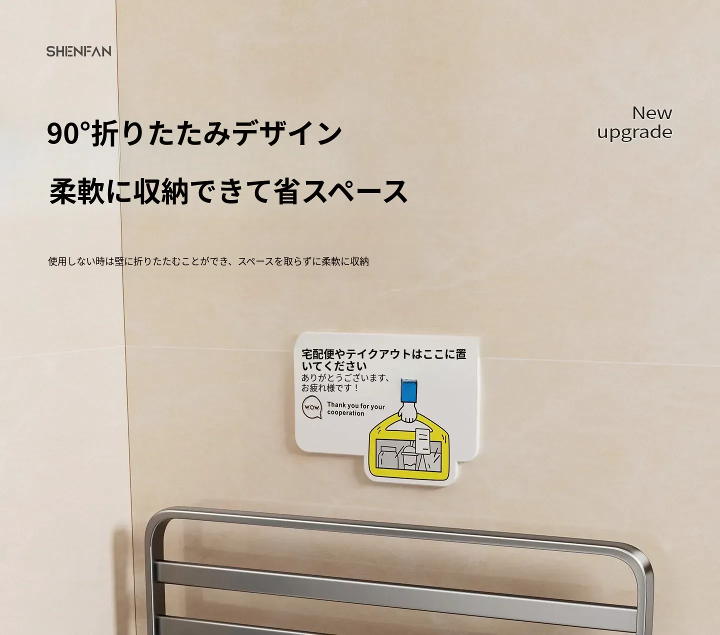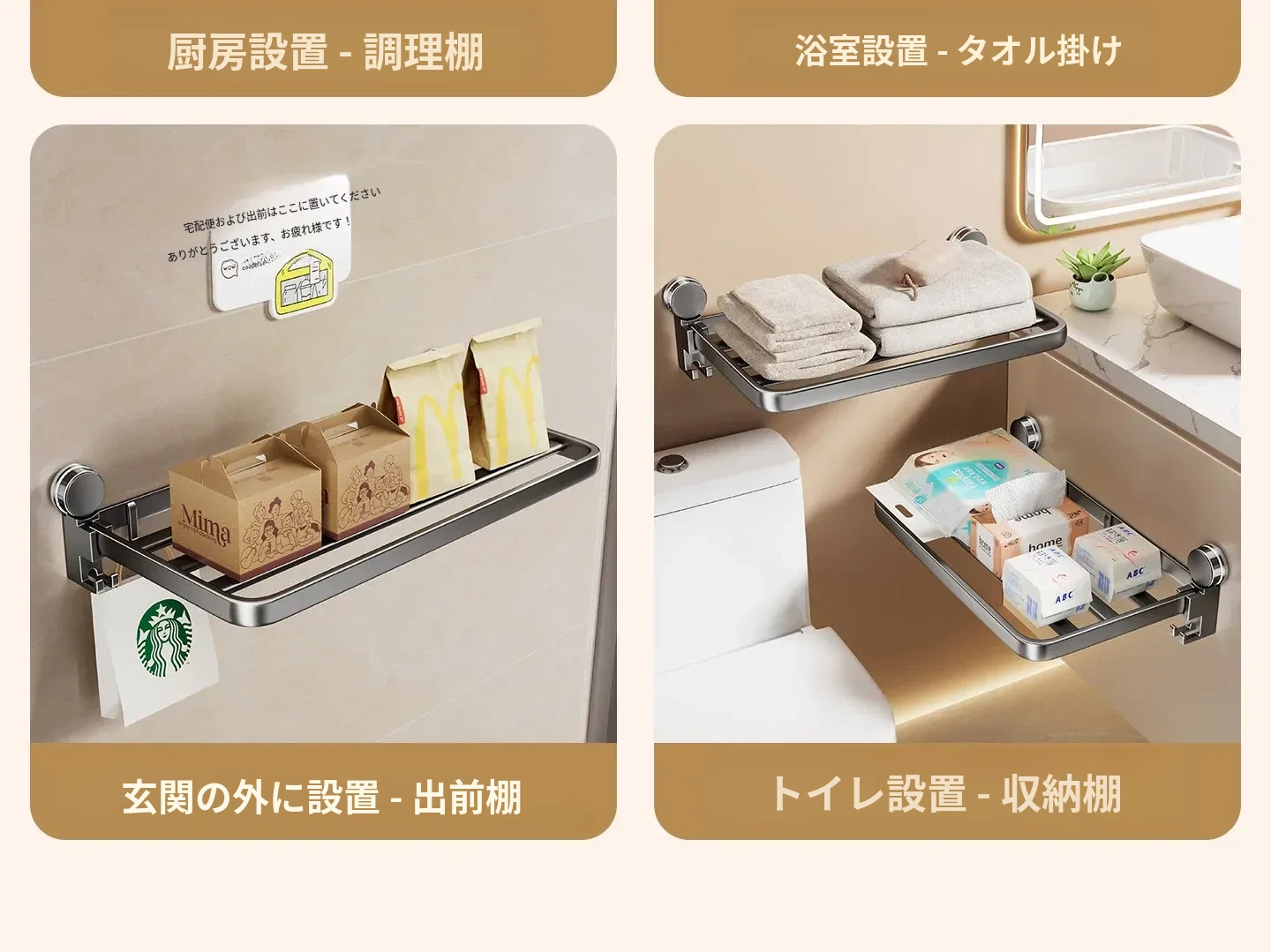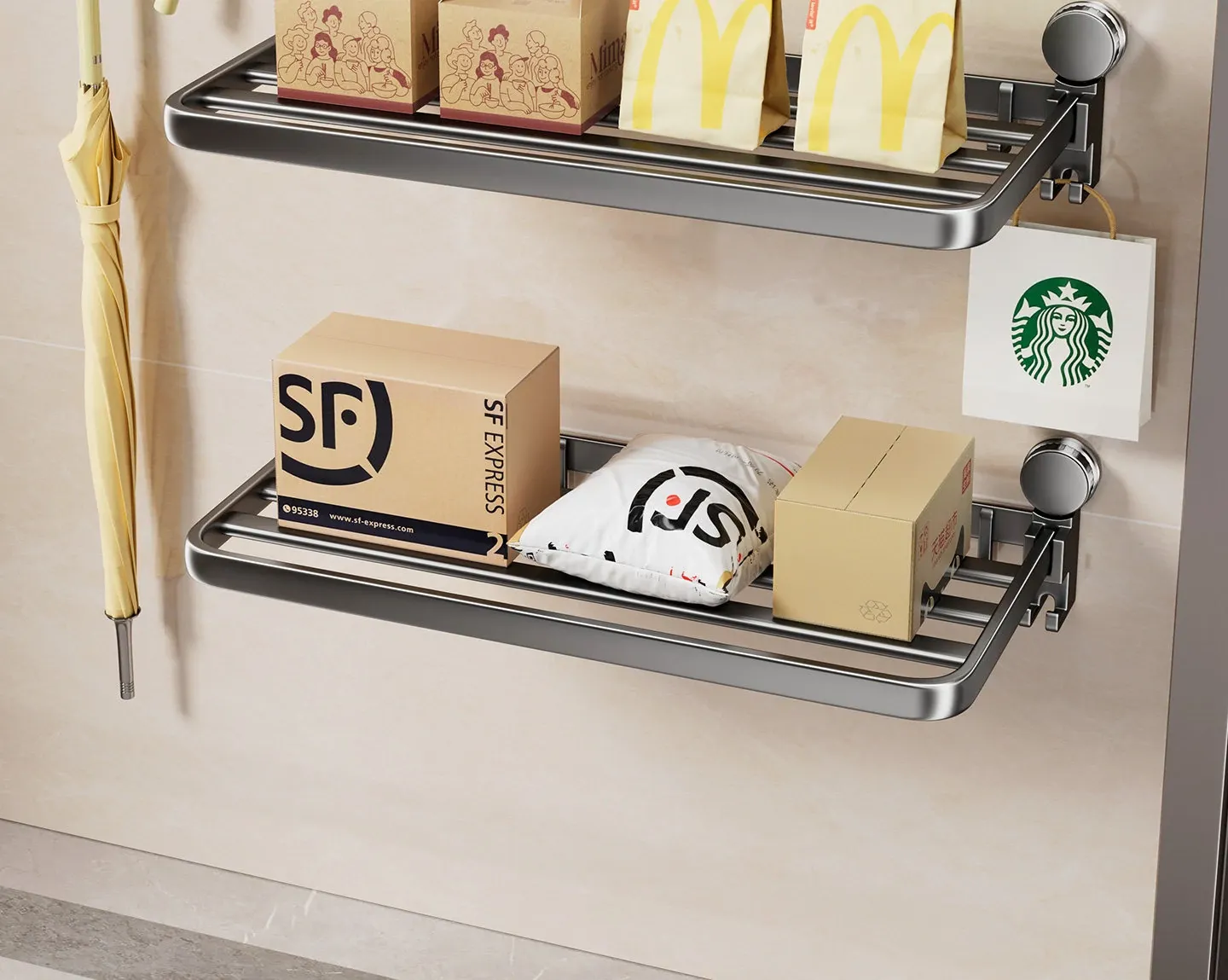 吸盤付きの宅配便置きラック|折りたたみ式で省スペース|玄関や壁に最適な多層収納棚|整理整頓で快適な暮らしを実現!