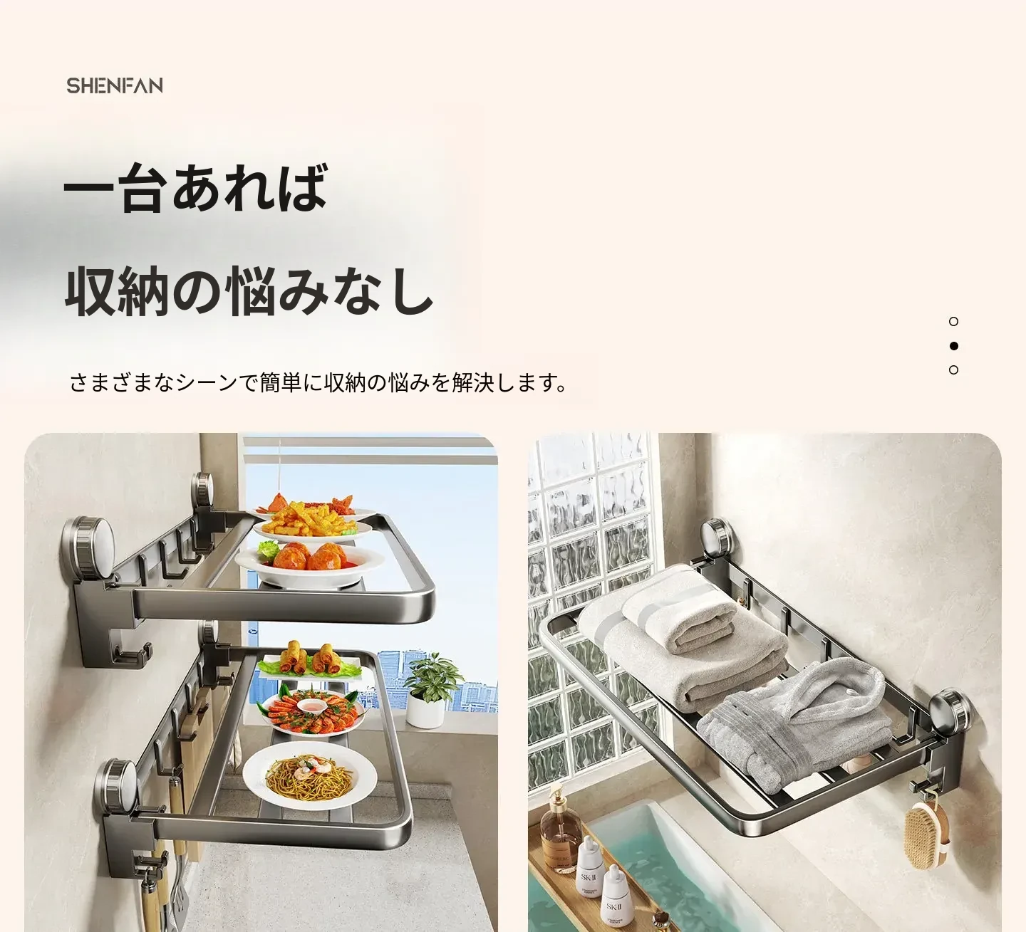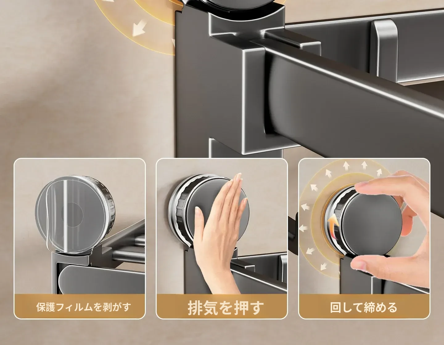 ミルクホワイト-強力吸盤折りたたみ収納ラック60cm⭐返品対応