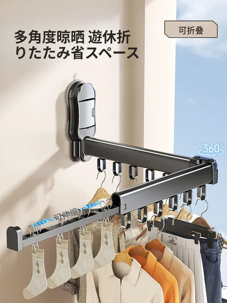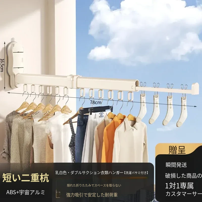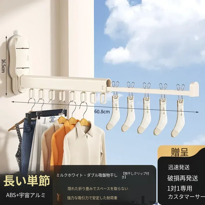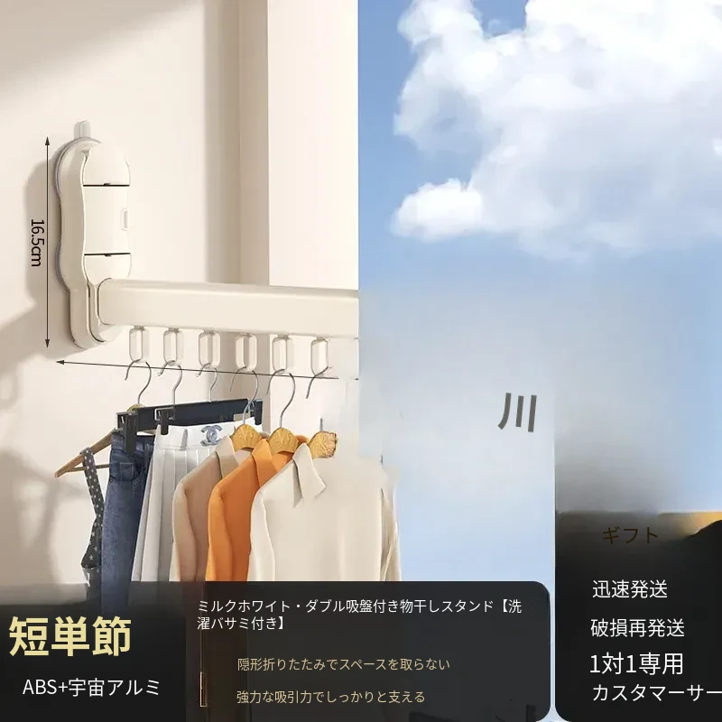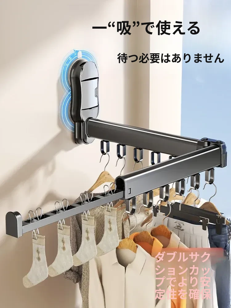 吸盤式折りたたみ衣類ハンガー - バルコニーや室内で使える無痕性の収納ハンガー!洗濯物をスッキリ整理し、スマートに干せる便利アイテム。