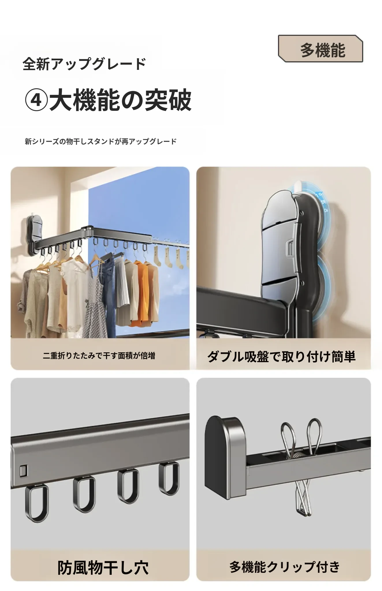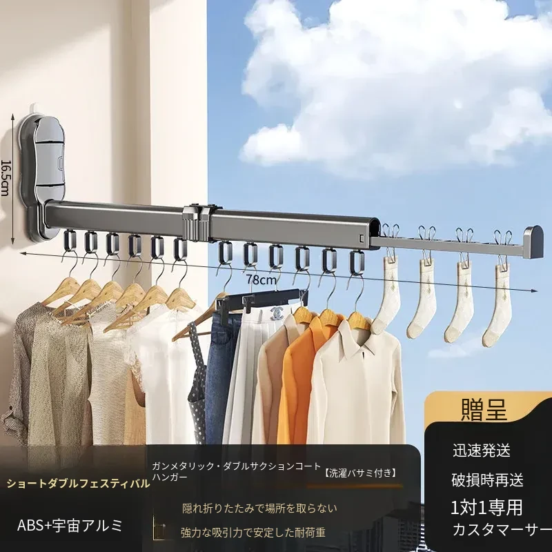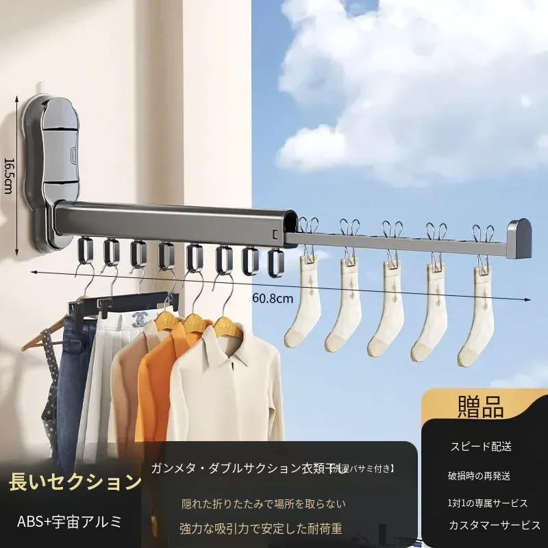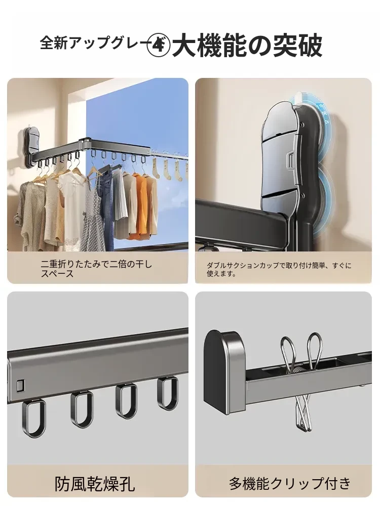 吸盤式折りたたみ衣類ハンガー - バルコニーや室内で使える無痕性の収納ハンガー!洗濯物をスッキリ整理し、スマートに干せる便利アイテム。