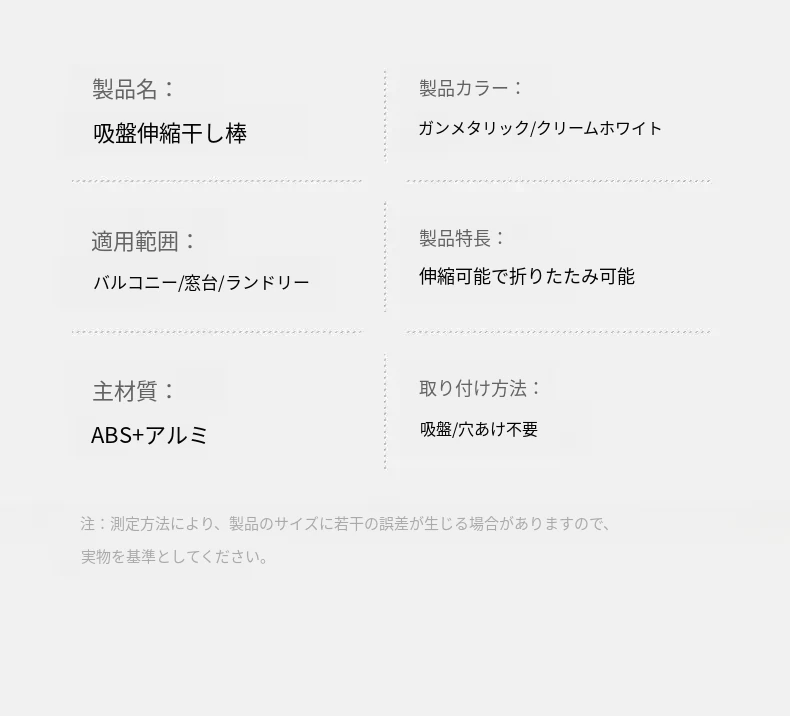 【クリームホワイト吸盤タイプ】短い二重節吸盤物干しラック