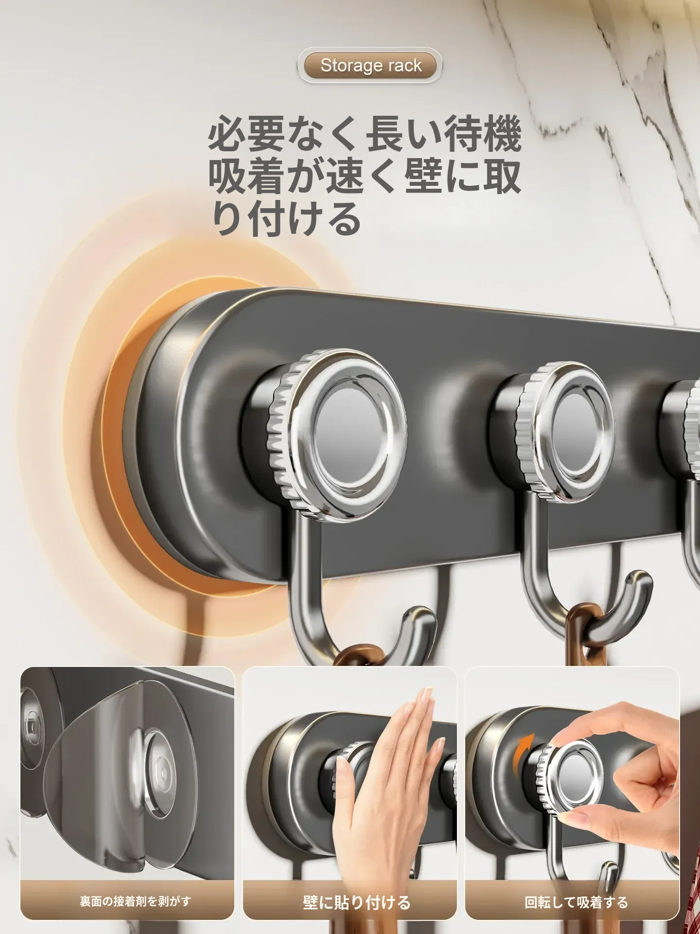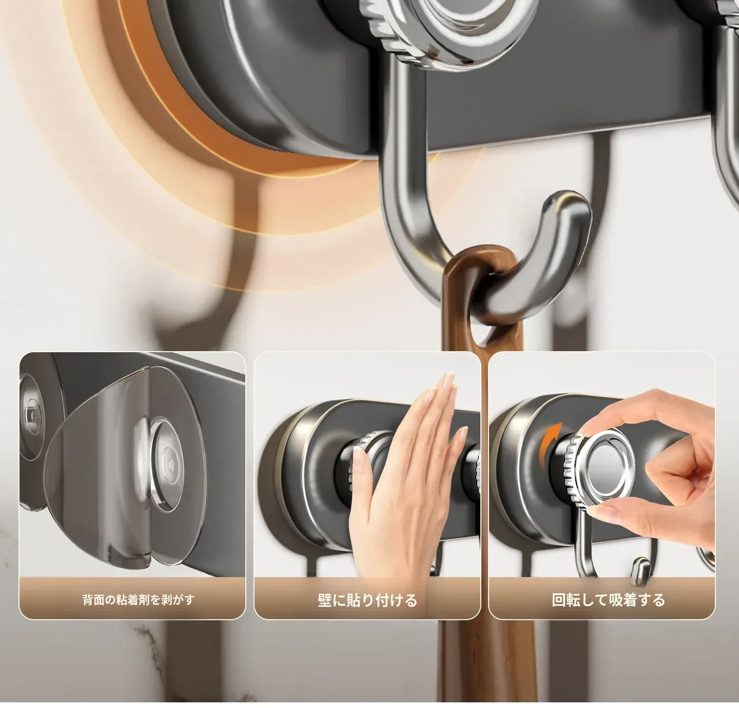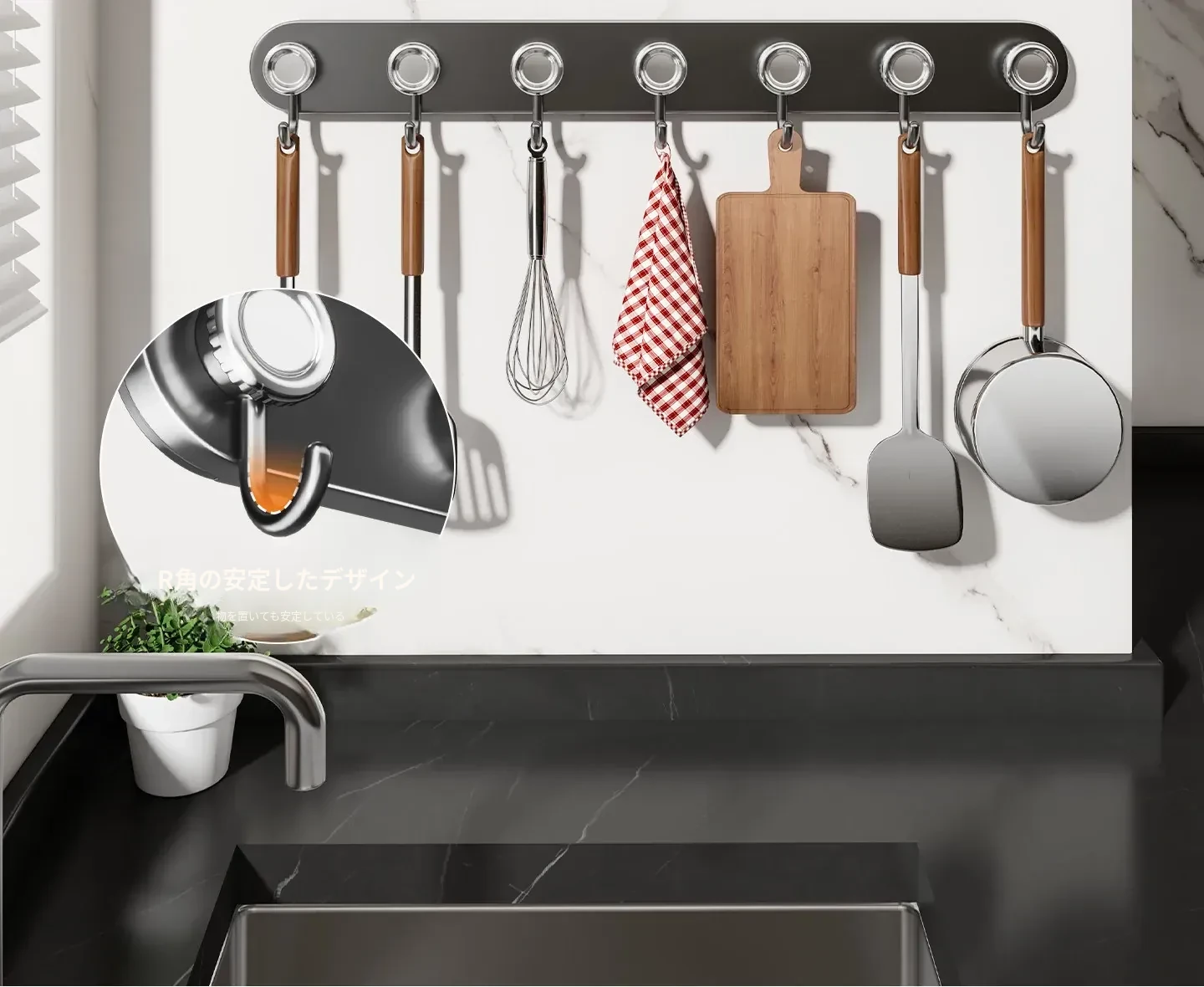 吸盤式キッチンフック&ハンガーバー - 鍋やスプーンもすっきり収納!穴あけ不要の壁掛け収納ラックで、スッキリとしたキッチン空間を実現します。