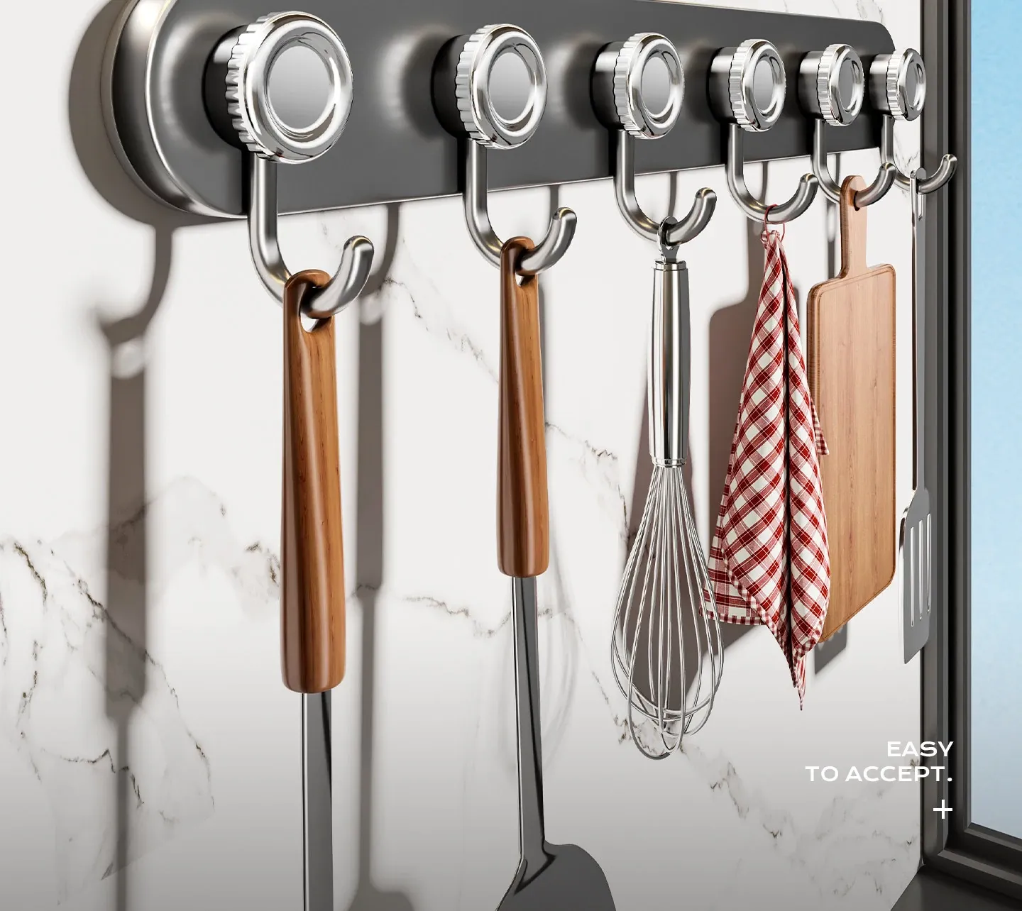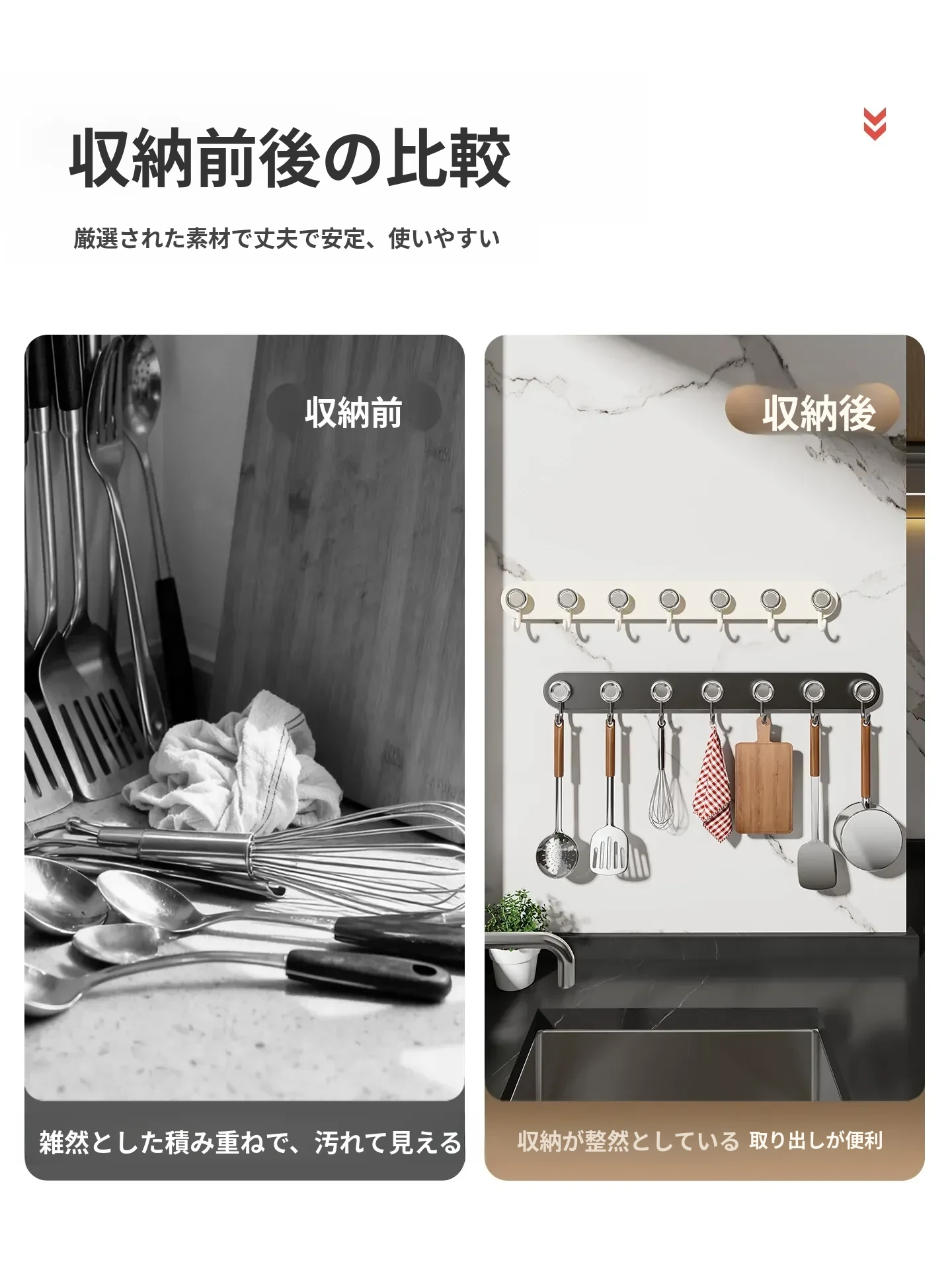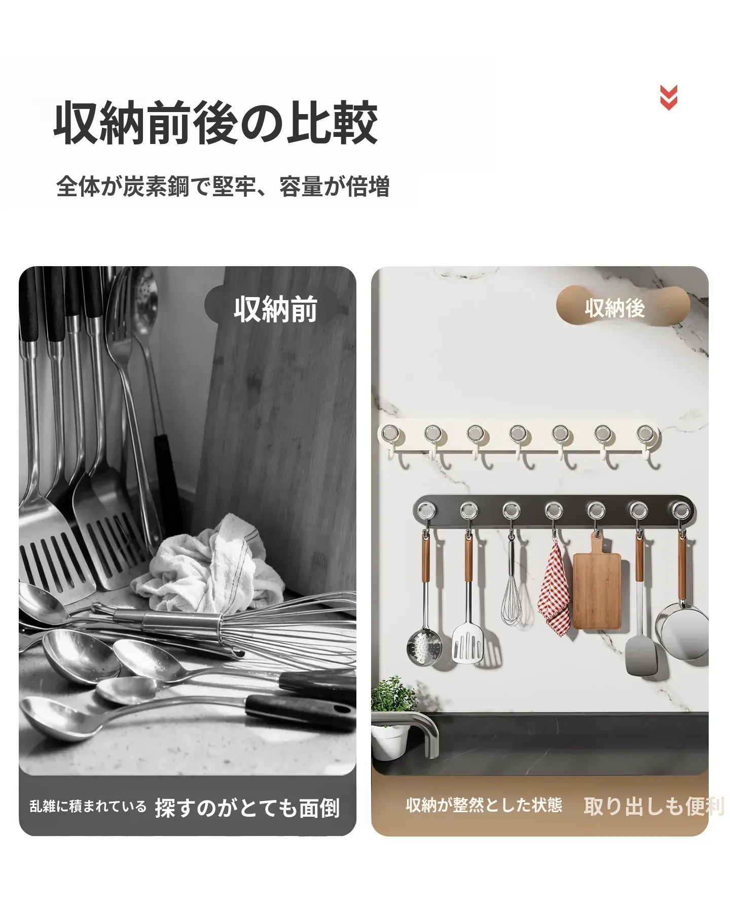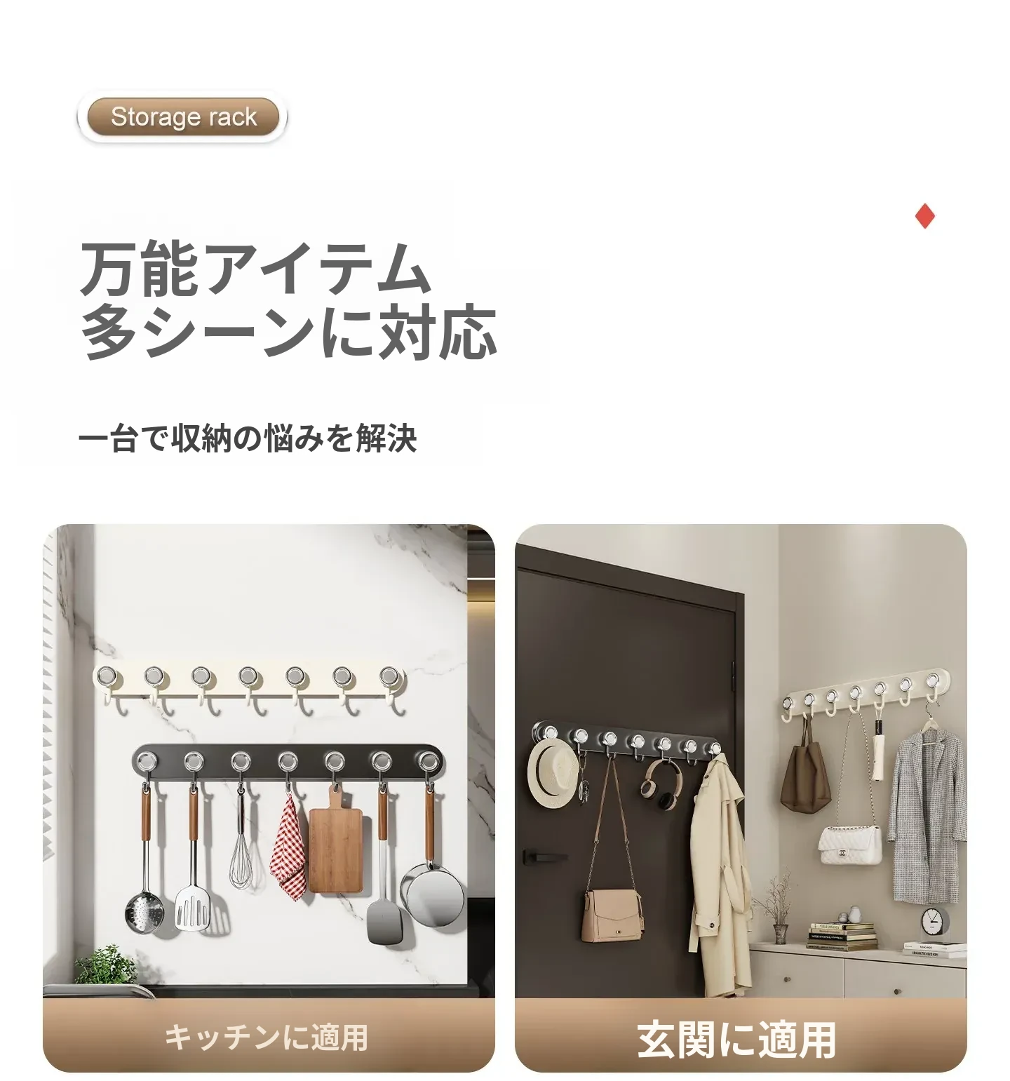 吸盤式キッチンフック&ハンガーバー - 鍋やスプーンもすっきり収納!穴あけ不要の壁掛け収納ラックで、スッキリとしたキッチン空間を実現します。