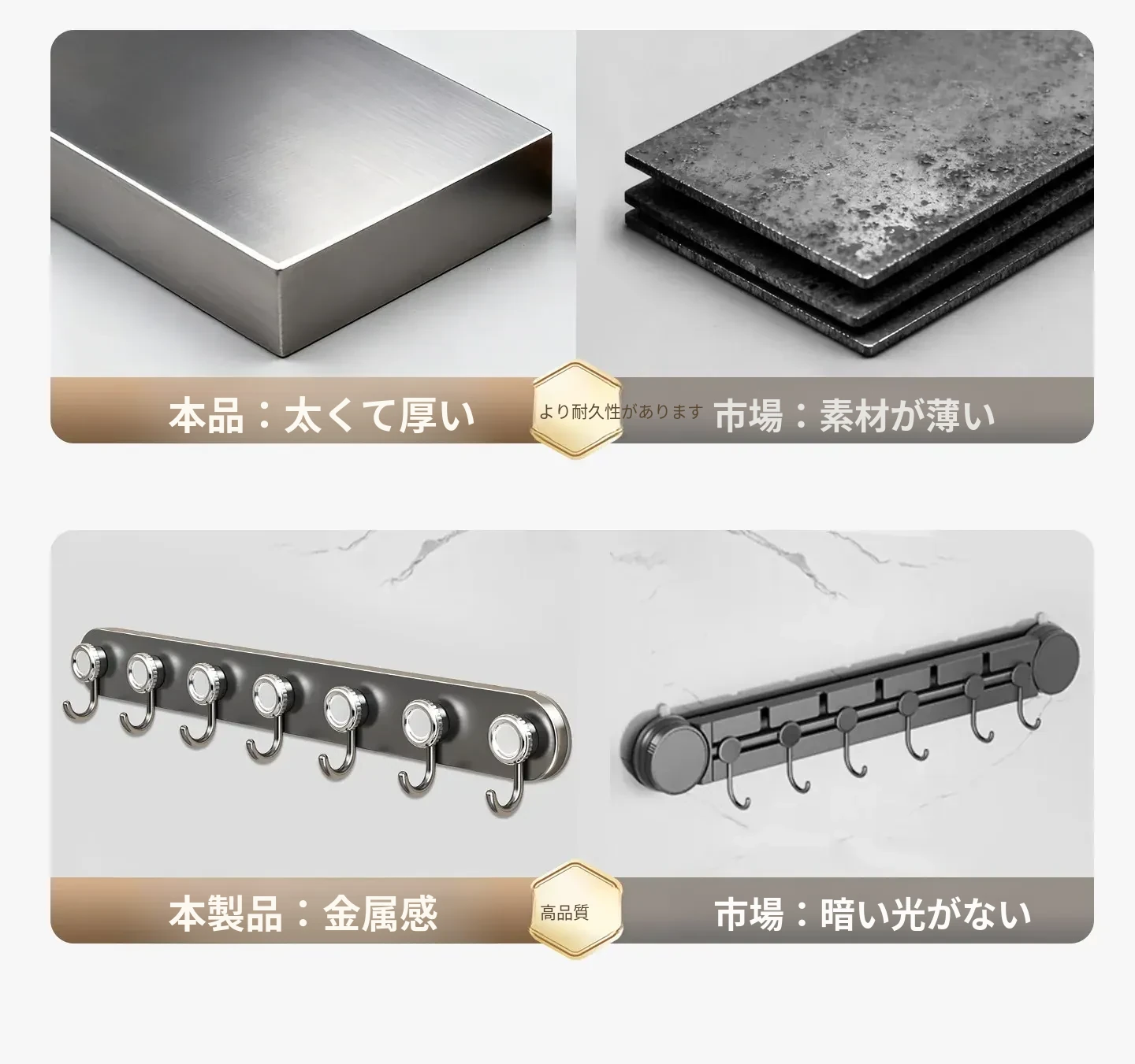 【全網独占⭐強化された4つの吸盤】キッチンフック-グレー4フック