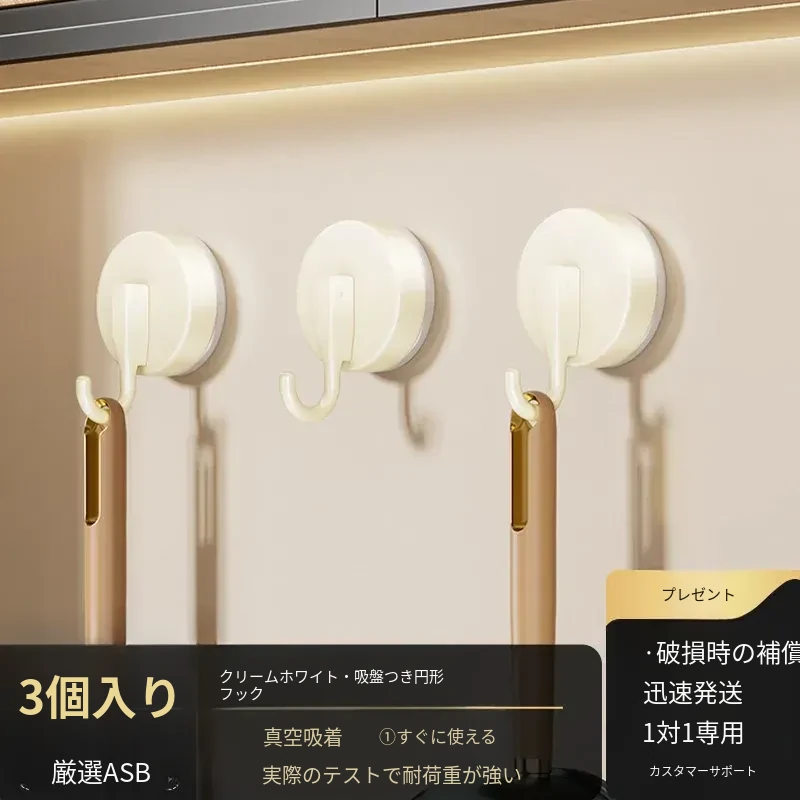 【ミルクホワイト】吸盤フック(3個セット)