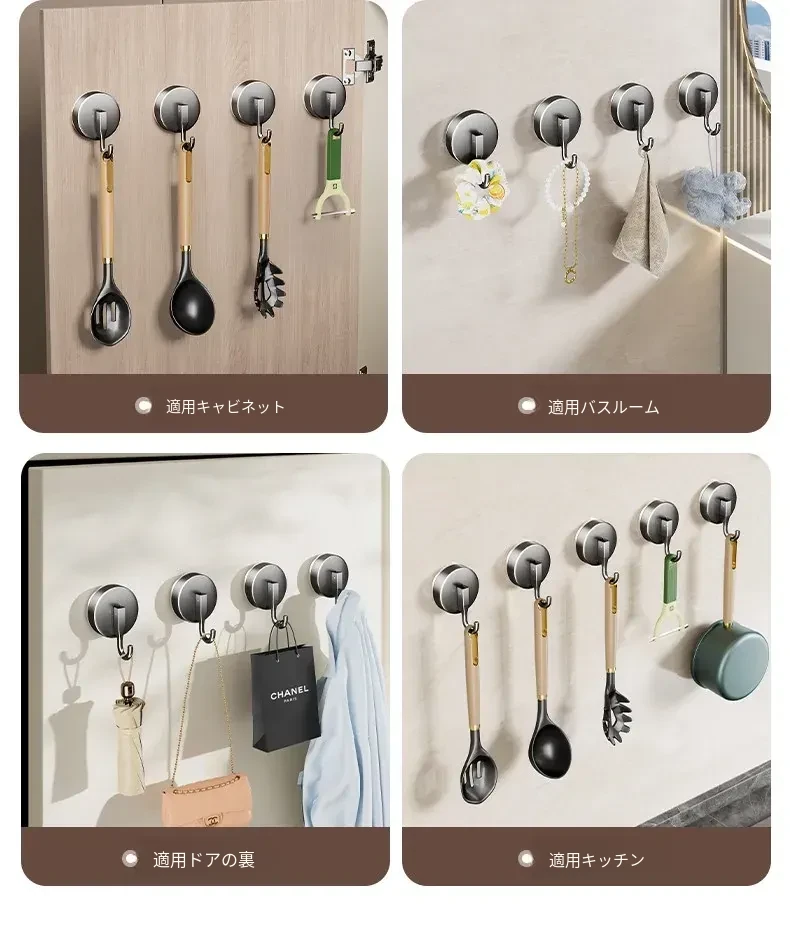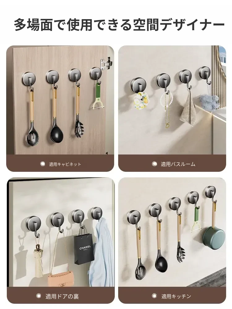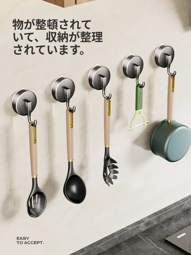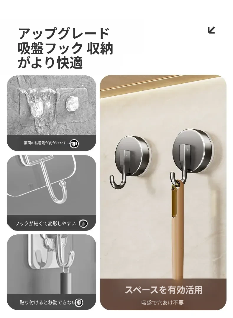 キッチン収納ラック 吸盤フック 無打孔 鍋やスプーンをスッキリ整理 橱柜ドア裏に強力無痕粘着フックでおしゃれに収納!