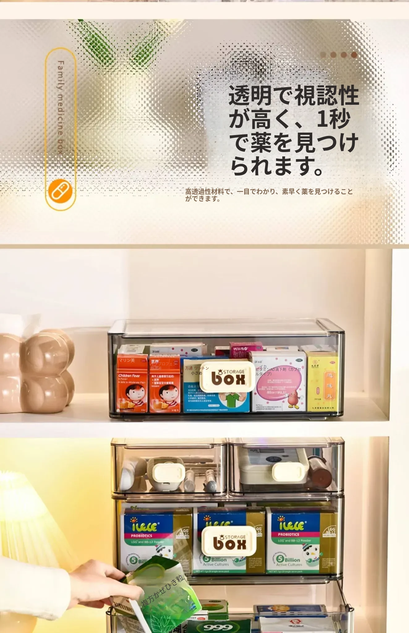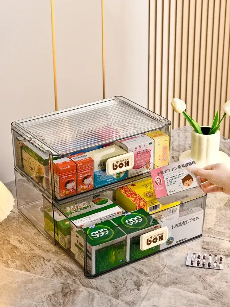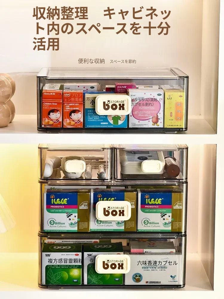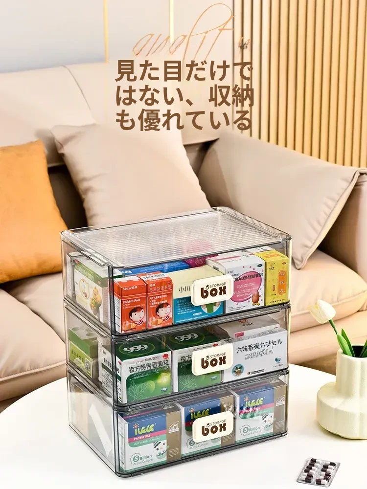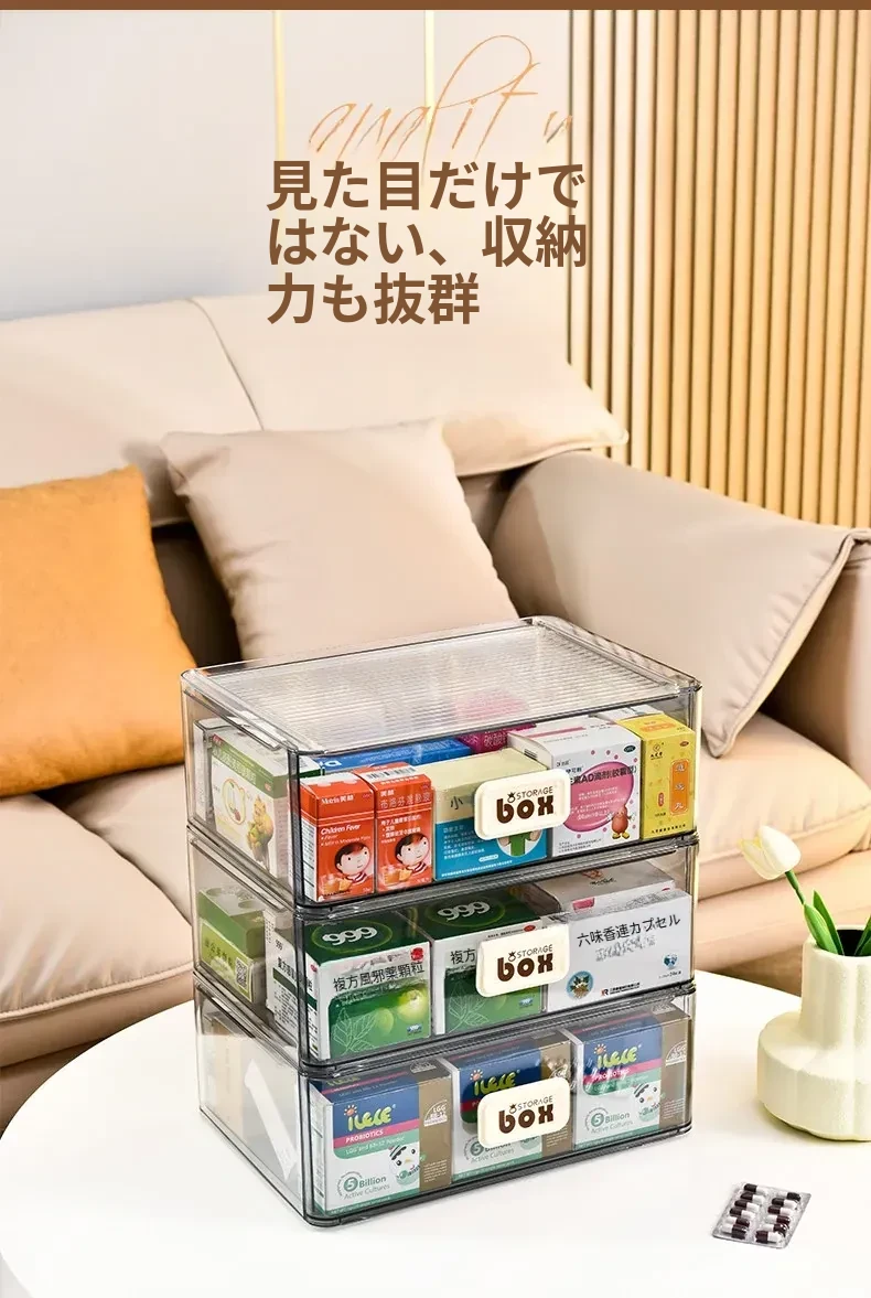 家庭用便利な医薬品収納ボックス - 引き出し式の透明な多層救急薬箱で、整理整頓も簡単!緊急時に備えて、すっきりとした収納で安心を提供します。