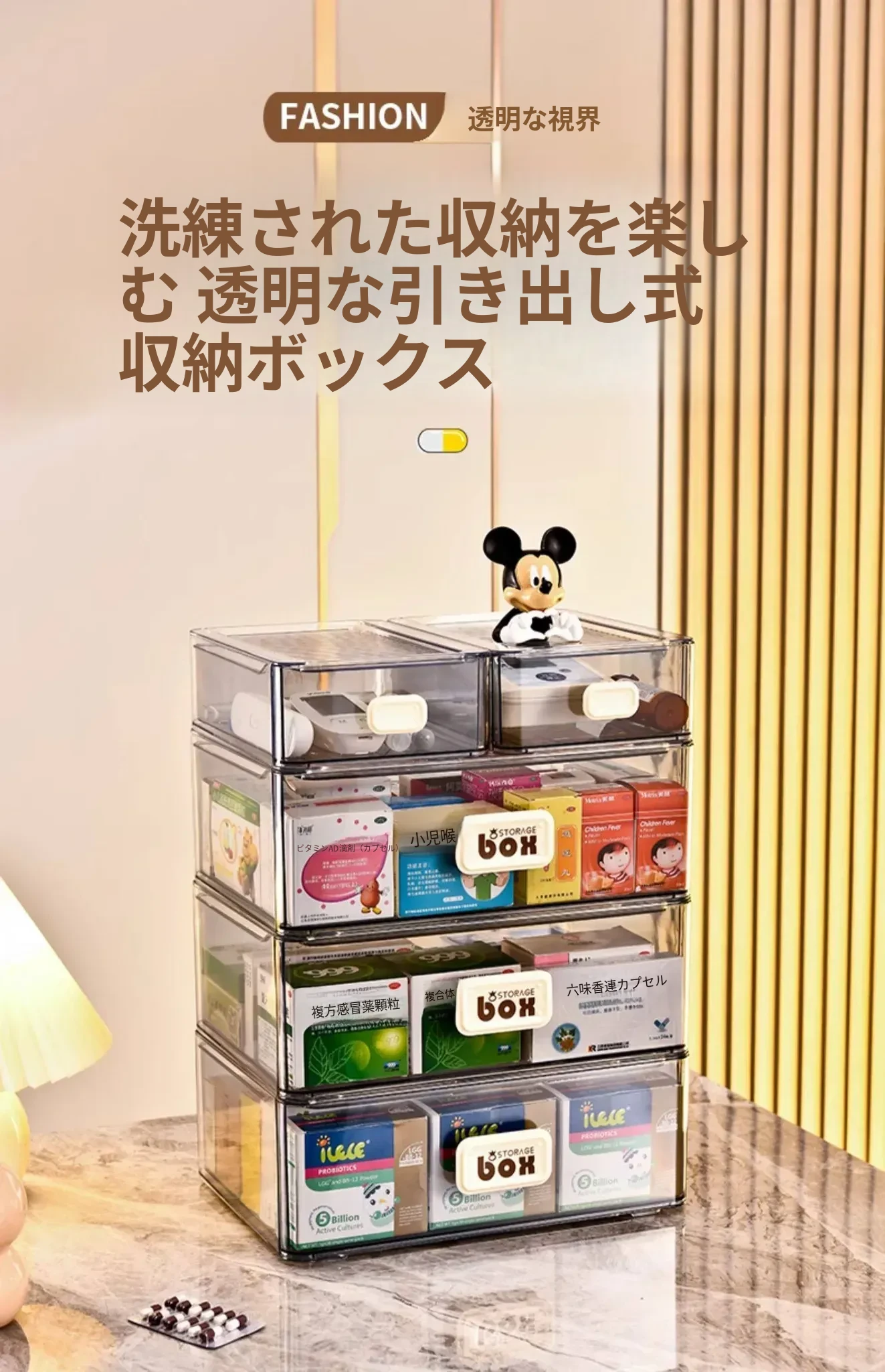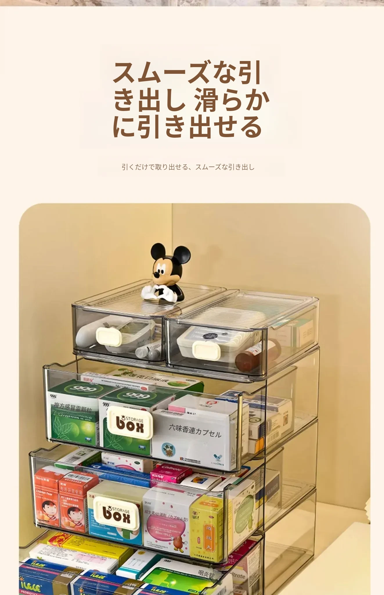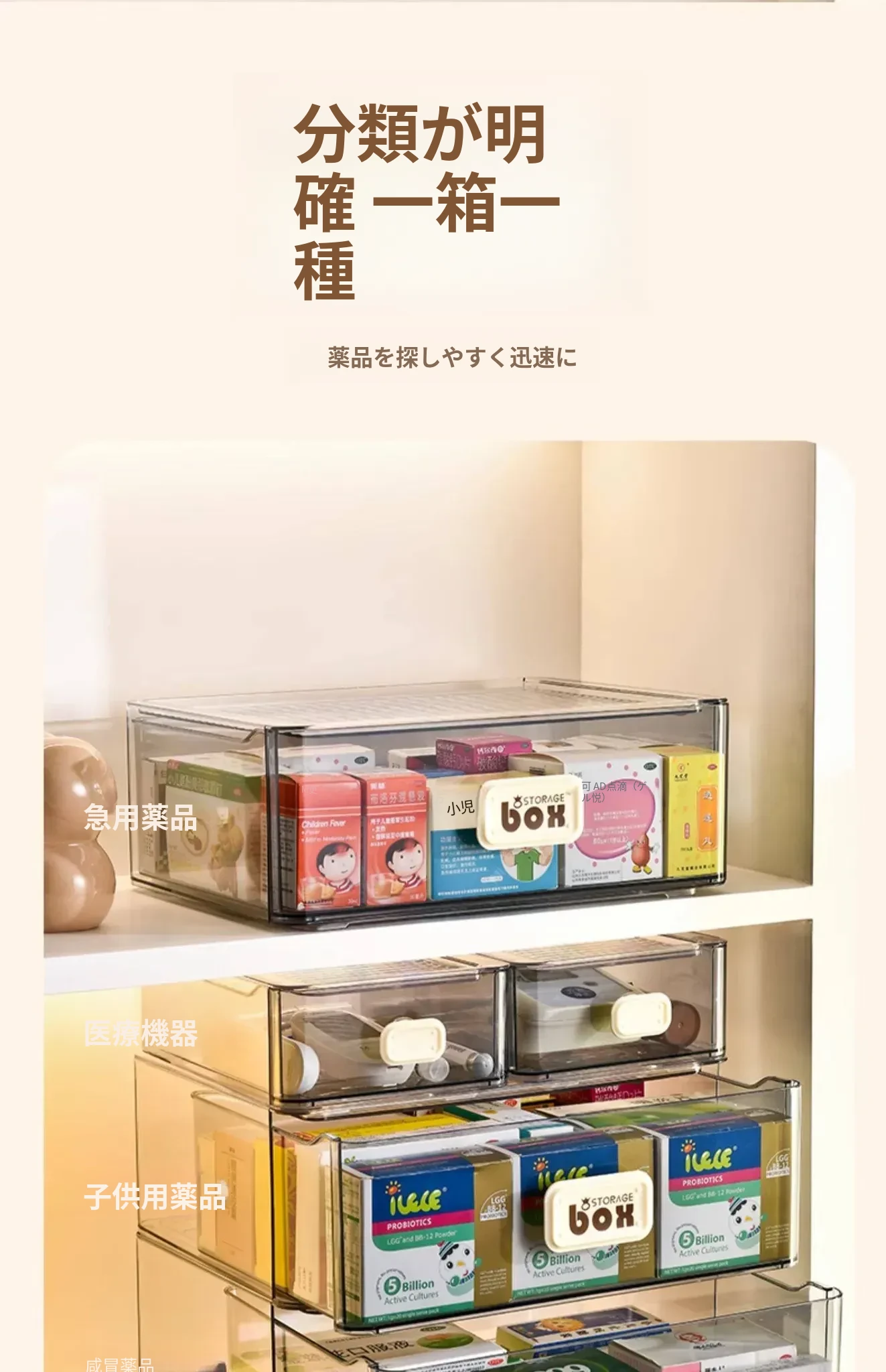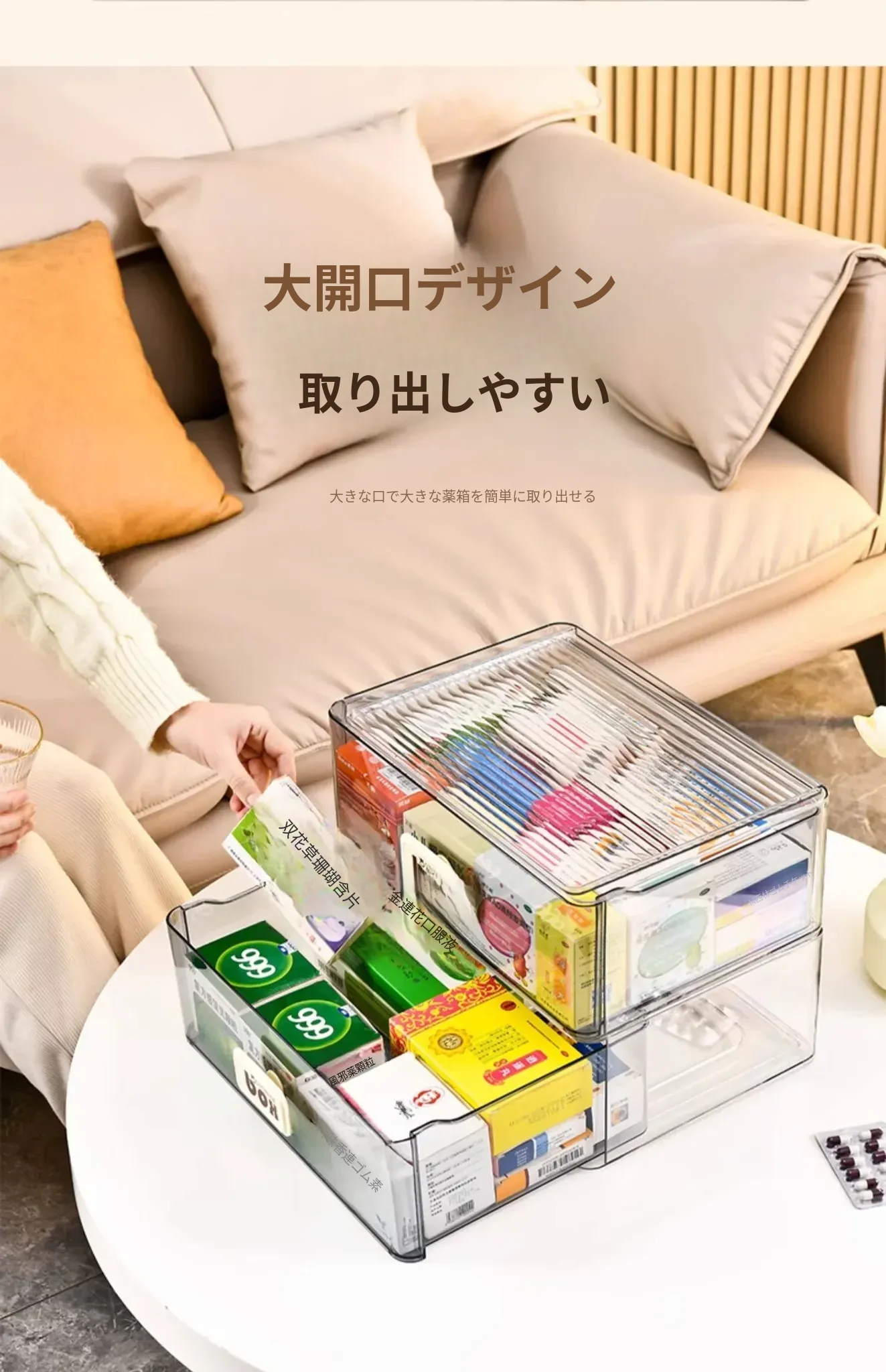 家庭用便利な医薬品収納ボックス - 引き出し式の透明な多層救急薬箱で、整理整頓も簡単!緊急時に備えて、すっきりとした収納で安心を提供します。