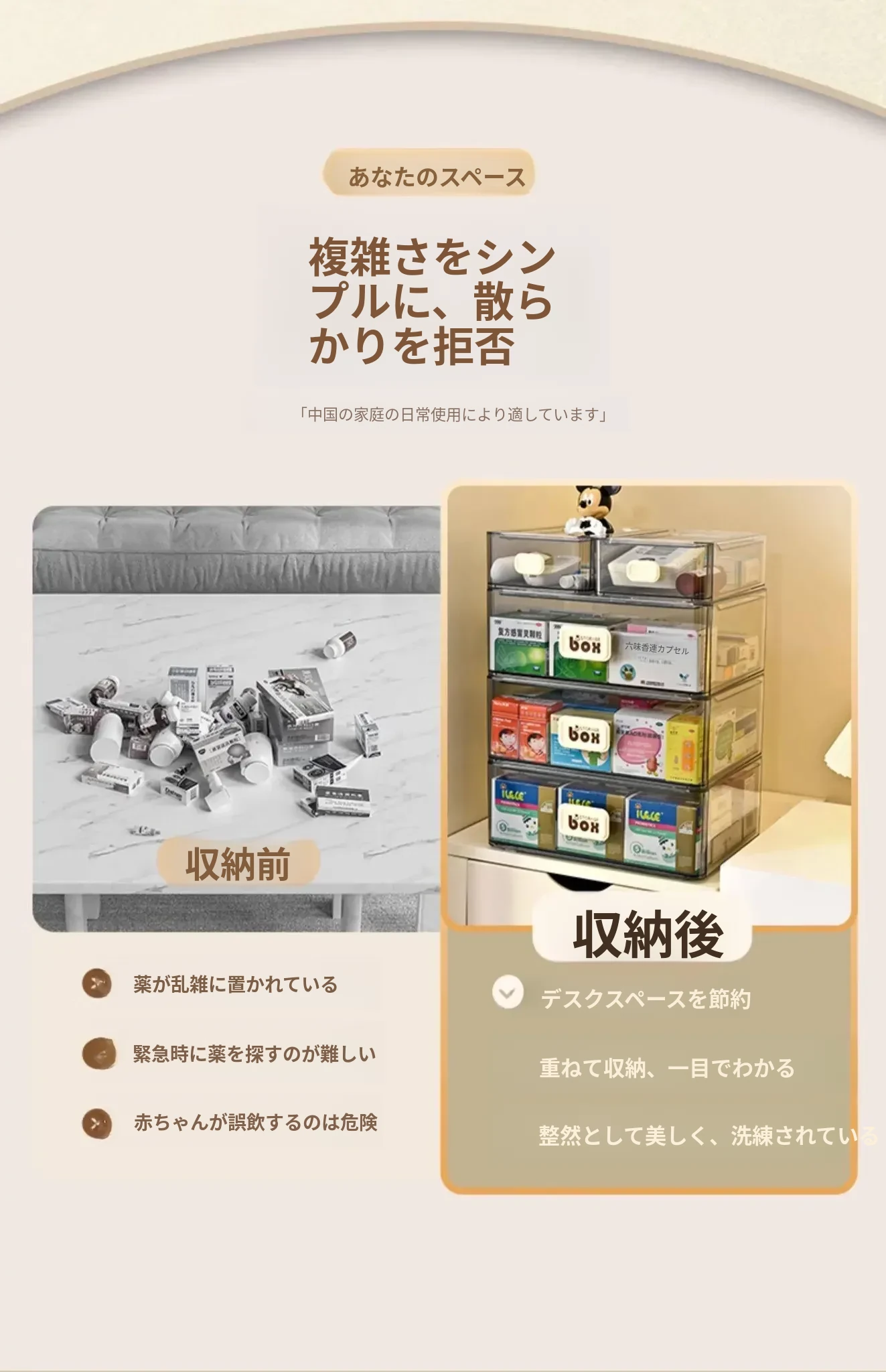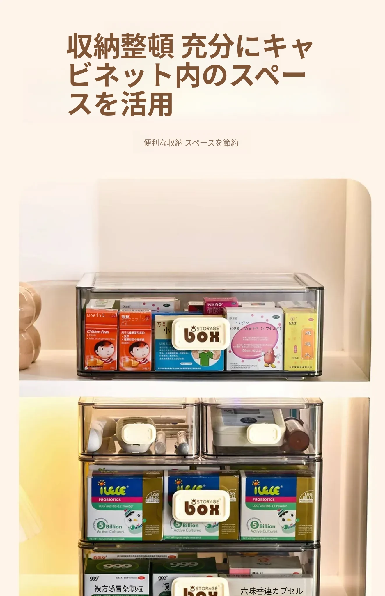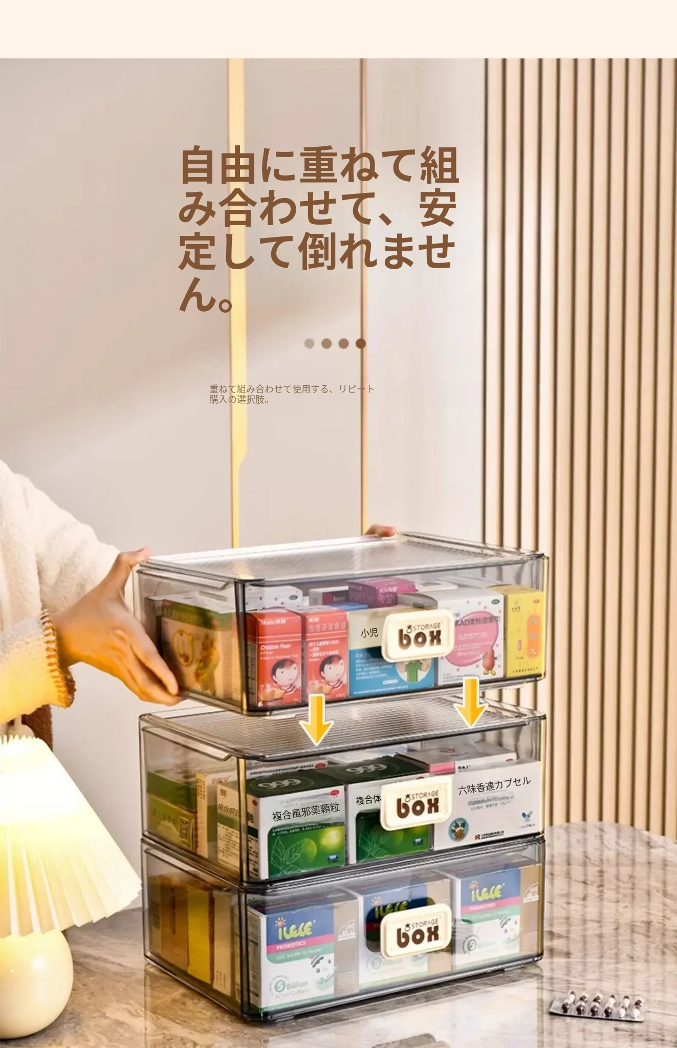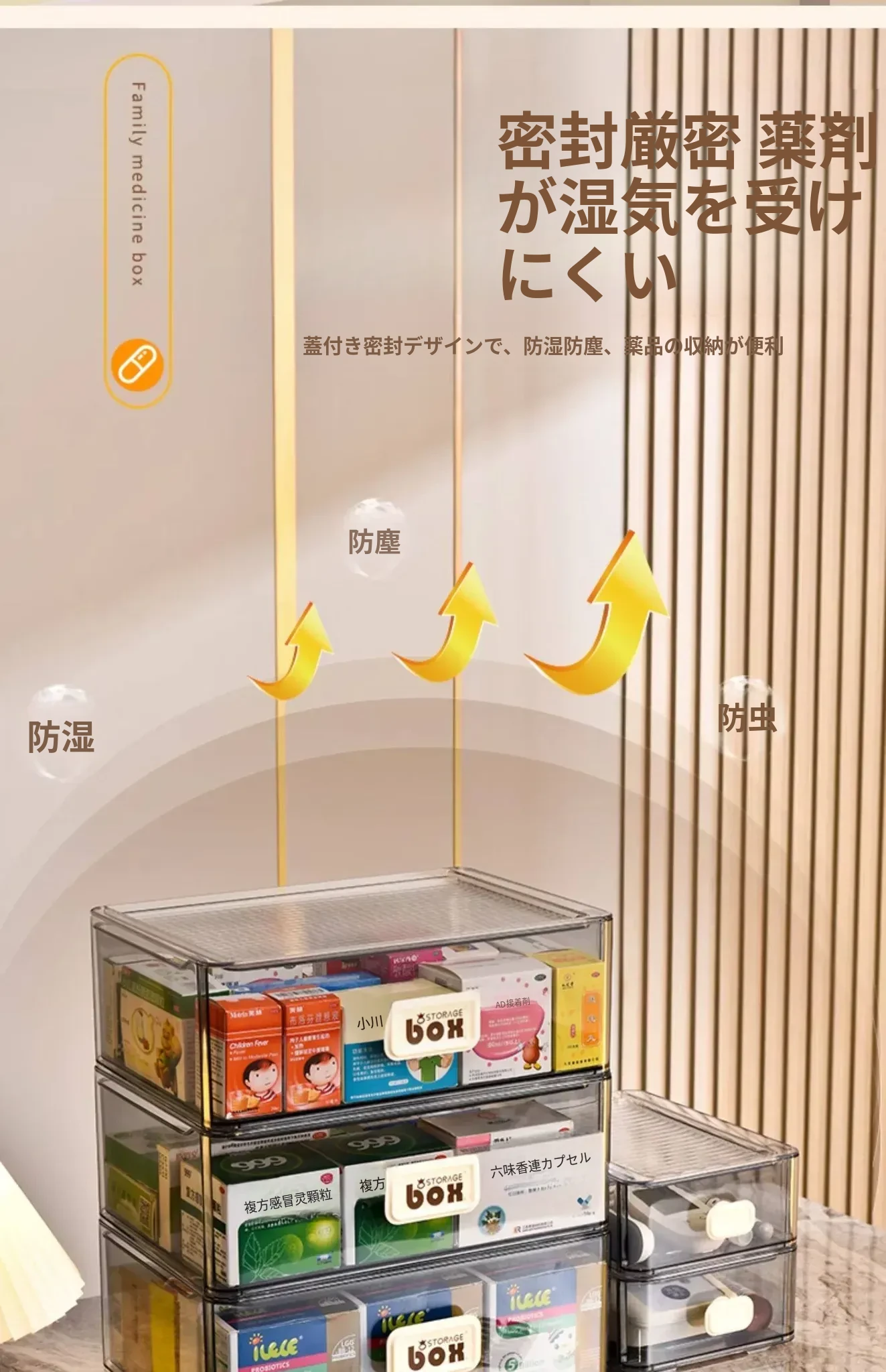 家庭用便利な医薬品収納ボックス - 引き出し式の透明な多層救急薬箱で、整理整頓も簡単!緊急時に備えて、すっきりとした収納で安心を提供します。