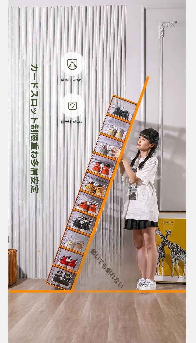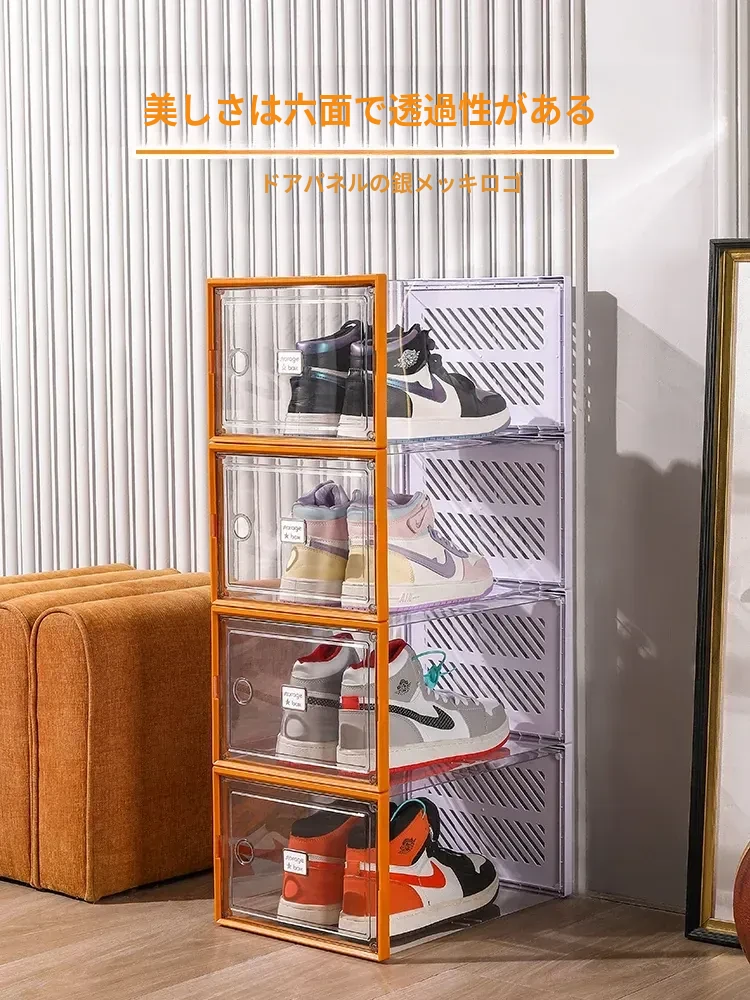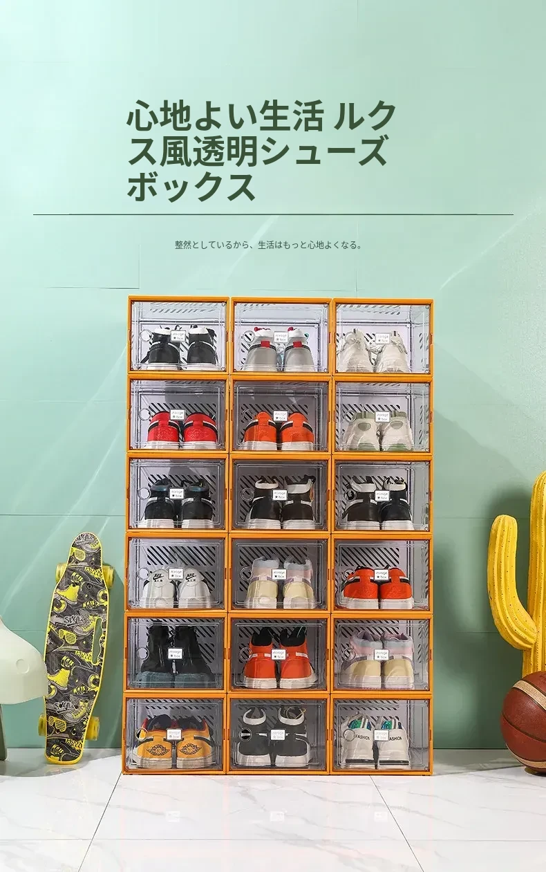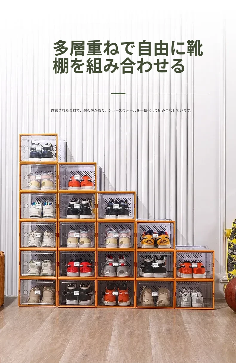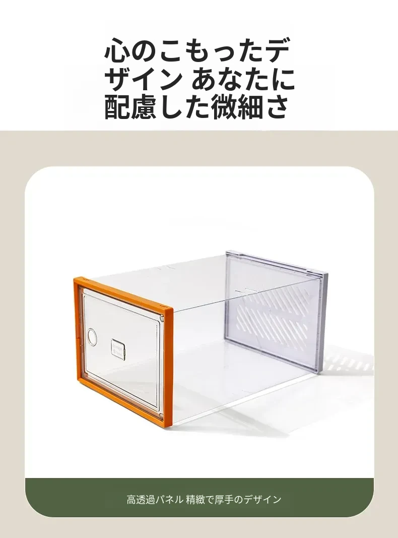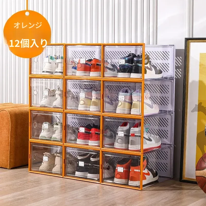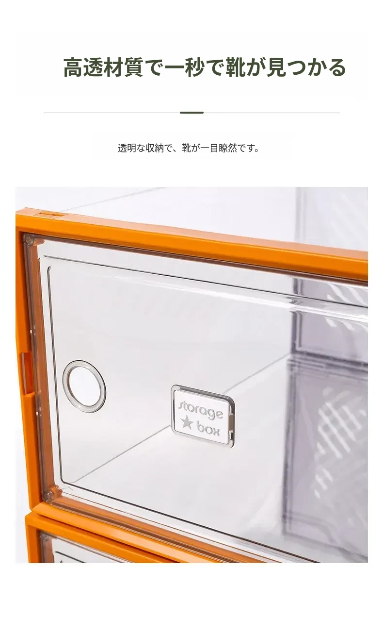 透明で厚手の靴箱フタ付き!靴の収納に最適な折りたたみ式収納ボックス。引き出しタイプの靴棚でスペースを有効活用できるプラスチック製の靴ラック。あなたの靴を美しく整理整頓!