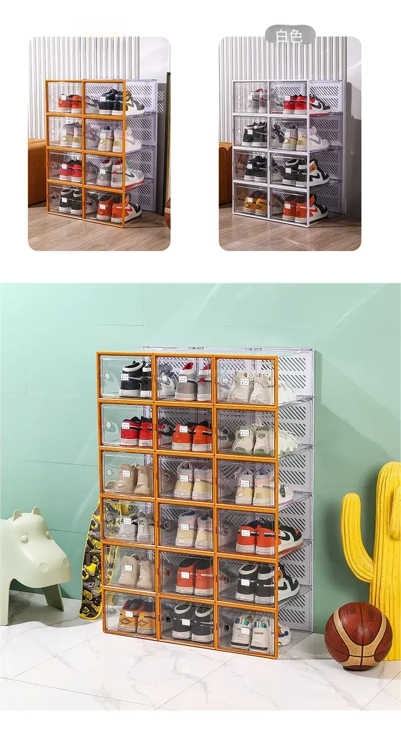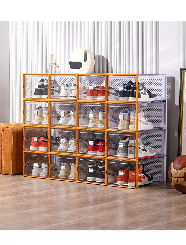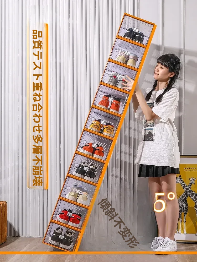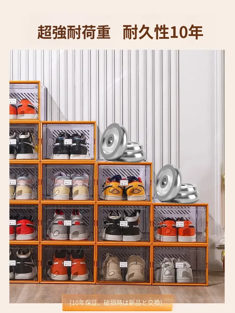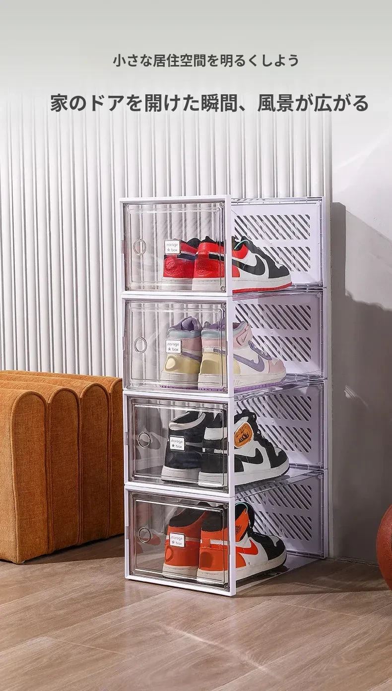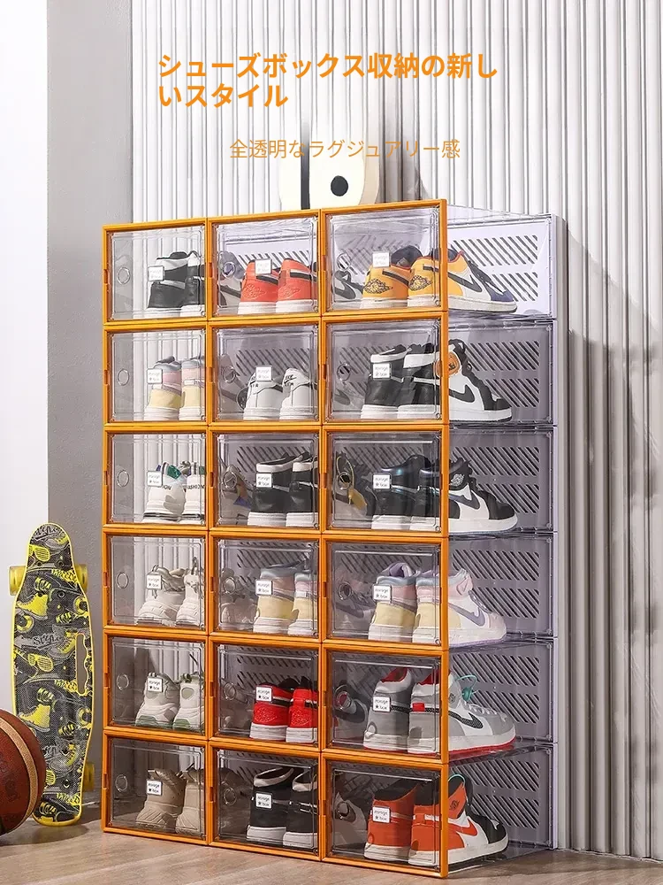 透明で厚手の靴箱フタ付き!靴の収納に最適な折りたたみ式収納ボックス。引き出しタイプの靴棚でスペースを有効活用できるプラスチック製の靴ラック。あなたの靴を美しく整理整頓!