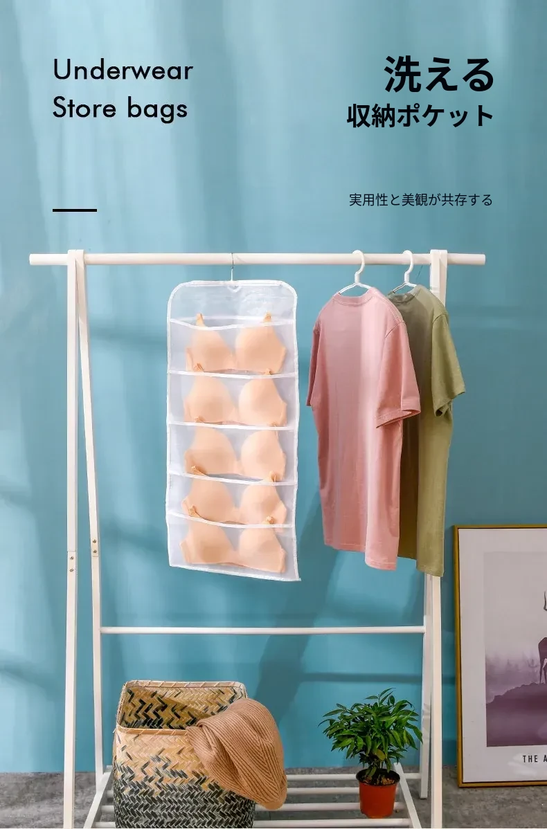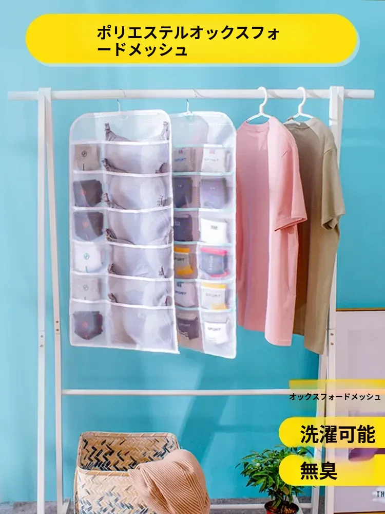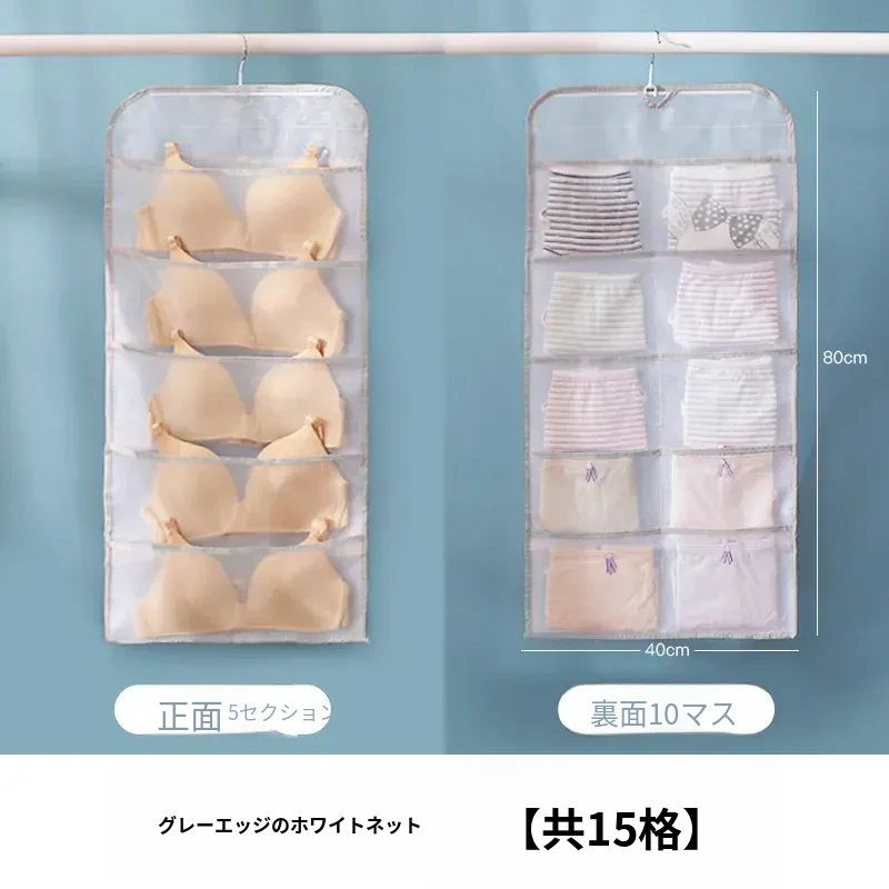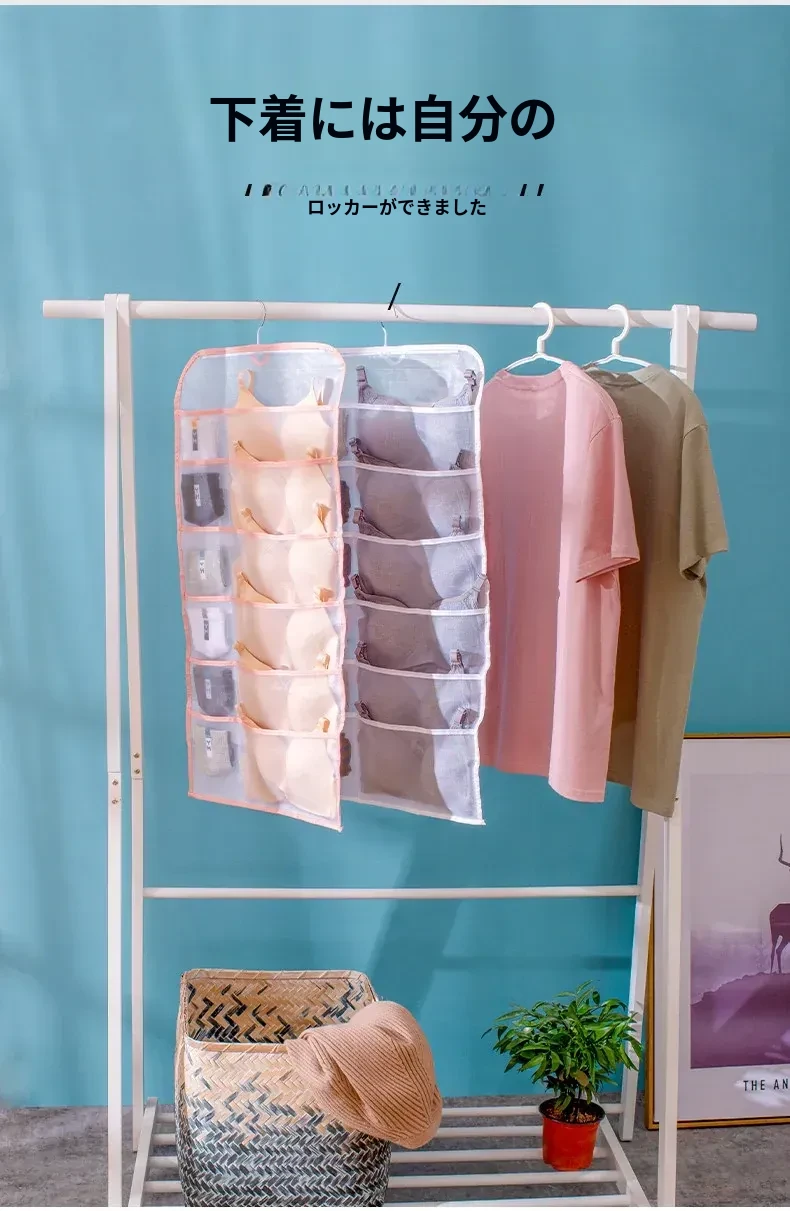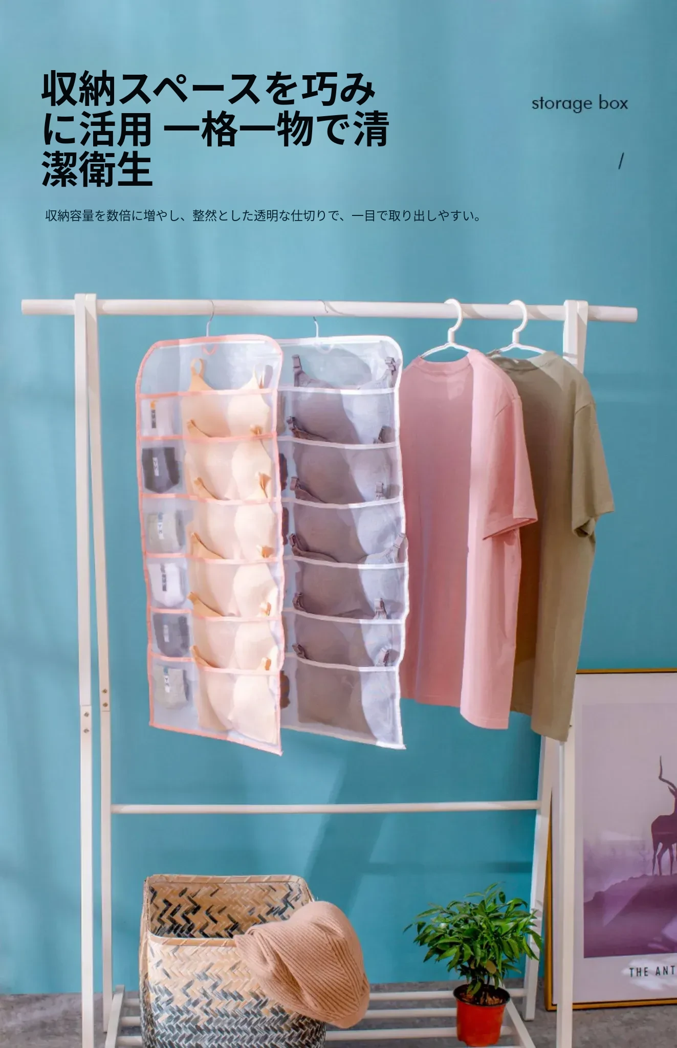 おしゃれな内衣収納ボックス|分けられる収納で、家中のパンツや靴下をスッキリ整理!布製で軽量、クローゼットにぴったりなブラジャー用ハンガー付き。女性に嬉しい便利アイテム!