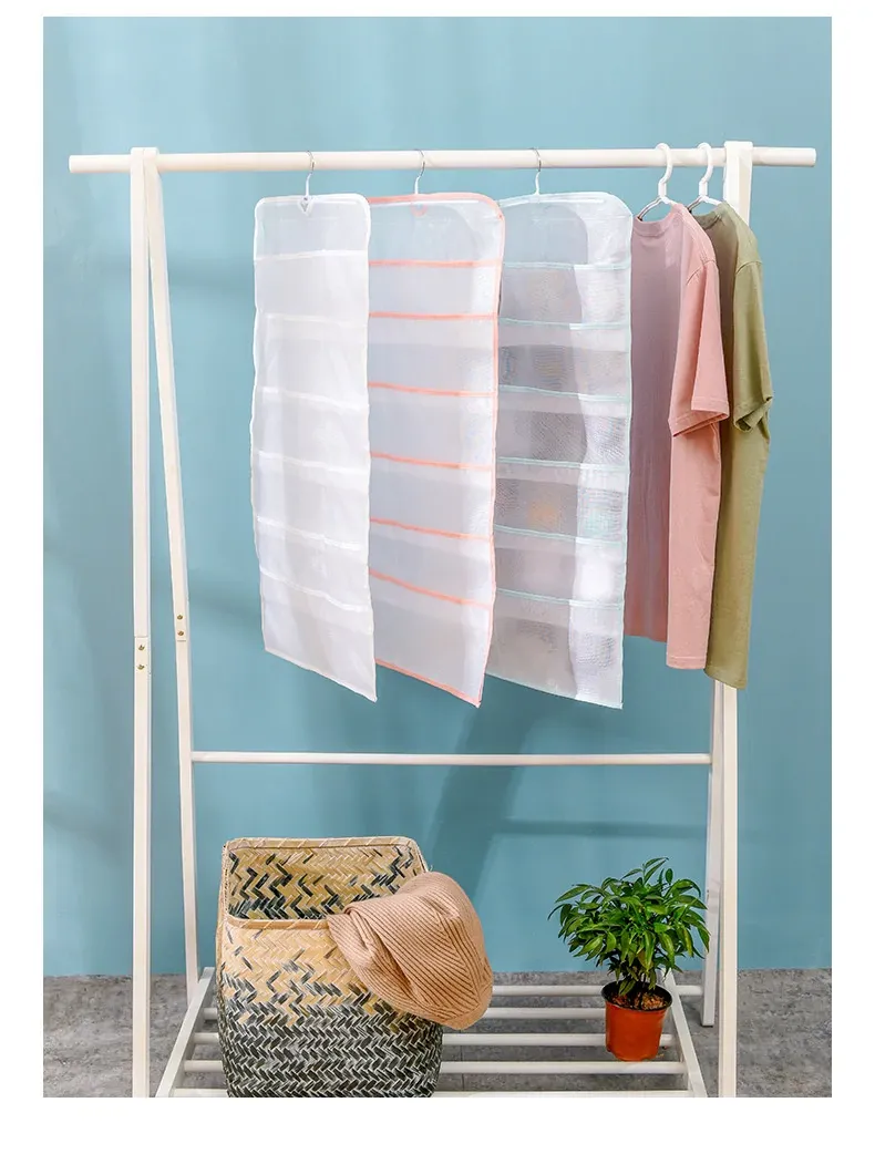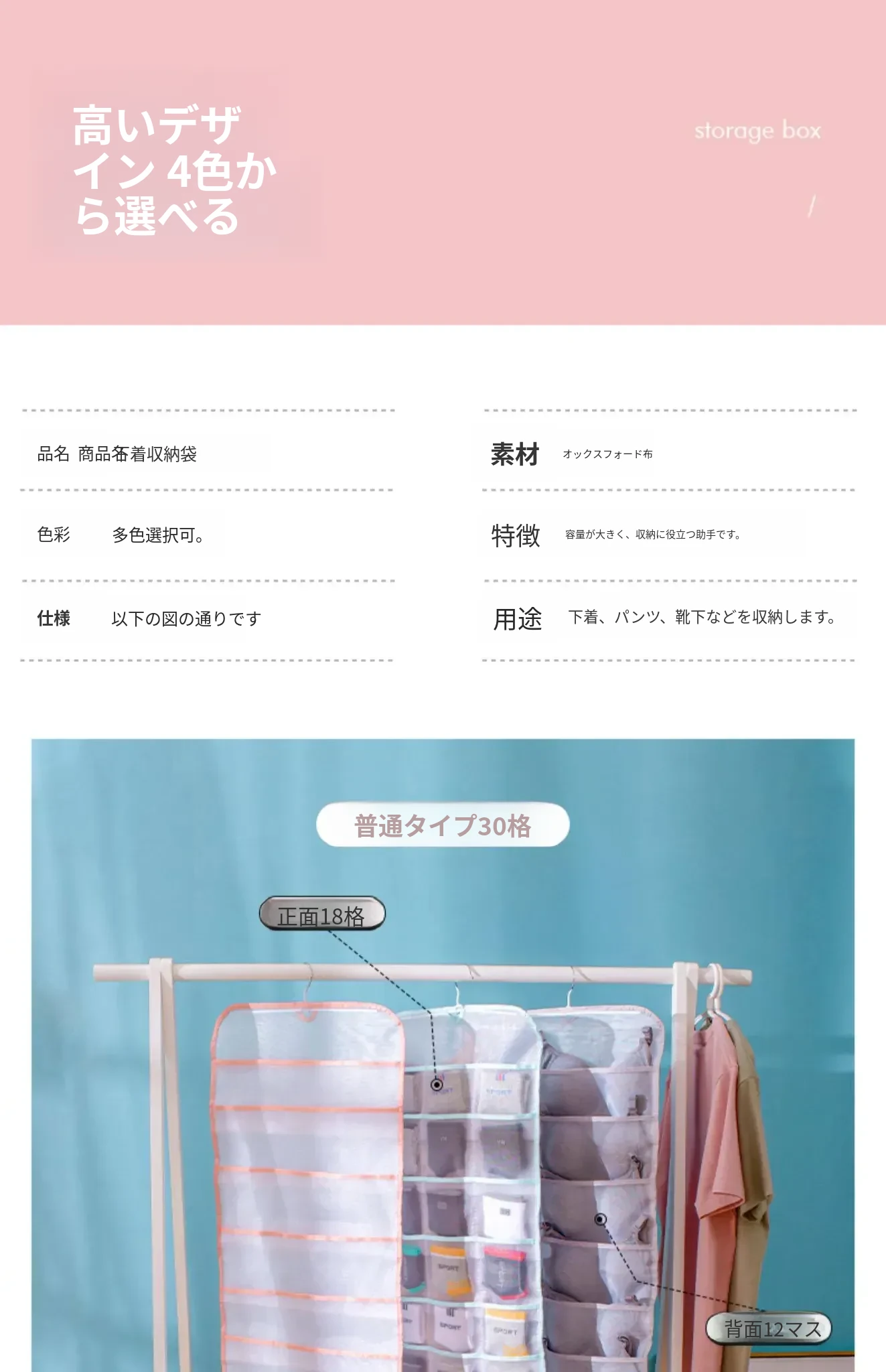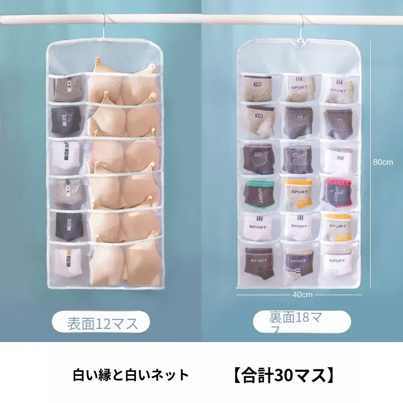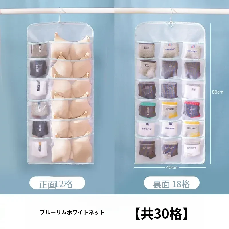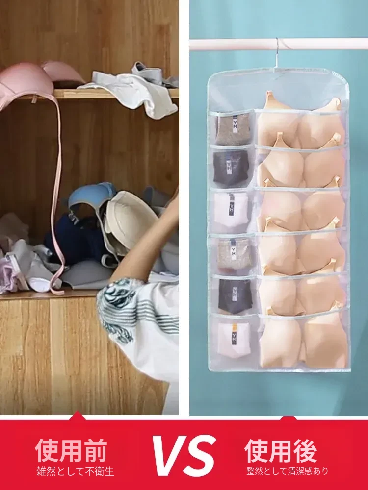 おしゃれな内衣収納ボックス|分けられる収納で、家中のパンツや靴下をスッキリ整理!布製で軽量、クローゼットにぴったりなブラジャー用ハンガー付き。女性に嬉しい便利アイテム!