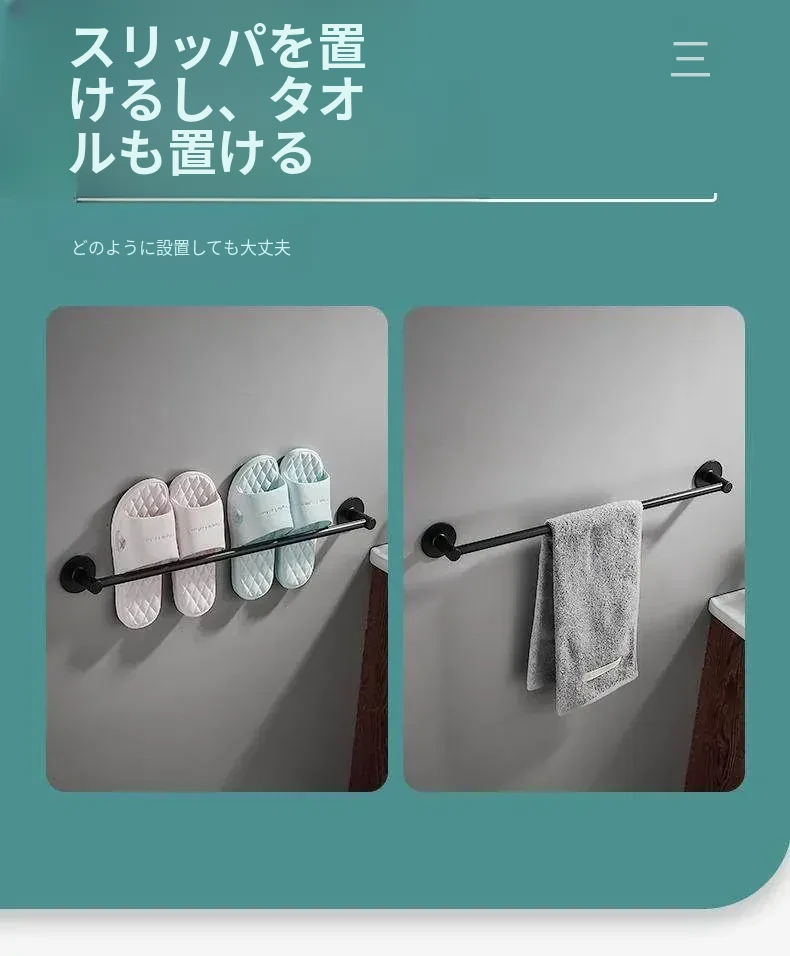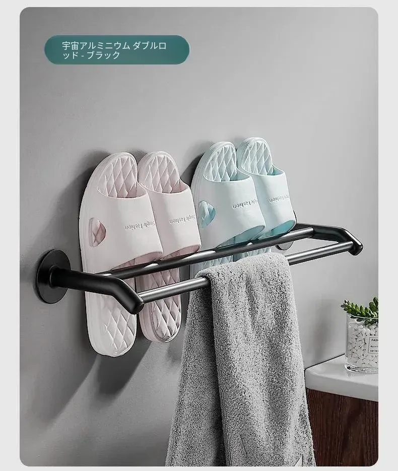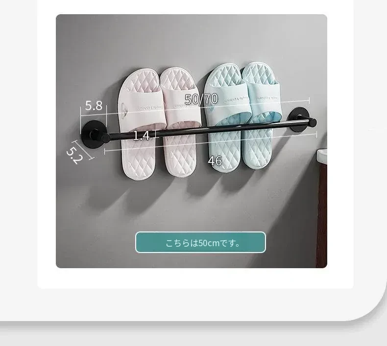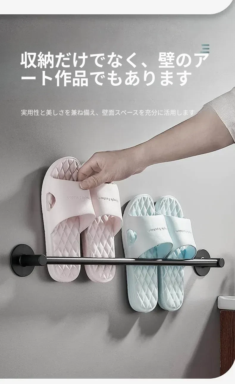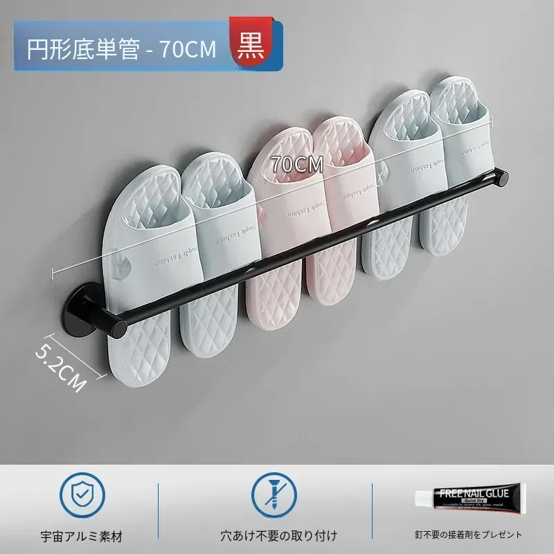 壁掛け式バスルームスリッパラック - 穴を開けずに設置できる便利な収納アイテム!トイレのドアの後ろにぴったりフィットするスペース節約型、耐久性のある宇宙アルミ製。清潔な環境を保ちながら、スリッパをスッキリ整理!