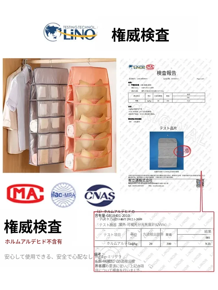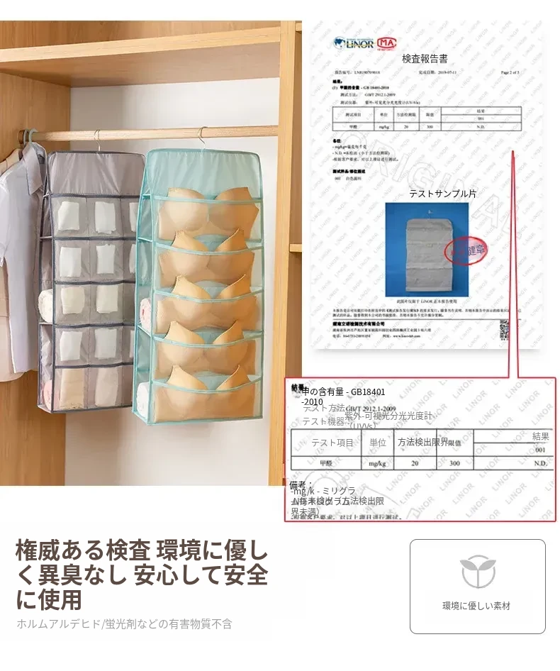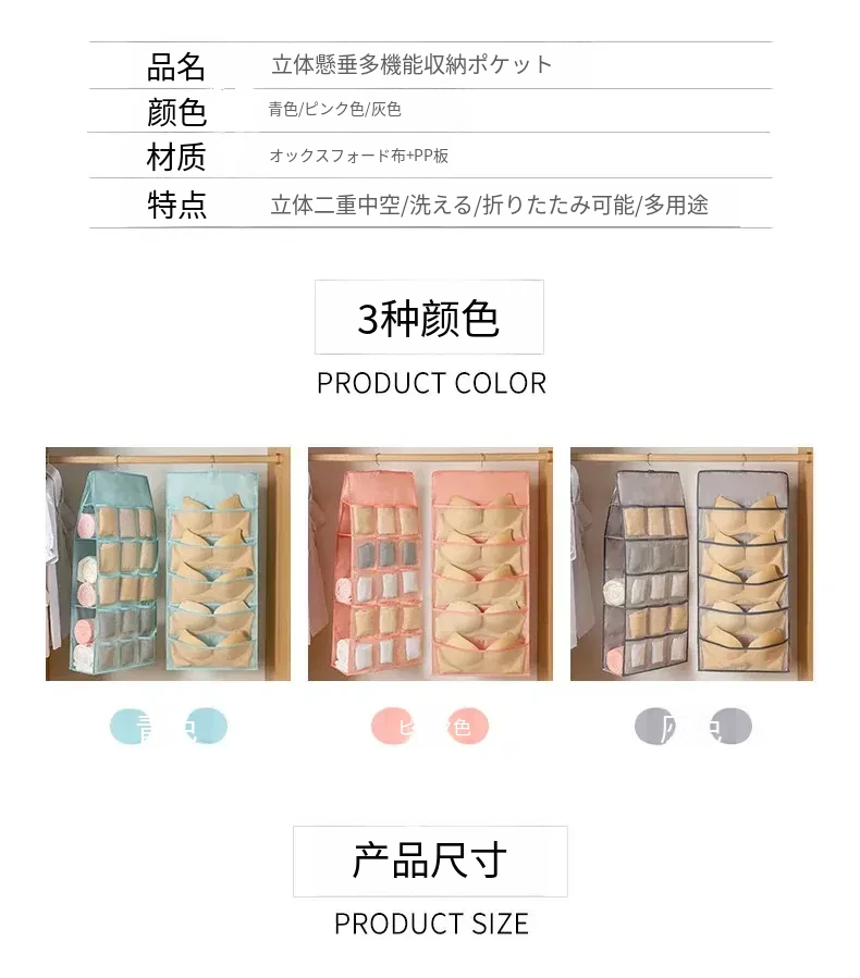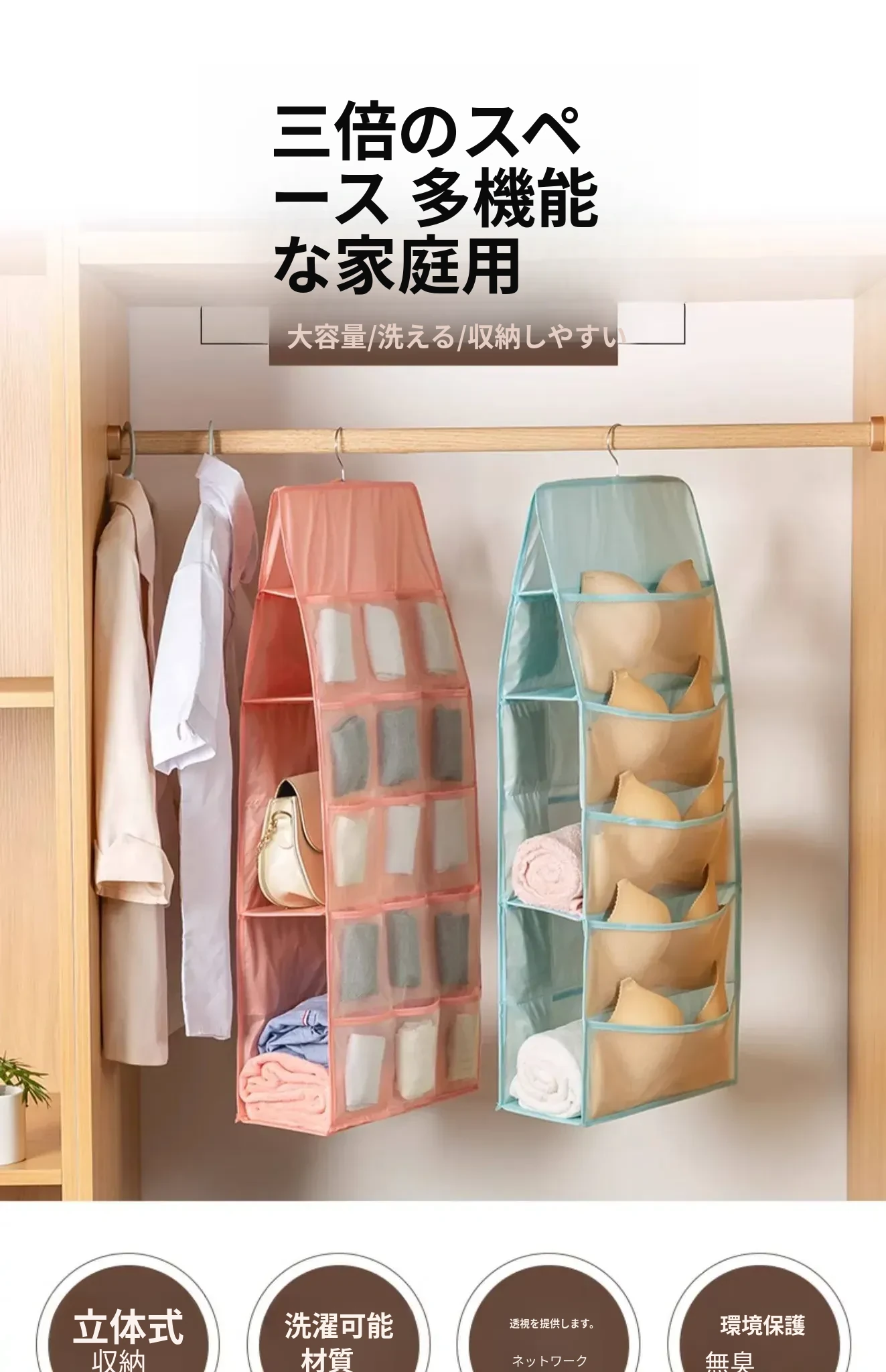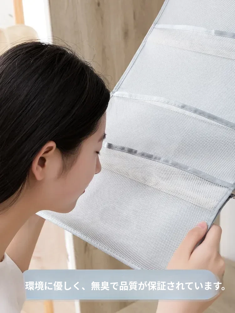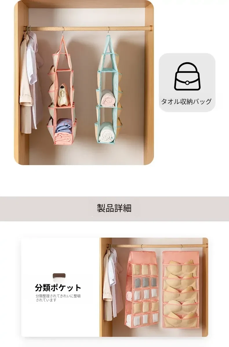 壁掛けインナー収納袋 - ベッドサイドやクローゼットに最適!下着、靴下、バッグをすっきり整理できる便利な収納グッズ。寮生活や狭いスペースにぴったりの整理整頓アイテム!