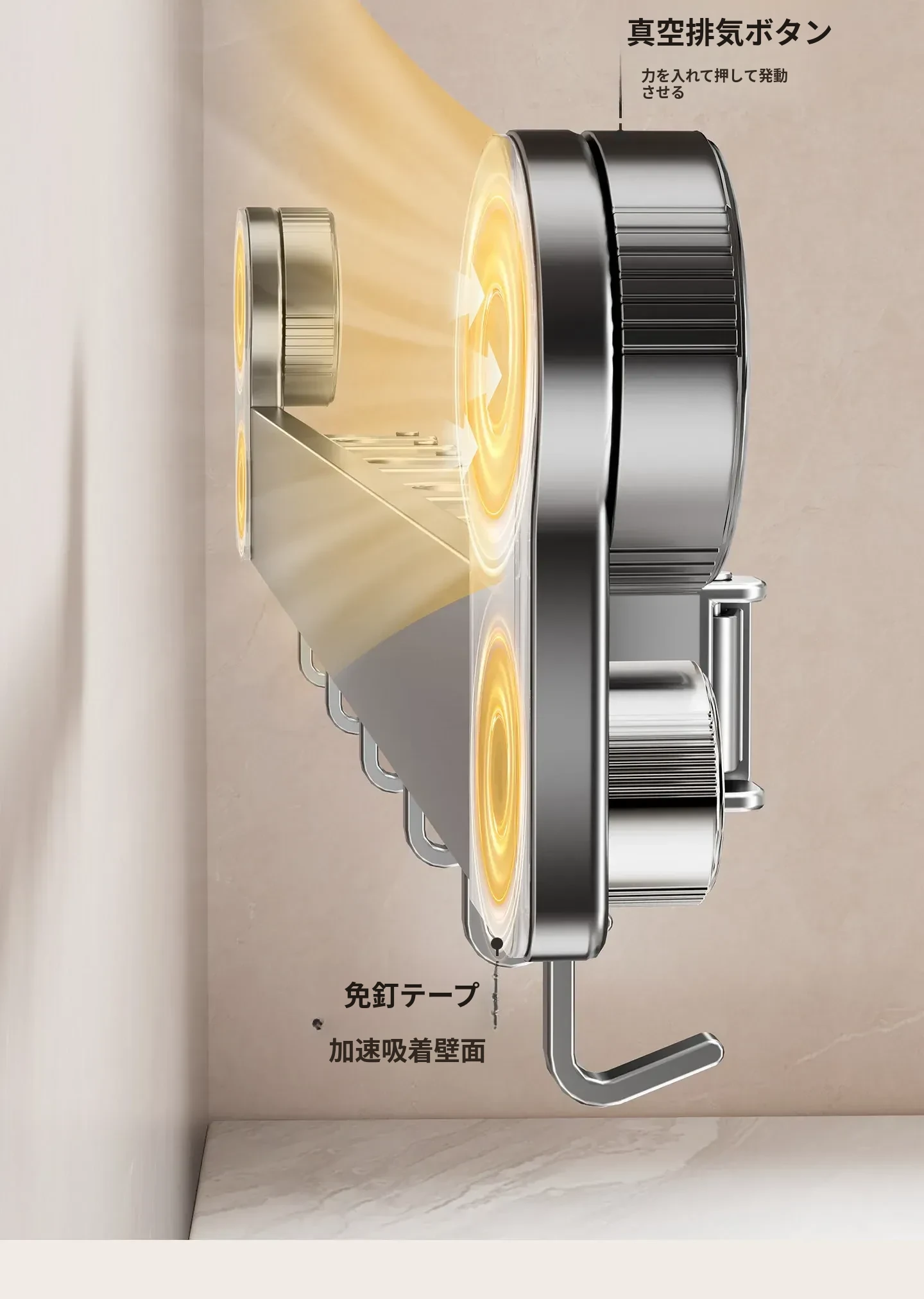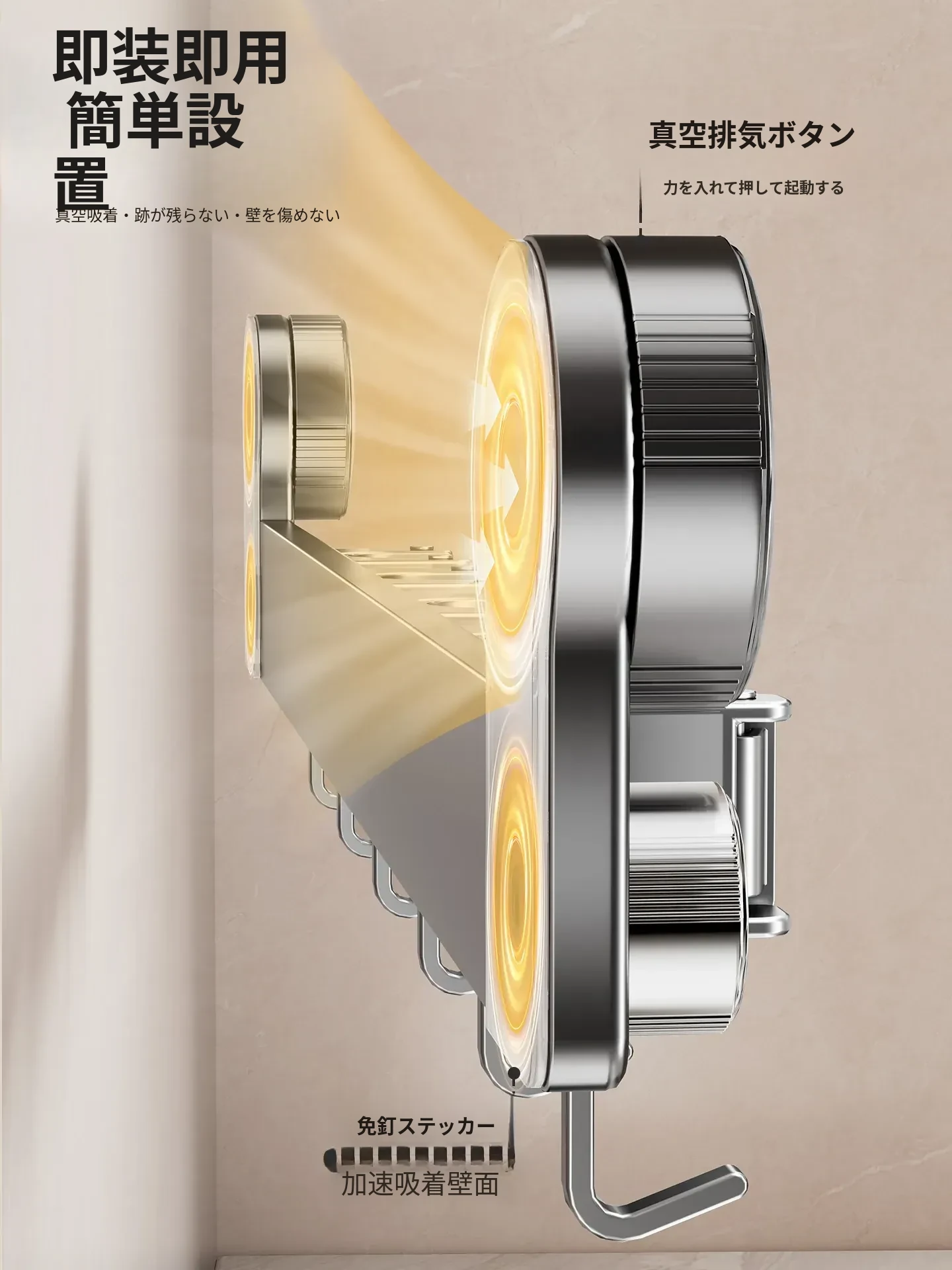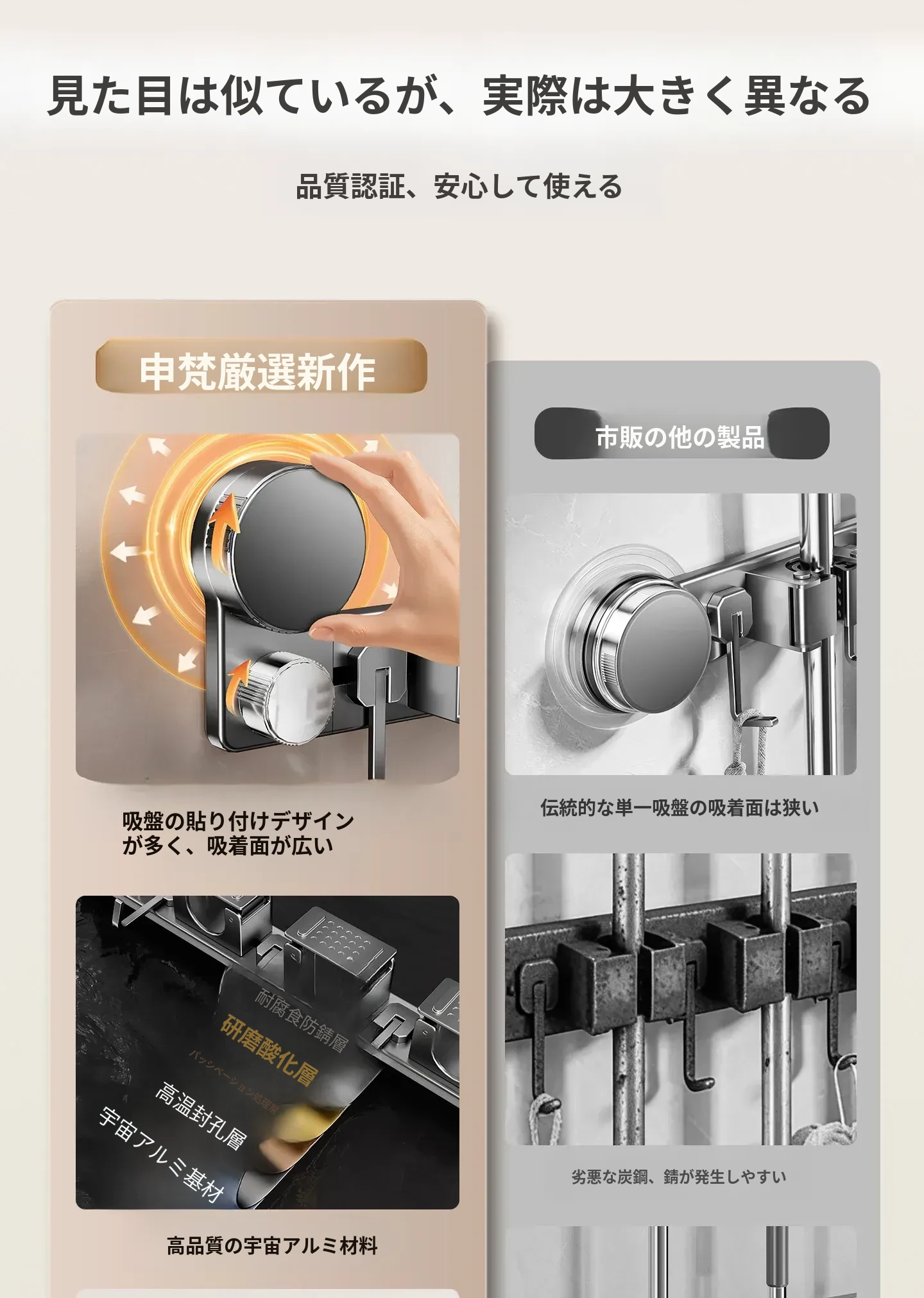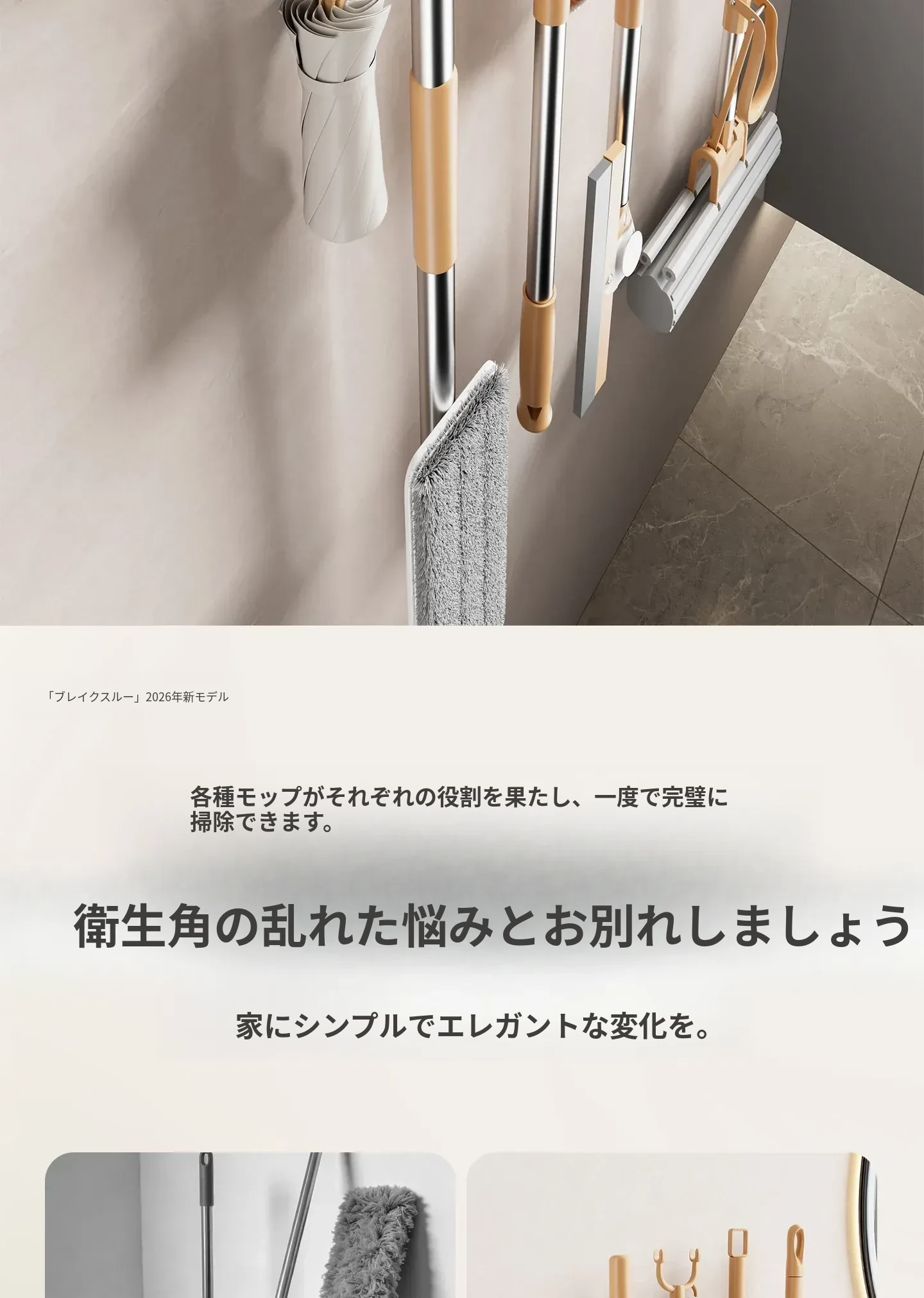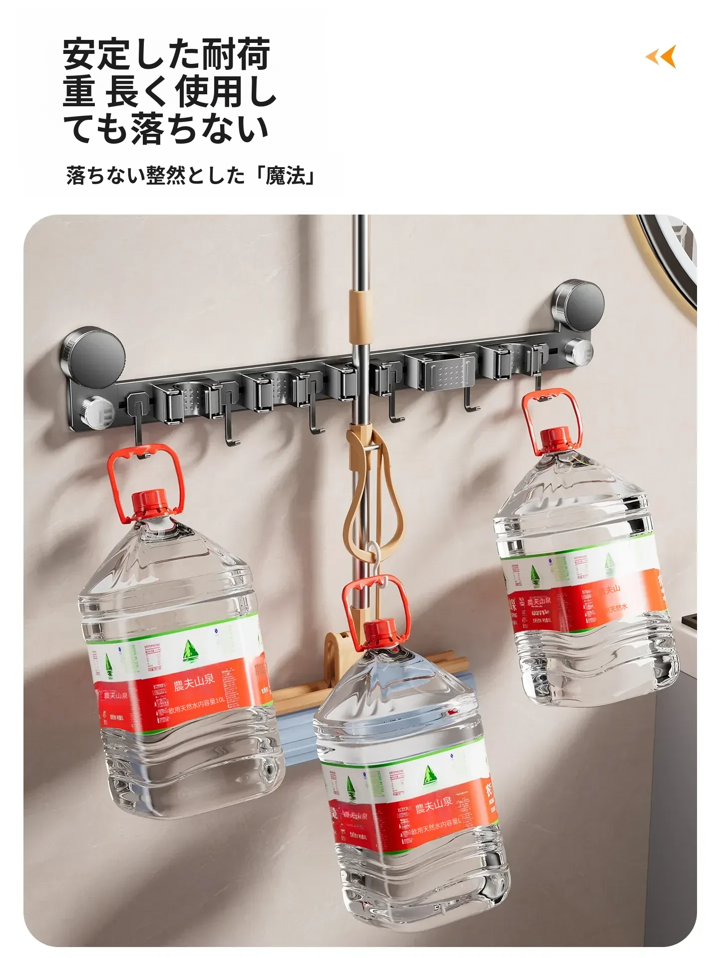 吸盤モップ壁掛けクリーム風 - 穴あけ不要で簡単取り付け!トイレ用モップやほうき、雑巾の収納に最適な便利グッズ!クリーンな空間を演出するスマートな収納ソリューション!